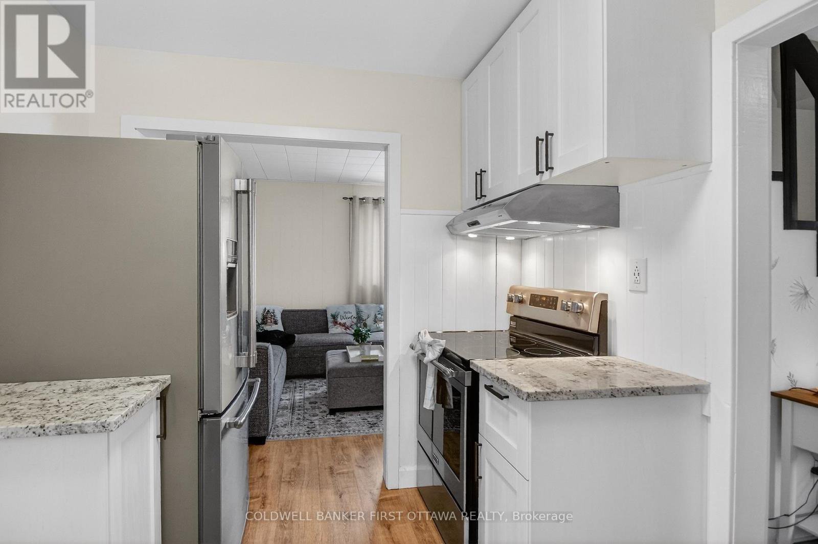 FIRST TIME HOME BUYERS/INVESTORS/RETIREES! Seize the opportunity with this charming country home that offers a paved driveway, detached garage, approx. 1/4 acre lot & LOW COST ownership!! ALL within the City of Ottawa!! Home features a spacious front entrance with main floor laundry - a rare find, modern dream kitchen (2023) with Brazilian White Galaxy granite countertops w sleek stainless appliances, expansive living room, dining room with sliding patio door (2021), PRIMARY BEDROOM & bathroom. Upstairs you'll find the second bedroom with an open concept den, ideal for a home office or third bedroom. The entire home has been freshly painted and boasts warm luxury vinyl Oak floors throughout (2023), elegant light fixtures, new Google Nest thermostat, crisp modern trim, updated windows, roof (east side shingles 2020, west side 2021), new black eavestrophs on garage & house- But the magic doesn't stop there! Step outside to enjoy a private interlock patio with hot tub wire readily accessible, large gazebo, FULLY FENCED IN YARD with storage shed, firepit, and the possibility for endless gardens. Home also offers natural gas bbq lines in front and back of home. Best of all- dazzling GEMSTONE LIGHTS on the home & garage, controlled from your phone so you NEVER have to put up Christmas lights again! Driveway was resealed this year & can easily fit 6 vehicles! Convenience store across the street with LCBO! Don't miss your chance! No conveyance of offers prior to Tuesday January 13th, at 5pm.
