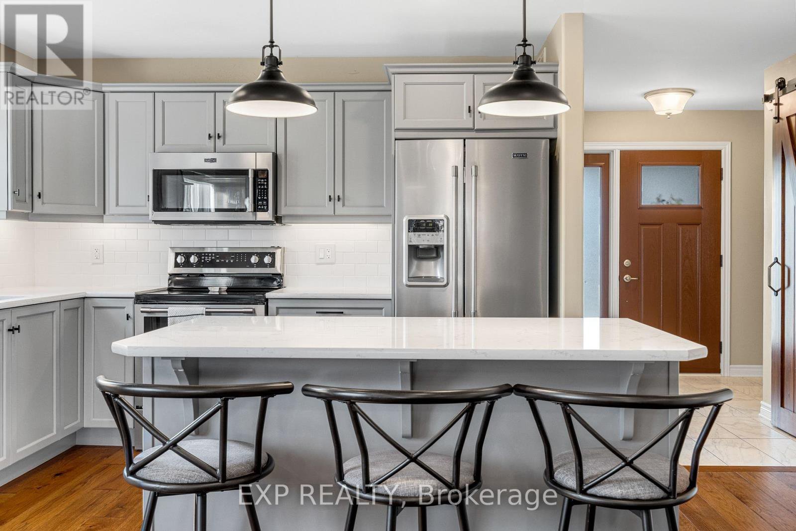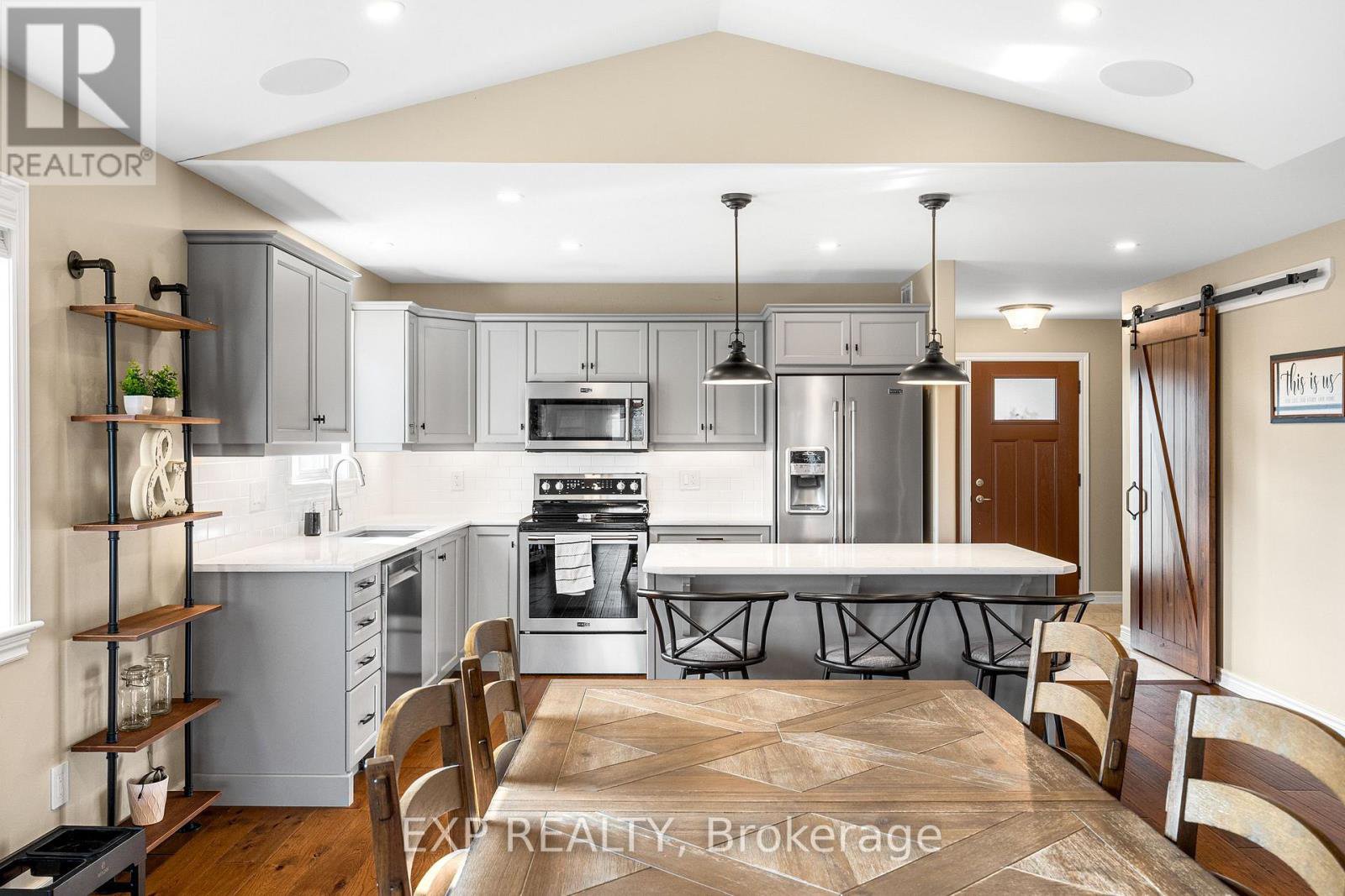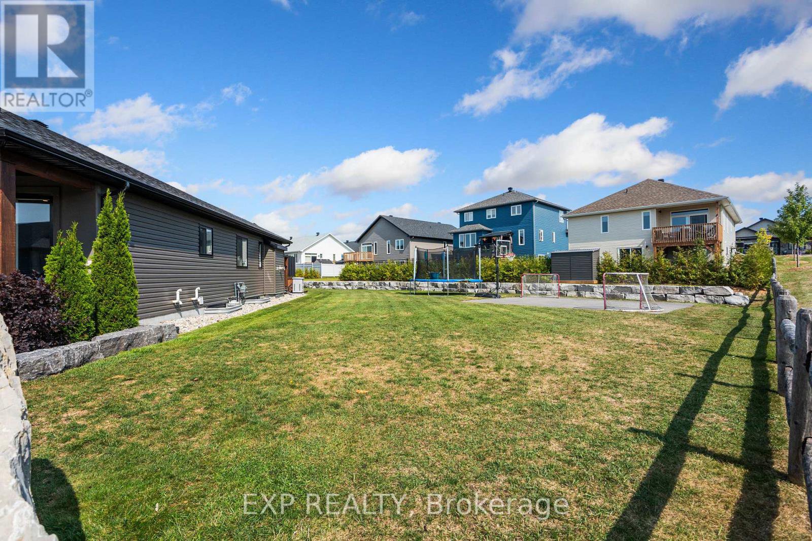 Experience luxury living in Mill Run, Almonte with this exceptional 4-bedroom, 3-bath bungalow, perfectly nestled on an expansive pie-shaped lot. Constructed in 2019, The McIntosh welcomes you with a striking front entrance and tiled foyer featuring ample closet storage and a stylish sliding barn door. A spacious front office, bathed in natural light, provides the perfect workspace or reading nook. Step into the heart of the home in a stunning Deslaurier-designed kitchen complete with granite countertops and premium stainless-steel appliances, seamlessly flowing into an open-concept dining and living room. Gather by the modern gas fireplace or enjoy effortless indoor-outdoor entertaining with 8 feet patio doors leading to multi-level decks and a backyard oasis. The main level boasts elegant hardwood barn-style flooring, laundry/mudroom with extra storage, two large kids bedrooms, and a crisp family bath. Also on the main floor is your private primary suite, a true retreat with generous proportions, a walk-in closet, and a spa-inspired ensuite. The finished basement extends the living space with a bright family room warmed by an additional fireplace, a fourth bedroom, full bath, and abundant storage solutions including an area for a gym. Parking is never an issue with an insulated and heated double garage plus a triple-wide, six-vehicle driveway. Enjoy a backyard designed for every lifestyle: a paved sports/basketball area, versatile decks for summer dining, a shaded patio, a salt-water heated above-ground pool, plus mature gardens and handy storage shed. This thoughtfully designed home blends everyday comfort with standout style. Located only minutes from Almonte's vibrant core of shops & restaurants & amenities. This home provides the perfect balance of modern living and small-town charm. Don't miss your opportunity to make it yours. Schedule your private tour today.
