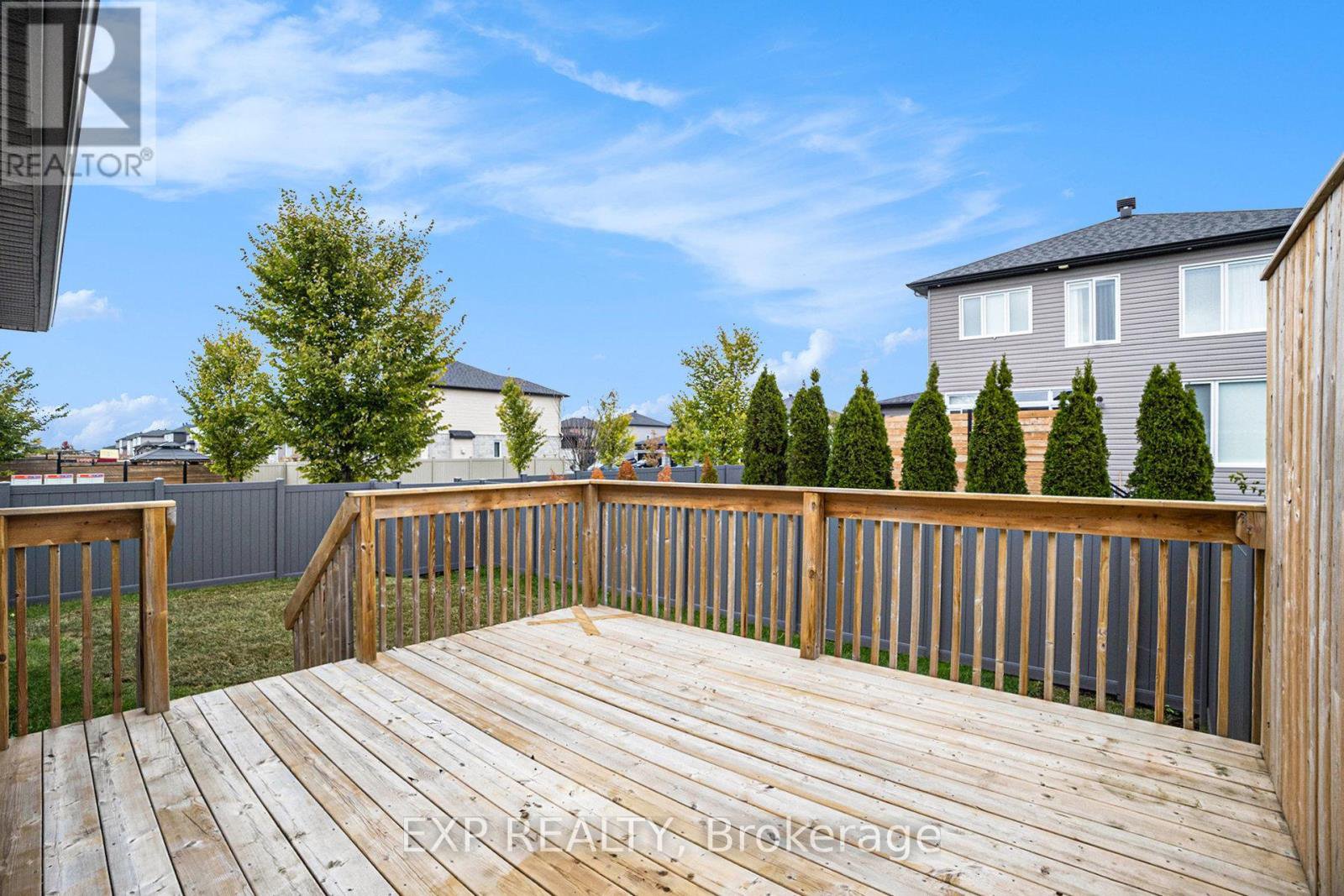 QUICK CLOSING POSSIBLE! Welcome to this turnkey 2+1 bedroom, 3 bath semi-detached bungalow situated on a corner lot in the sought-after Sunset Flats community of Russell! This home is the Sunflower model by Melanie Construction, known for thoughtful layouts and quality craftsmanship. The bright, open-concept main floor features hardwood flooring throughout, a spacious living/dining area and a kitchen with breakfast bar island, quartz countertops, backsplash, and all appliances. Head onwards to discover a large primary suite offering a walk-in closet and a 5-piece ensuite with a soaker tub and separate shower. An additional bedroom, a main bathroom, and a conveniently located laundry room complete the main level. The fully finished basement adds even more living space with a generous rec. room, a 3rd bedroom and 3pc bath that could be perfect for guests, a teen retreat or a home office. Enjoy the outdoors in your fully fenced backyard. A total of 6 parking spots, 2 parking spaces in the double garage plus driveway with 4 spots! All this just steps from schools, parks, trails, and recreation and only 20 minutes from Ottawa! Nothing to do but move in and enjoy. Easy to view!