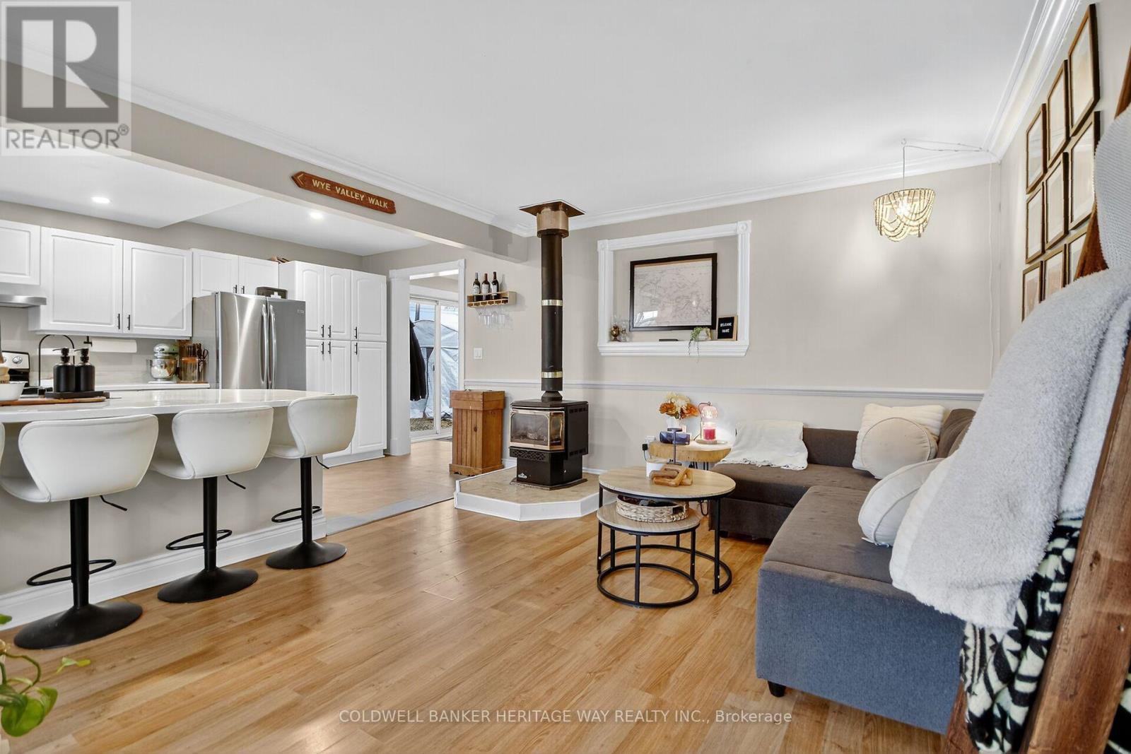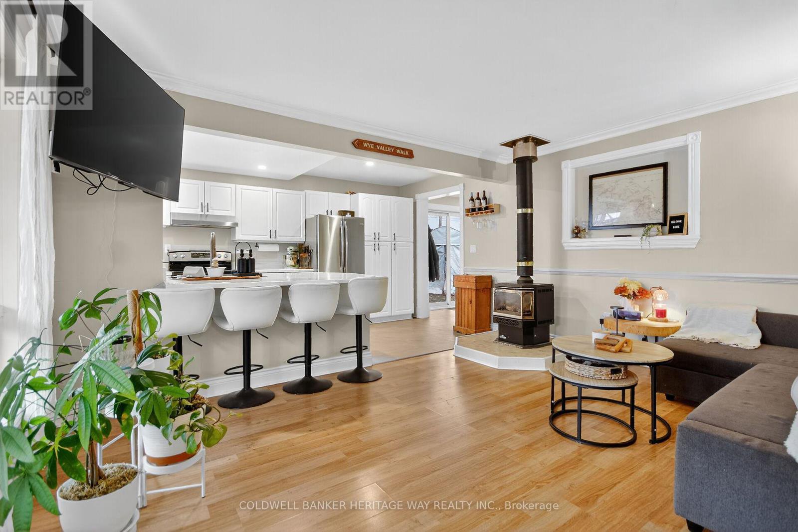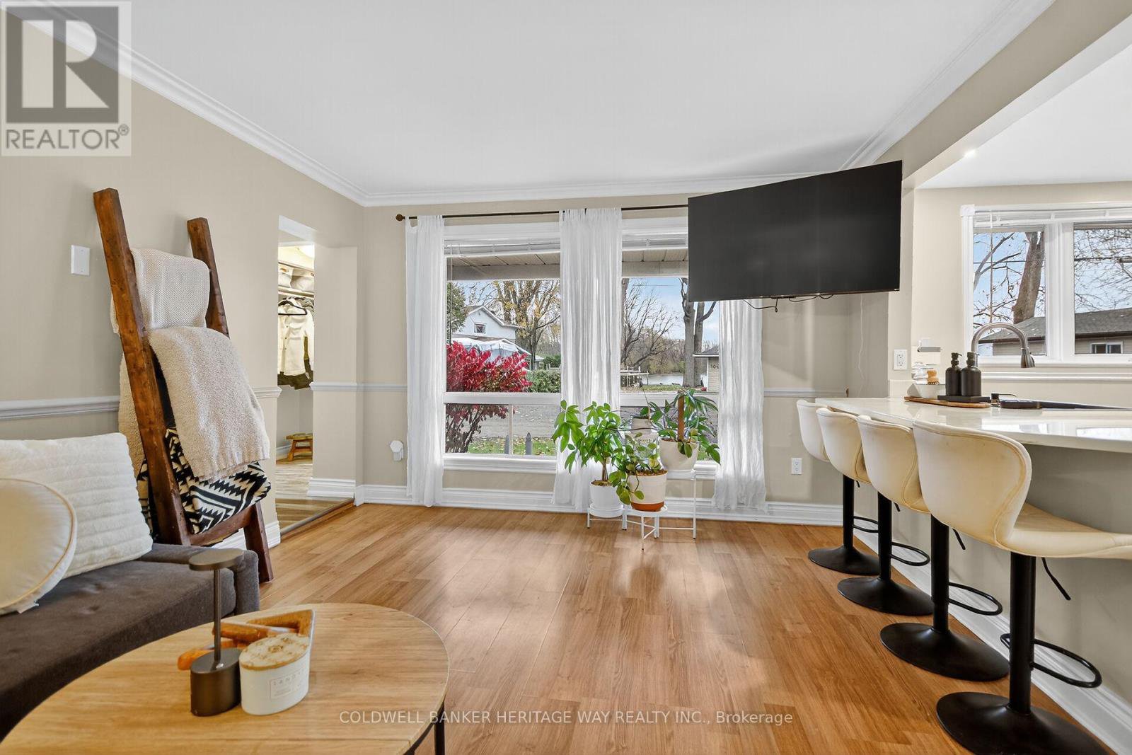 Welcome to this delightful three-bedroom home ideally located directly across the road from beautiful Mississippi Lake with public access moments away. Offering a blend of comfort and convenience, this adorable home is just minutes from town amenities while providing the serenity of lakeside living in a quiet and friendly community. The interior features a warm and inviting atmosphere with bright, open concept living, a large foyer off the patio door which could be converted to a dining space, generous sized bedrooms and a convenient 2 piece ensuite with laundry off the primary bedroom. Outdoors, the private backyard creates a welcoming retreat, complete with a fire pit and cozy ambience - perfect for relaxing or entertaining.Three versatile outbuildings; a nearly new Amish built shed and large Igloo shed provide ample storage plus the adorable log building adds character and charm. With its desirable location, appealing character, and peaceful setting, this property presents an exceptional opportunity for those seeking a comfortable and affordable home with views of the water and the convenience of being minutes from Carleton Place