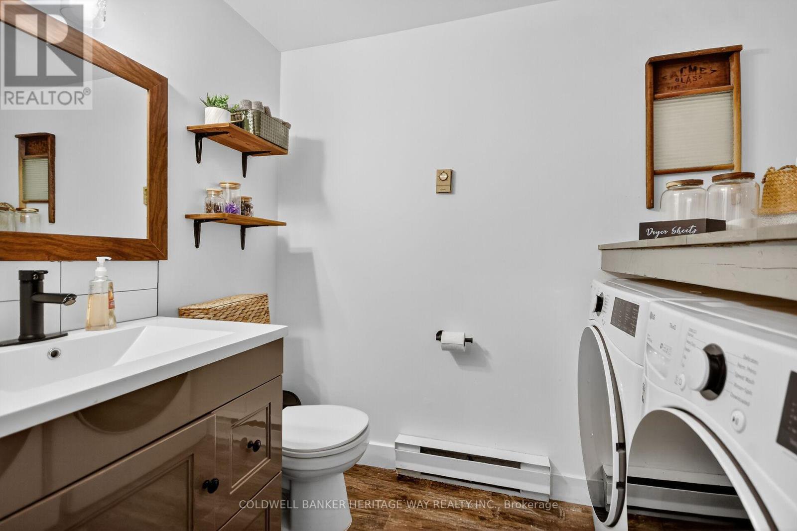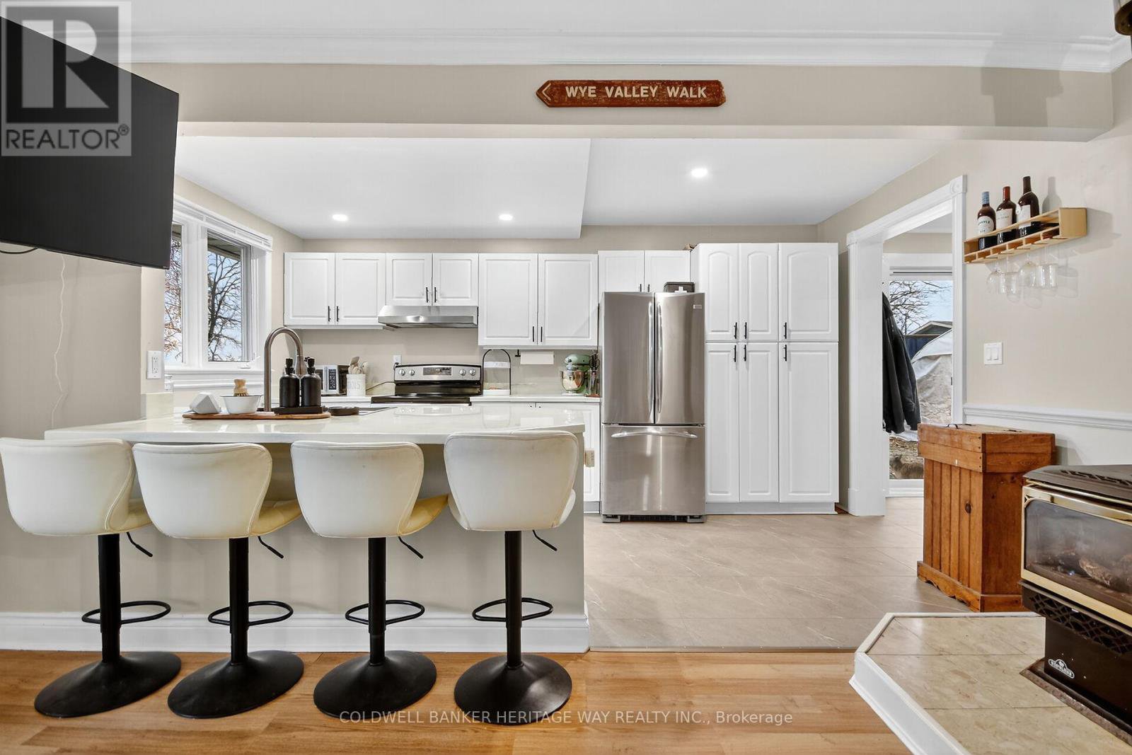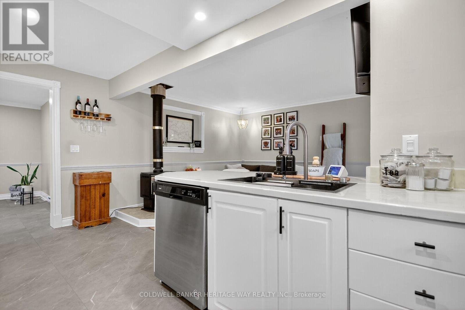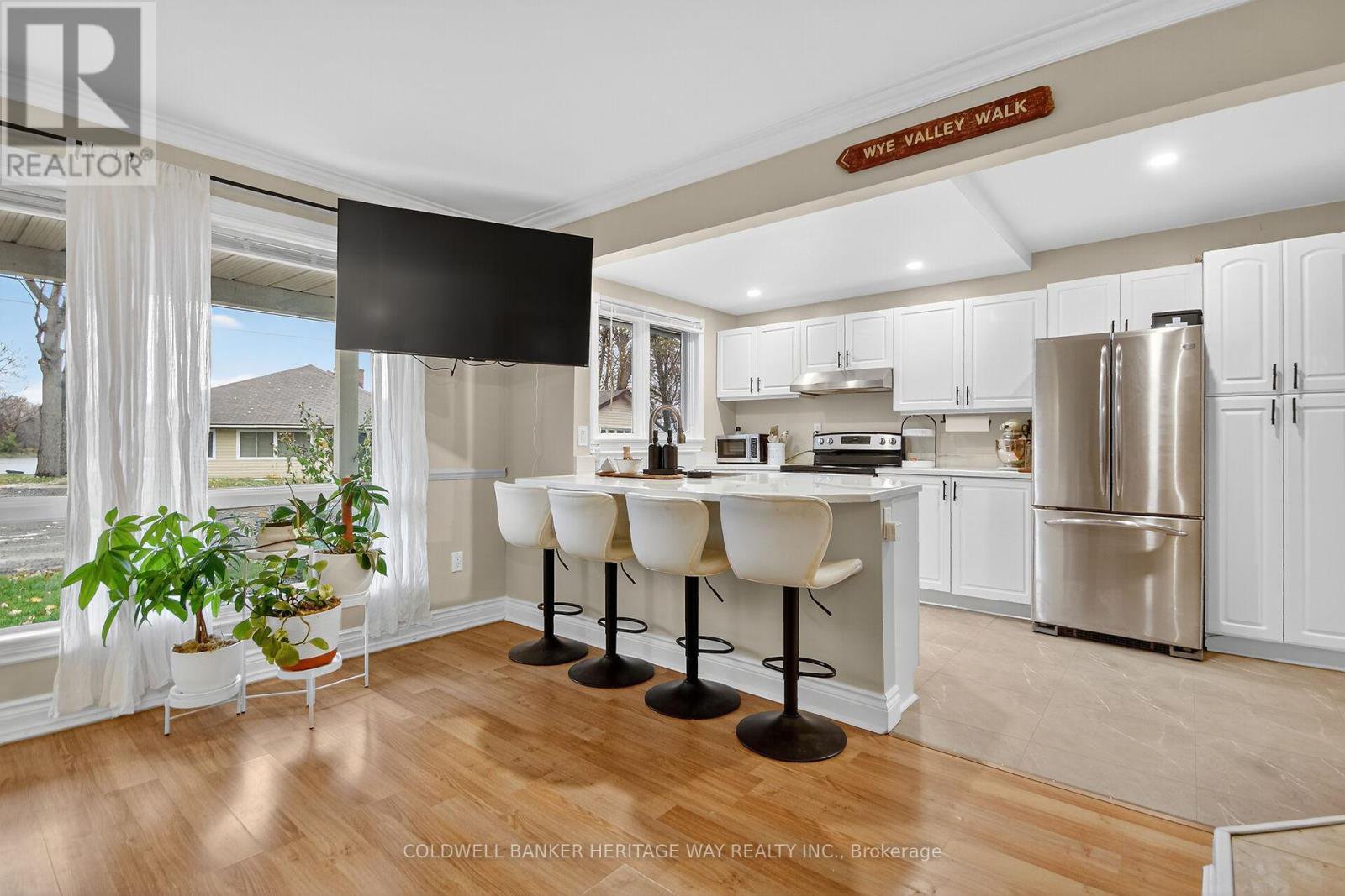 Welcome to this delightful three-bedroom home ideally located directly across the road from beautiful Mississippi Lake with public access moments away. Offering a blend of comfort and convenience, this adorable home is just minutes from town amenities while providing the serenity of lakeside living in a quiet and friendly community. The interior features a warm and inviting atmosphere with bright, open concept living, a large foyer off the patio door which could be converted to a dining space, generous sized bedrooms and a convenient 2 piece ensuite with laundry off the primary bedroom. Outdoors, the private backyard creates a welcoming retreat, complete with a fire pit and cozy ambience - perfect for relaxing or entertaining.Three versatile outbuildings; a nearly new Amish built shed and large Igloo shed provide ample storage plus the adorable log building adds character and charm. With its desirable location, appealing character, and peaceful setting, this property presents an exceptional opportunity for those seeking a comfortable and affordable home with views of the water and the convenience of being minutes from Carleton Place