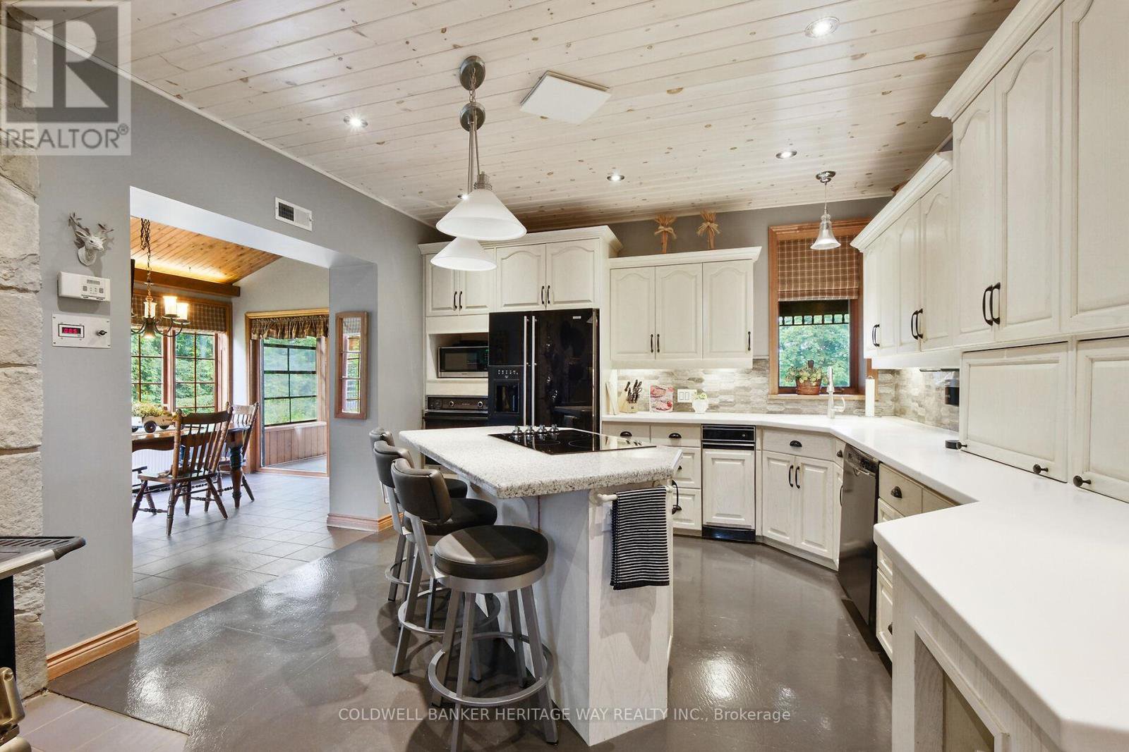 Welcome to an extraordinary 108-acre country estate where timeless charm meets modern rural living with renovated barn and equestrian potential. Nestled in a picturesque setting of rolling pastures, mature forest, and wide-open skies, this historic triple-brick 4bdrm home is loaded with character and surrounded by the natural beauty and functionality for today's country lifestyle demands. Family rm w/ exposed brick wall, loft area w/ palladium window, indoor hot tub, gourmet kitchen w/ island, 3 season sunroom, a formal dining area, 3 level loft & more. A gorgeous fenced salt water heated in-ground pool w/ patio and outdoor kitchen area. The beautifully renovated barn is a showstopper, absolutely stunning, with a heated tack room, four oversized stalls, and space to expand if you're considering a horse boarding operation or private equestrian retreat. The barn, combined with open fields and fenced pasture, makes this a dream setup for horse lovers or anyone seeking a working farm or hobby operation. The land itself offers incredible versatility: open fields ready for hay or grazing, two dug ponds with a "Trapper Cabin" and "Sugar Shack" tucked away for a rustic getaway experience. A mixed bush with mature maples provides potential for syrup production and over 500 apple trees offers agricultural or artisanal business opportunities. The property also contains numerous out-buildings: heated garage with 4 auto doors, a 60 X 28 insulated & heated workshop complete with garage doors on both ends & hoist, a "Honey House", drive-shed and a 60 x 40 cover-all to store your equipment. This property is also prime land for hunting and outdoor recreation year-round. Whether you're an equestrian enthusiast, farmer, outdoor adventurer, or someone seeking peace and privacy with income potential, this legacy property offers it all history, beauty, utility, and room to grow with the possibility of a severance. A truly amazing Property!