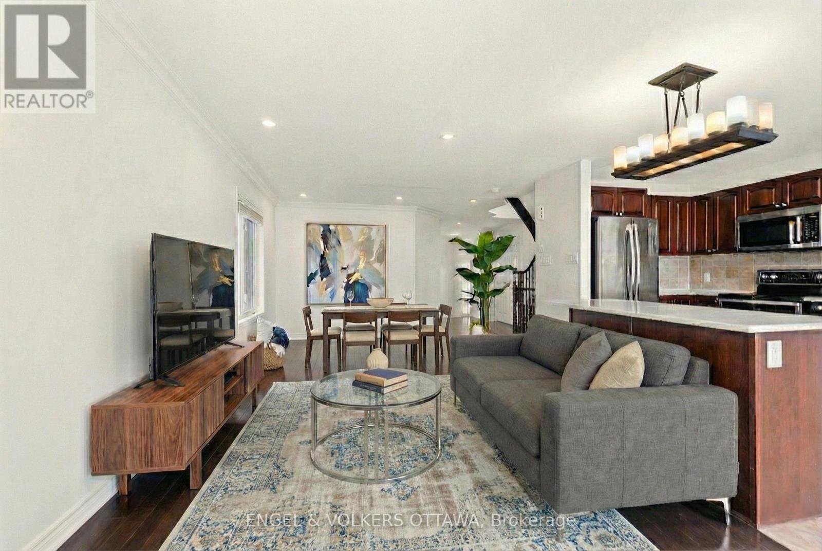 Set in Morgan's Grant, this meticulously maintained corner end-unit townhome on a premium lot features a sun-filled open layout, a walk-out basement leading to an oversized backyard, and is within walking distance of multiple parks, schools, and trails. As you enter, rich dark hardwood flooring and a curved staircase establish a sense of sophistication. The open-concept living and dining areas are filled with natural light from large windows, boast crown moulding, and are directly connected to the modern kitchen with wood cabinetry, bevelled-edge quartz countertops, stainless steel appliances, and a long central island. With ceramic tile flooring, a breakfast nook, and a bright arched window overlooking the backyard, this space combines functionality with style. Upstairs, the primary suite is complete with Berber carpeting, a ceiling fan, and a 4-piece ensuite featuring a deep Roman soaking tub, separate shower and a spacious vanity. Two additional bedrooms, each bright and versatile, provide ample space for children, guests, or a home office. The fully finished lower level extends the home's living space with a generous family room featuring thick, high-end laminate, a gas fireplace, a bathroom rough-in, and access to a separate laundry and storage area. Patio doors open directly to the large deck and the spacious backyard, creating an effortless connection to the outdoors and flooding the space with natural light. Whether used as a media room, gathering space, or home office, this level presents a unique opportunity that most homes in the city can't match! Outside, the fenced backyard, with no direct rear neighbours, offers privacy for outdoor dining with friends and family or for relaxation. This property is walking distance to tech companies (Alcatel, Ericsson, Ciena, Cisco, etc..), the Brook Street Hotel, grocery stores, banks, restaurants, bars, gas stations, recreation centre/gym, bus station, kids karks, schools, daycare centers, and retirement homes.