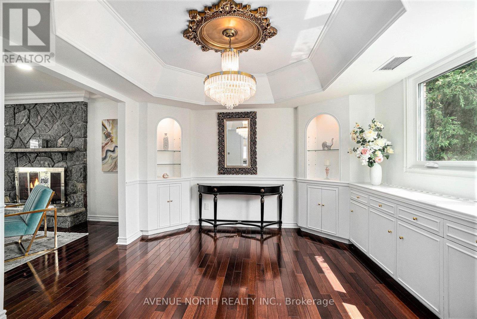 A Rare Find in Crystal Bay, this 5 bedroom, 4 bathroom home blends modern upgrades, warm finishes, and an unbeatable location. Step into the foyer and be welcomed by a graceful spiral staircase and elegant marble floors. The main level offers a formal living room with a wood-burning fireplace and a dining room with custom display shelves. Rich cherry hardwood floors, pot lights, and crown moulding flow throughout. The chefs kitchen impresses with sleek cabinetry, smart pullouts, a walk-in pantry, porcelain tile floors, granite counters, ambient lighting, and top-tier appliances. Across from the breakfast nook, a stylish wet bar with a sink, wine fridge, and custom-lit cabinetry overlooks the yard through bay windows, with direct access to the back balcony. The kitchen opens seamlessly to a second family room with another fireplace and a built-in bookshelf. Upstairs, you will find four spacious bedrooms, a 5 piece cheater ensuite, and a powder room. The primary suite offers a large walk-in closet and access to an expansive balcony stretching across the front of the home.The lower level adds incredible versatility with a second kitchen, a recreation room with a third fireplace, sun room and a full wet bar, two walkouts to the private backyard, a 4 piece bathroom, and a private fifth bedroom with a separate entrance. This space is ideal for hosting events, creating an in-law suite, or extended guest stays. Outdoors, enjoy a beautifully landscaped and fully fenced yard with an in-ground pool, gazebo, and interlock. The oversized interlocked driveway accommodates six vehicles and is complemented by a heated two-car garage. Set on a quiet street in one of Ottawas most sought-after neighbourhoods, this thoughtfully designed property offers comfort, function, and style. It is just steps from Bayshore Mall, transit, and everyday conveniences, and minutes from Britannia Beach, Andrew Haydon Park, and the Nepean Sailing Club.