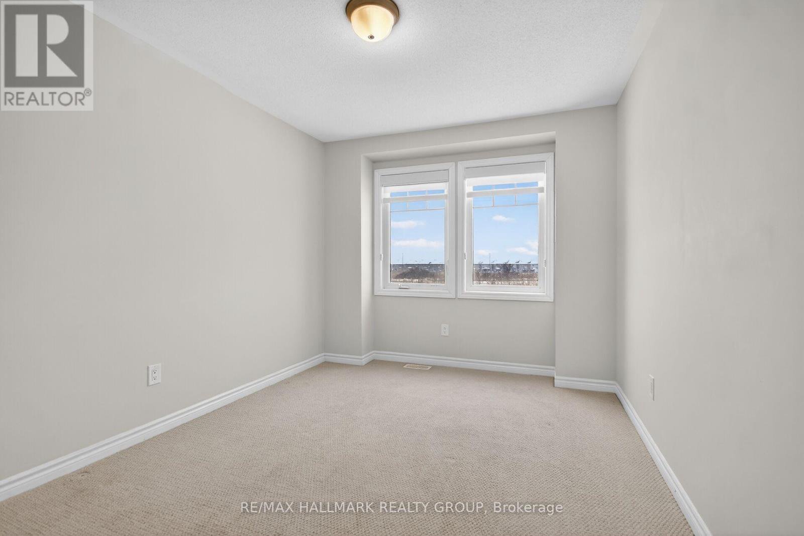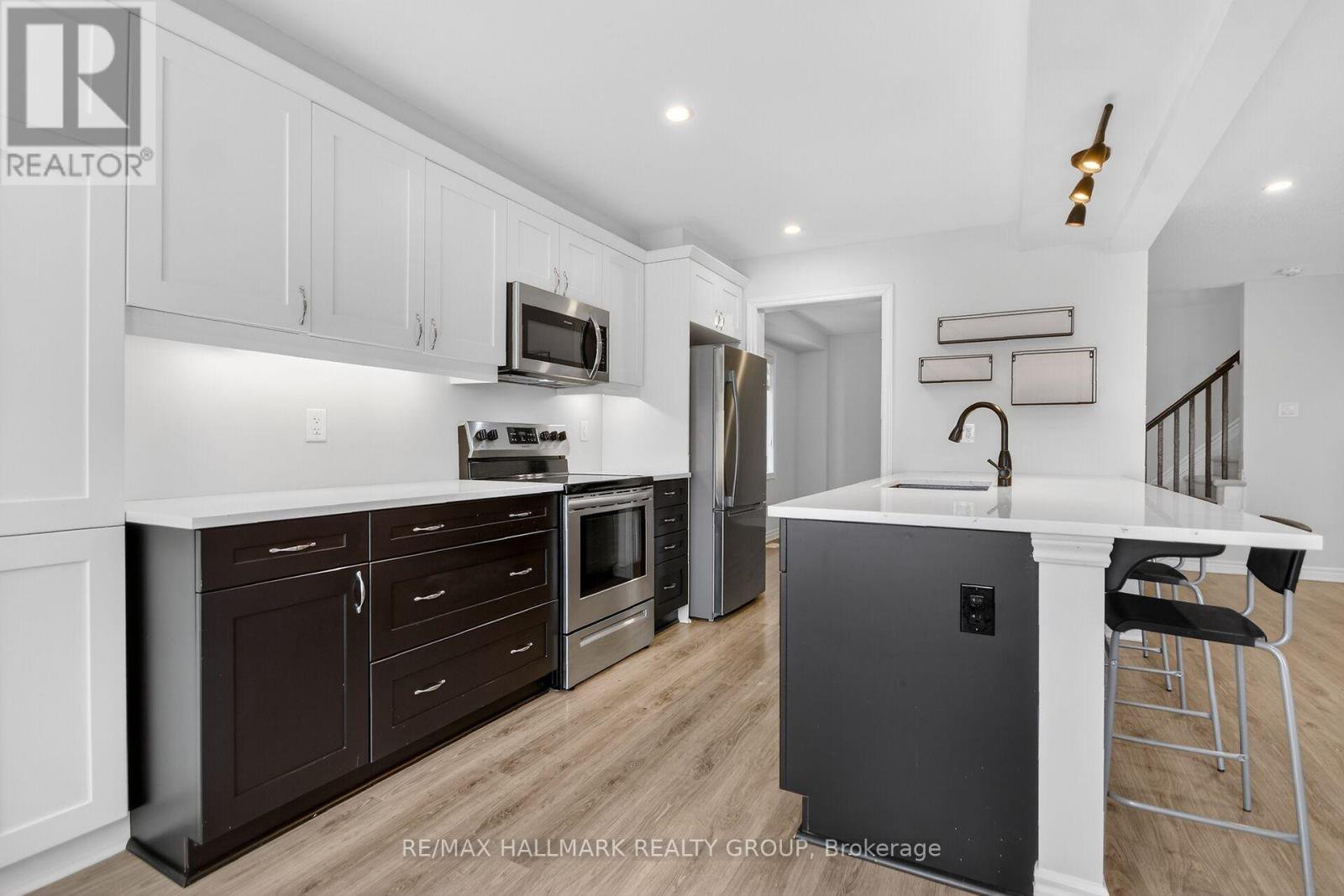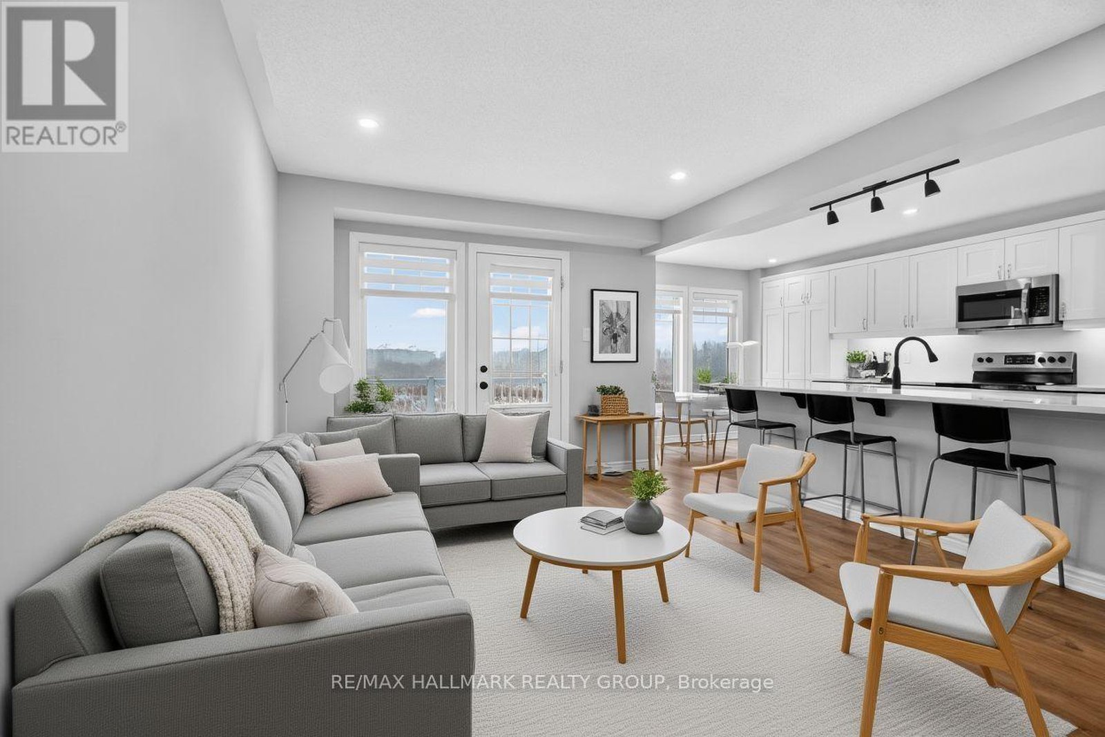 Gorgeous 2 bedroom, 2.5 bathroom FREEHOLD END UNIT townhome in the family community of Abbottsville Crossing in Stittsville. This MODERN + OPEN DESIGNED home is South facing and has tons of natural light! Excellent location across from open land for added privacy and close to schools, walking distance to 3 parks + TRANS CANADA TRAIL, + the shopping/restaurant amenities on Hazeldean Rd! MAIN LEVEL features spacious ceramic entrance, 2pc powder room, laundry + furnace rooms + access to single attached garage. SECOND LEVEL features OPEN CONCEPT Living/Dining Rooms, spacious balcony, gourmet kitchen with granite counters, stainless steel appliances (including Microwave Hood Fan), island with breakfast nook + functional eating area. THIRD LEVEL features large primary bedroom with luxury ENSUITE with double sink + glass shower, secondary bedroom that can also be used as a home office/den, plus 4pc MAIN BATHROOM. Perfect for Investors or First Time Home Buyers!
