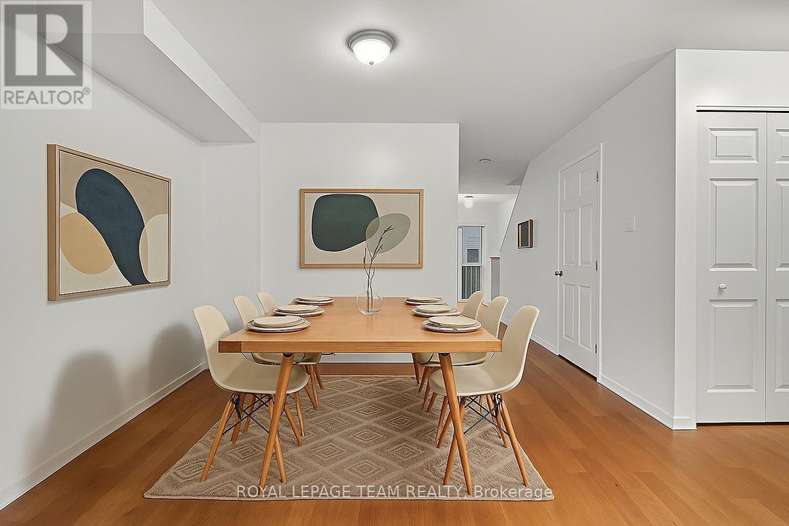 114 Wharhol Private. Convenient Bells Corners location near amenities nearby and access to both 416 and 417. Close to DND headquarters on Moodie Drive and LRT. 3 storey townhome is nicely appointed with hardwood flooring in the living and dining rooms. Eat-in kitchen with patio door to rear BBQ deck. Convenient main floor laundry. 2 exceptionally large bedrooms. Luxury bathroom with a soaker tub and separate shower. Family room located in lower level with walk-out patio door to rear yard. West facing back yard with afternoon sun. Roof shingles 2019, central air 2021, laneway 2021. Some photos have been virtually staged. $66/month private road fee.