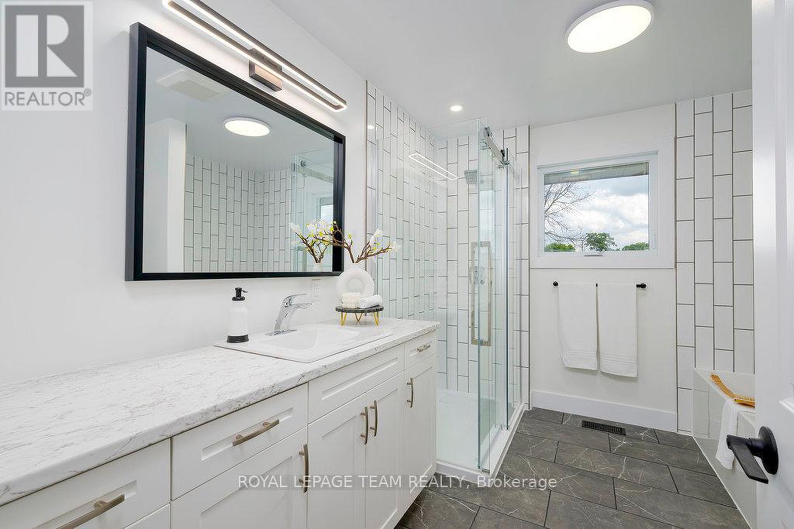 This charming 3+2 bedroom, 3 bath home in the sought-after village of Carp is sure to please! Tastefully renovated in 2025 on the main floor, the inviting space and natural sunlight make you feel at home from the moment you walk in the front door. The functional, open concept kitchen features an eating area with bay window and loads of cabinet space. The large living room is an entertainer's delight with easy access to your backyard deck, surrounded by greenspace on an oversized lot with a view of the Carp River. The perfect spot to relax and enjoy nature in a quiet, peaceful setting. A doorway separates the 3 bedrooms and 5-piece bathroom for privacy. Convenient main foor laundry room and two-piece powder room are ideal in finishing off the main floor space. The lower level offers a large two bedroom in-law suite with 4-piece bath, full kitchen and separate access. Perfect for intergenerational living. This home is in excellent, move-in ready condition. Solar panels on the metal roof offer a yearly income of over $4,000. All of this in one of Canada's most vibrant communities. From restaurants, golf, Carp Fair, nature trails and easy access to downtown Ottawa....this location is a dream!