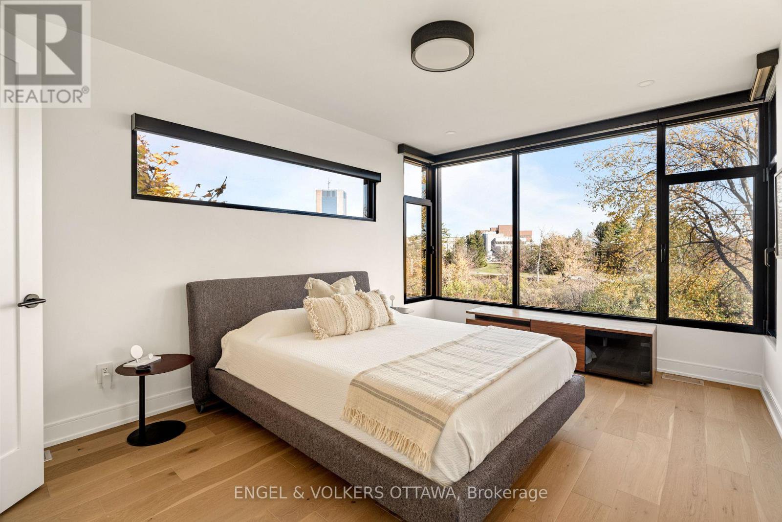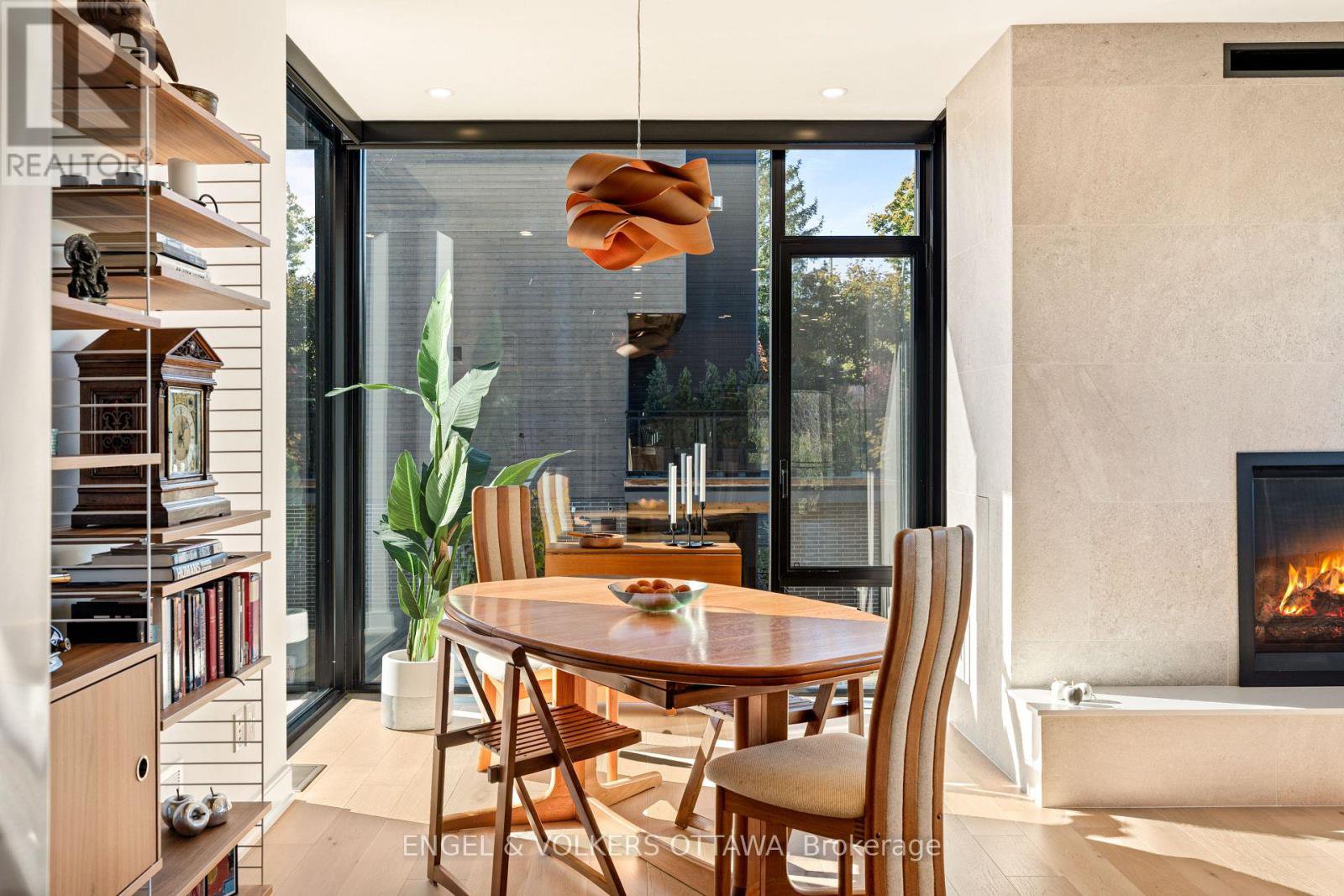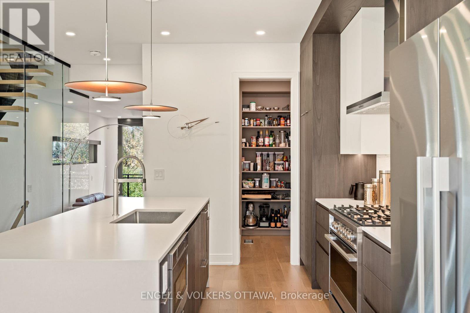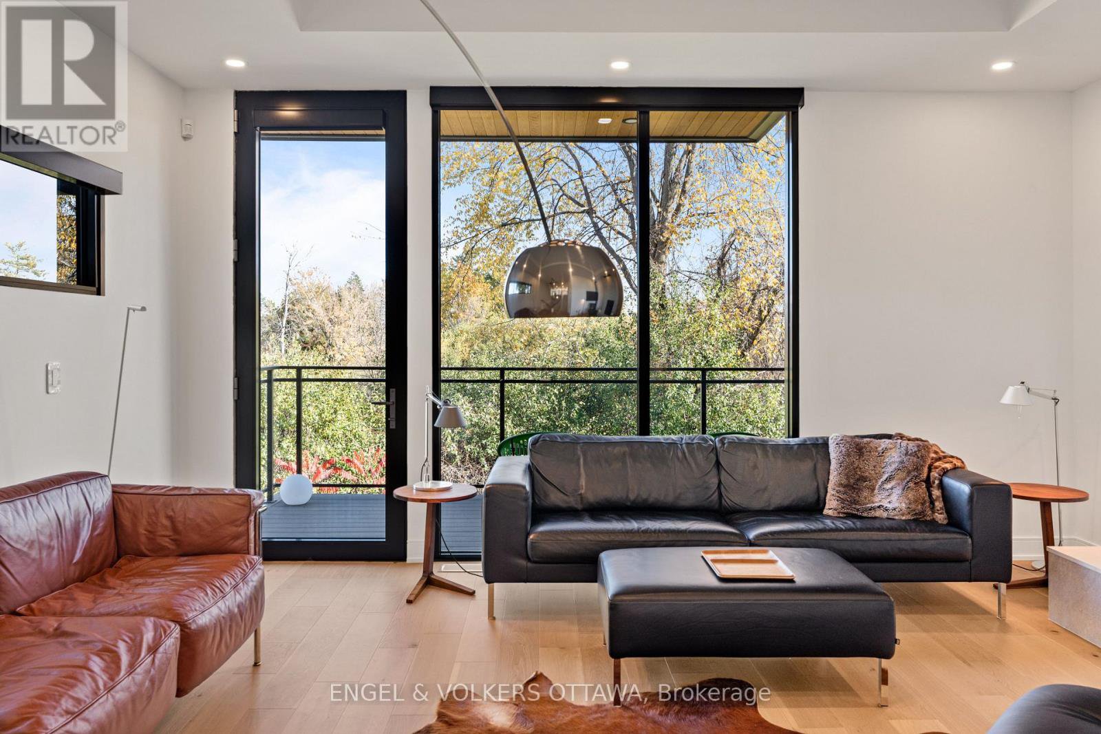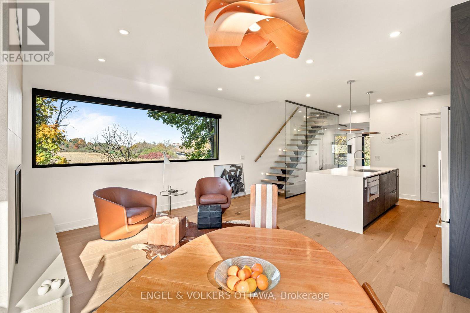 Welcome to 127 Peridot Private, an exceptional residence in a private enclave of just seven luxury homes by Gemstone Developments. Winner of GOHBA Award for Interior Design, this 3-bed, 4-bath home offers over 2,400 sq. ft. of thoughtfully curated space. The main floor is designed for life in style & fabulous entertaining, with a chef's kitchen at the heart of the home featuring a waterfall quartz island, extended custom two-tone cabinetry, gas stove and walk-in pantry with a sink. Two elegant living rooms offer upgraded fireplaces with quartz hearths and floor-to-ceiling Inalco Petra tiles. Framed by upgraded and additional windows every space is flooded with natural light, creating a seamless connection between the interior and the surrounding greenery. An upgraded stringer staircase with open glass panels adds a striking architectural element, while preserving the home's airy, contemporary feel. Enjoy the rare views of the Experimental Farm and a peek of the Rideau Canal from your private balcony. The upper level offers a primary suite & spa-inspired ensuite with soaker tub, oversized 2-person glass shower, double vanity, and bidet. Two additional bedrooms, a full bath, and laundry with sink and custom cabinetry. The main level features a spacious foyer and a versatile area currently used as a stylish home gym, easily adaptable as a family room or office, along with a convenient powder room, and access to a double car garage. Outside, the extended rear deck leads directly to a beautifully landscaped yard, offering a peaceful retreat surrounded by nature. The only home in the enclave with an extended private driveway. Other upgrades include fully automated Hunter Douglas blinds, wall mirrors in gym, foyer and primary. Moments from Little Italy, Dow's Lake, Civic Hospital, and Carleton University, this location provides a peaceful, nature-filled setting just minutes from the heart of the city. Visit the website for more photos & full list of features and upgrades.