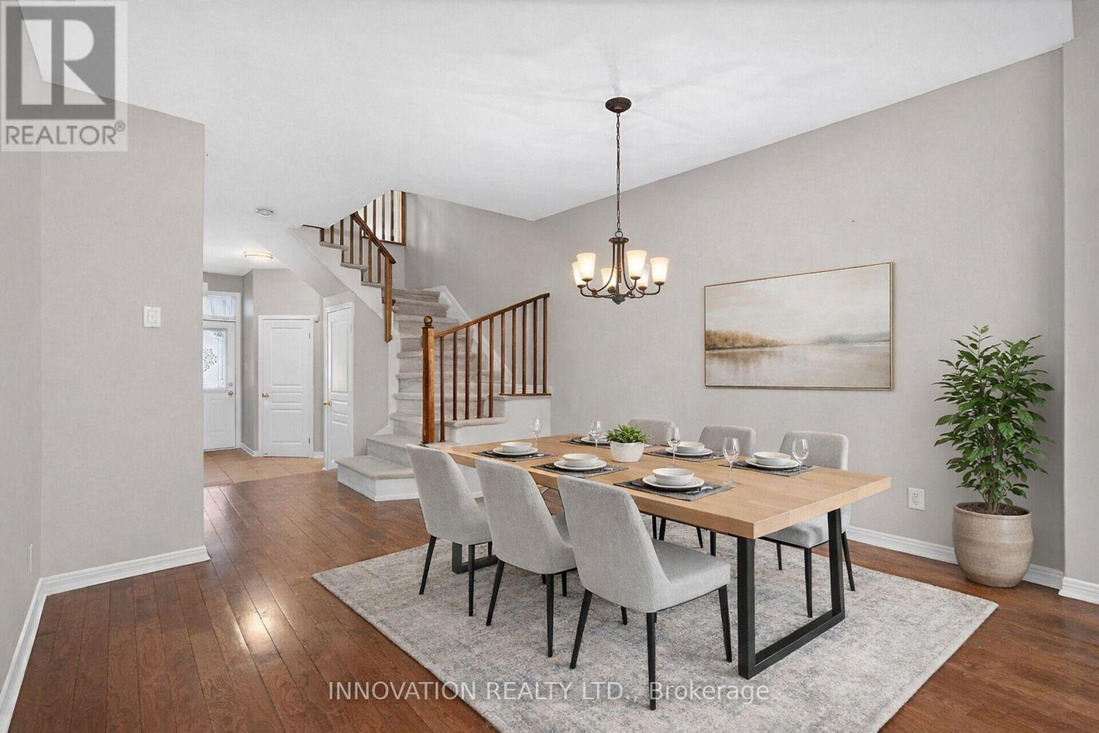 Welcome to 32 Kettleby in the family-friendly community of Village Green. This bright, functional and well-maintained townhome offers main floor hardwood flooring, 2 bedrooms plus a versatile loft (easily converted into a 3rd bedroom), 2.5 bathrooms, and a finished recreation room in the basement with luxury vinyl flooring - perfect for a home office, gym, or additional living space. The upper level features two full bathrooms, including a private 4 Pc. ensuite off the primary bedroom with walk-in closet. Main level with 2 pc. powder room, neutral eat-in kitchen with crisp white cabinetry and open concept living/dining room with vaulted ceiling and gas fireplace. Maintenance free yard with elegant stone patio and PVC fencing for outdoor privacy. Enjoy a fantastic location close to public transit, excellent schools, library and a wide range of shopping and amenities. Village Green is known for its welcoming atmosphere, children's parks, and scenic walking paths, making it an ideal place to call home.