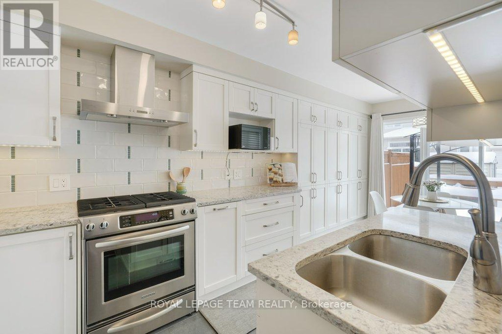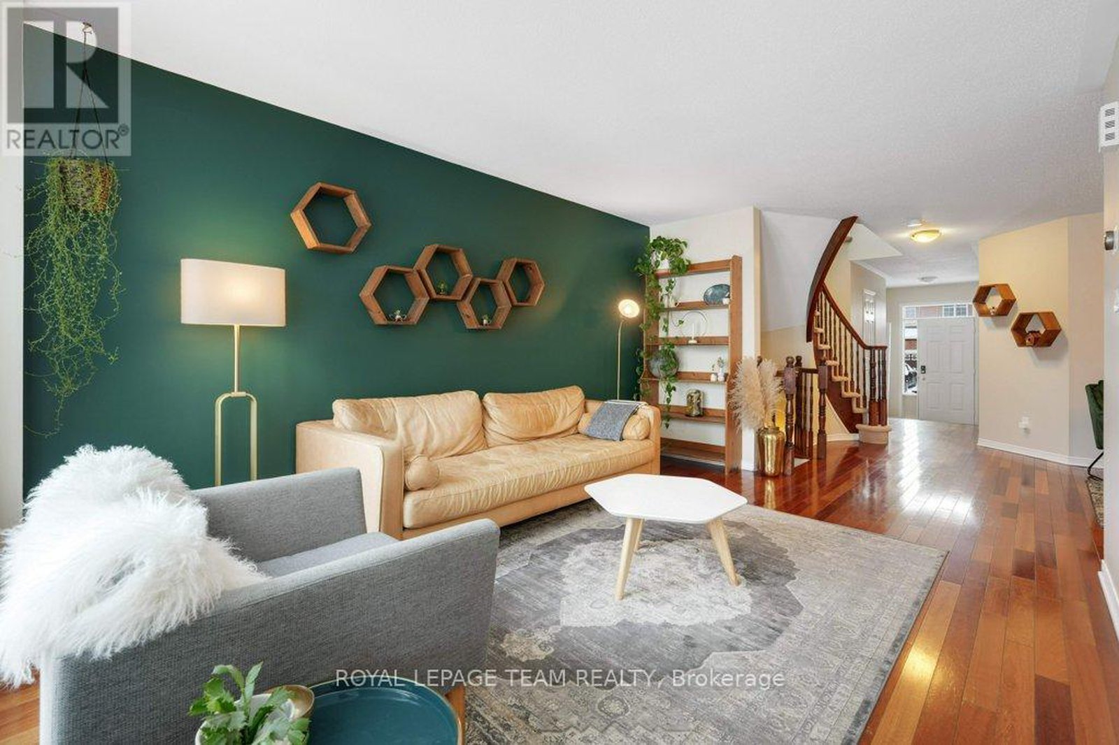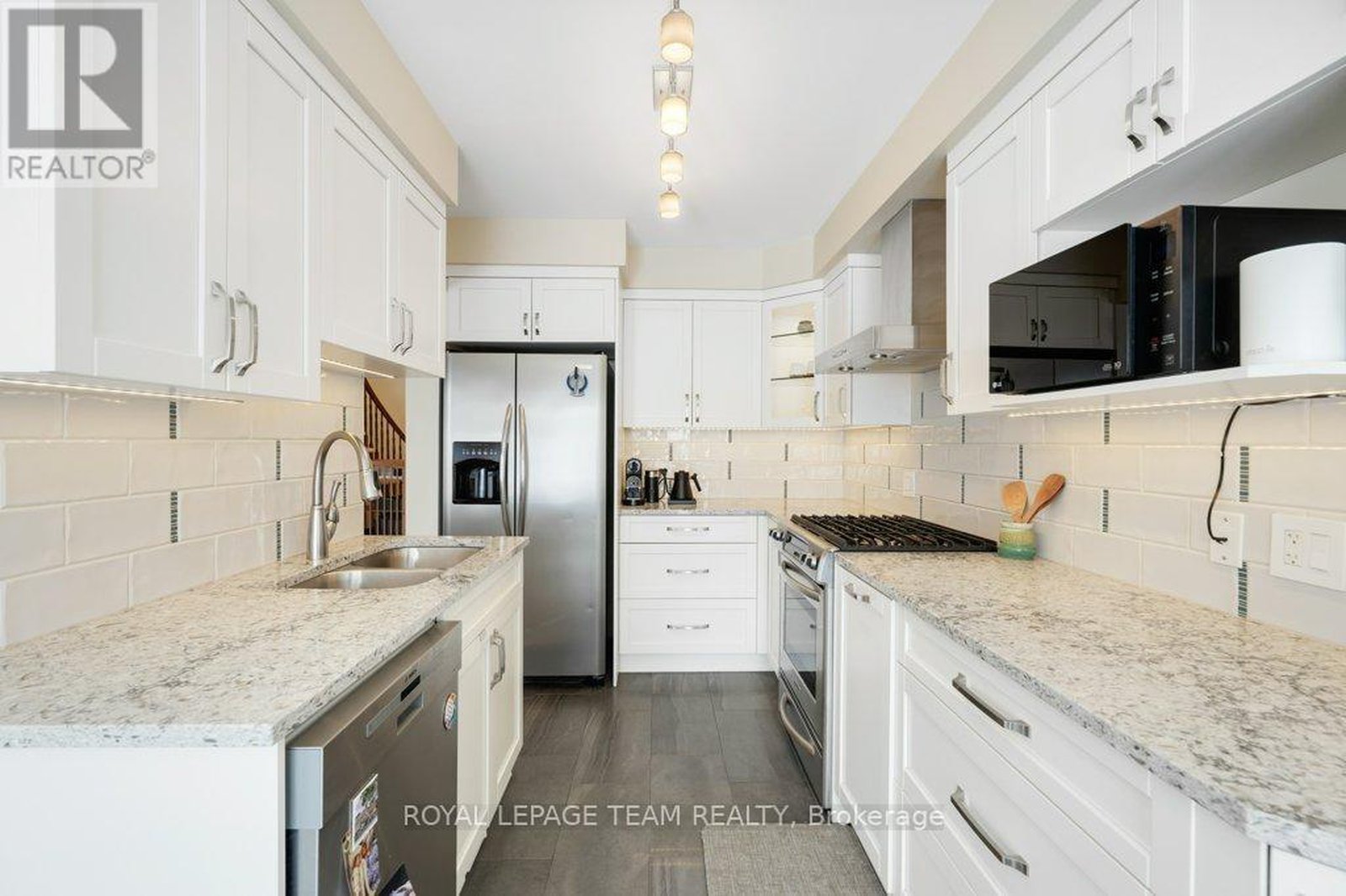 YOUR NEW HOME IS WAITING! Located in a Prime area of Barrhaven, you have to see this Richcraft Charleston model end unit. The fully fenced, oversized lot provides both a large rear lot with a 16' X 16' deck off the kitchen/dining area and a large side yard with a gated entrance from the front walkway - simply perfect for your garden. This bright north facing home has plenty of natural light with the extra windows of an end unit. Offering a unique interior design, it begins with the large, entrance foyer (a double closet), then steps up to the spacious hallway with a 2-piece washroom right across from the entrance from the garage. Passing the beautifully curved, 2-storey stairway you enter the family room area and then to the spacious living room. The sun-filled kitchen/ dining room area has been updated with quartz counter tops, soft close cupboards and a wall of cupboards as a pantry in the dining area which opens out onto the raised deck in the yard for easy summer meals., pot drawers, large pantry, under mount lighting, gas stove & more. The main floor is finished in beautiful Brazilian Cherry hardwood. The 2nd floor features a large primary bedroom with full ensuite, a 2nd large bedroom a 3rd bedroom. The 2nd full bathroom and the laundry area provided great convenience. The basement has a finished Family/Rec room with Gas Fireplace for those chilly winter nights. There is a large unfinished area with the furnace space and roughed in plumbing for another full bathroom. It also has 2 more separate storage rooms. In a fantastic Neighbourhood, this home is just steps from Chapman Mills Shopping Plaza, you'll find every convenience - groceries, dining, entertainment, parks, schools, and the Transitway bus system - all within walking distance.