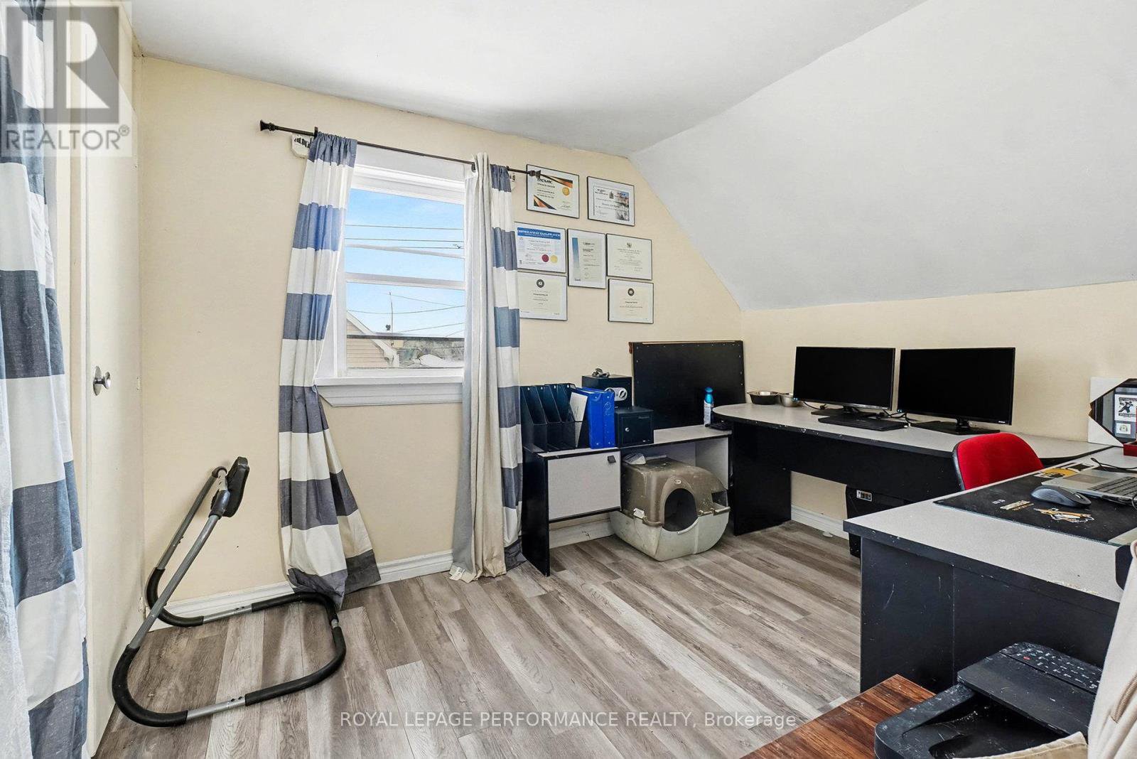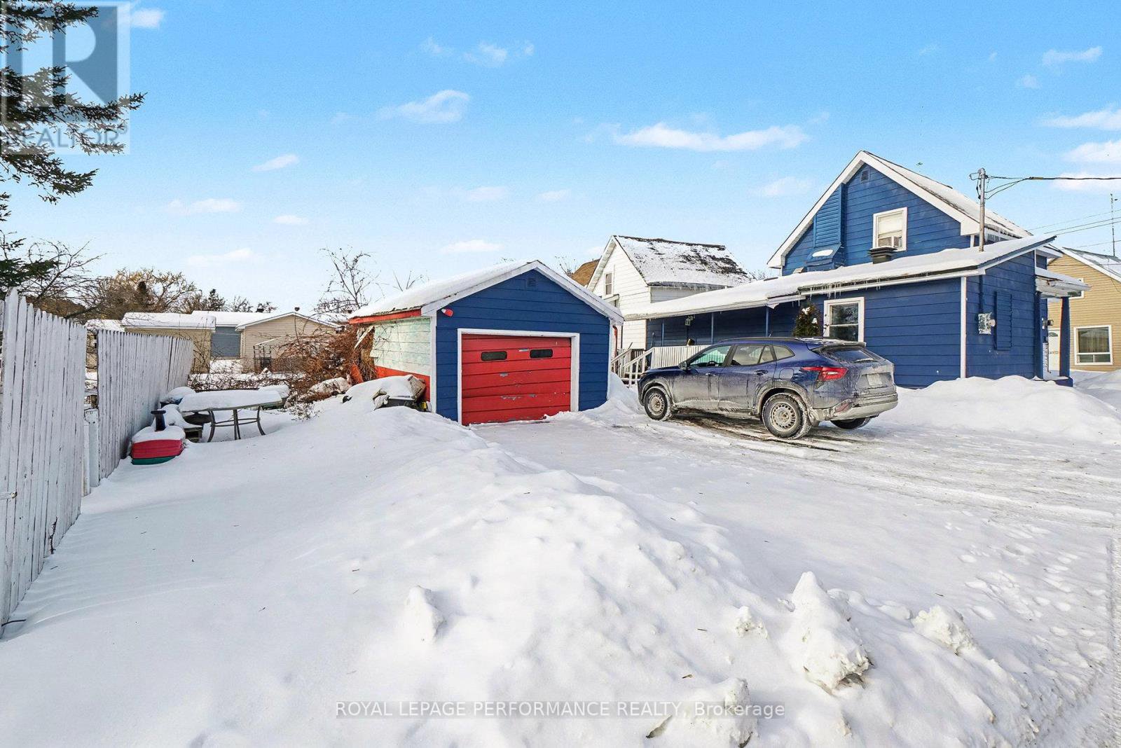 Detached 2-storey home situated on a large 42.1 x 136.6 ft deep lot in the Rockland cheaper than a price of a condo! The property includes a detached garage and parking for up to three vehicles. The main floor consists of a living room, kitchen/dining area, full bathroom and laundry. The home is heated by a gas fireplace located in the living room. A separate side entrance provides direct access to the kitchen/dining area. The upper level offers two bedrooms. The home is older but suitable for buyers wishing to update and improve to their own requirements. Recent improvements include partial roof replacement in 2021, Kitchen updates completed in 2021, and select bathroom updates in 2025. Located within walking distance to schools and parks, with golf nearby, and close to local amenities. A property best suited for buyers looking for a project, renovation, or LOT value opportunity.