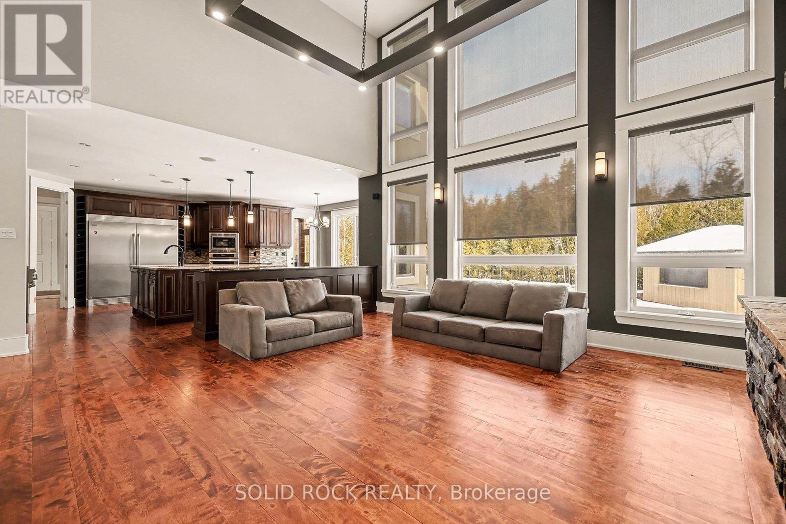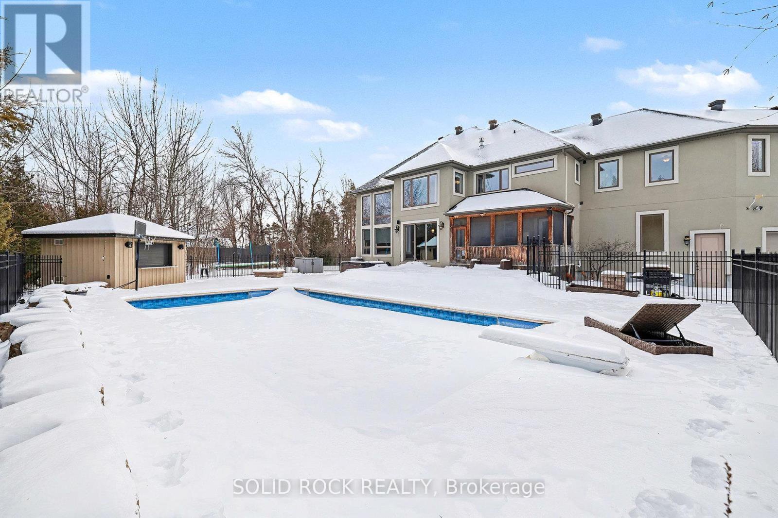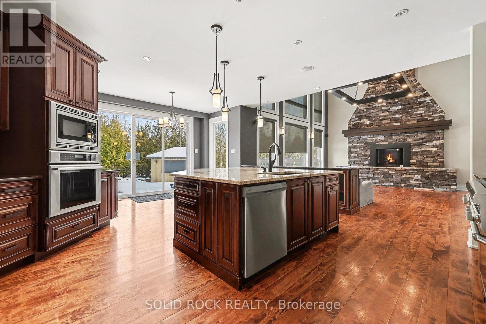 This luxurious custom-built residence showcases superior finishes with detailing throughout. Features includes high end flooring, a beautiful stone fireplace, cherry cabinetry, and custom stone countertops. This unique property offers five bedrooms, two family rooms, three full bathrooms, two powder rooms, a second-floor laundry, a mudroom, a double staircase, and a main floor office, promoting an effortless lifestyle. The kitchen serves as the central gathering area, featuring a spacious island and overlooking the two-storey main floor family room with a tray ceiling and stone fireplace, as well as the fully landscaped rear yard. The upper level includes a private master retreat complete with custom vanities, granite counters, fireplace, a deep soaker tub, a glass shower, lovely ceramic flooring, and an expansive walk-in closet. The lower level remains unfinished, offering high ceilings. The complete landscaping package incorporates a scenic pool. Please contact us for further details. . Flooring materials include hardwood, ceramic, and carpet over wood. Sold Under "Power of Sale", Sold "as is Where is". Seller does not warranty any aspects of Property, including to and not limited to: sizes, taxes, history or condition.