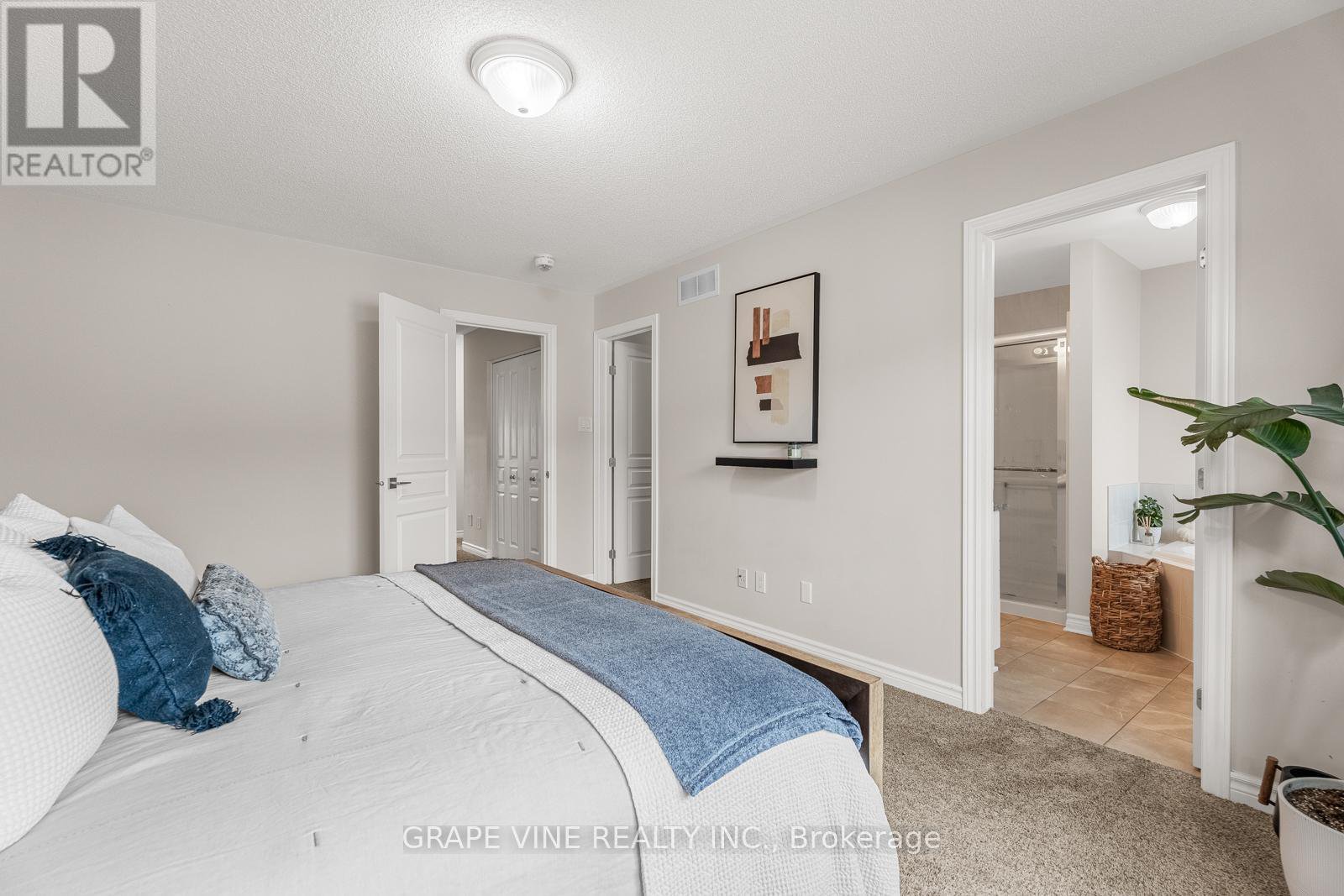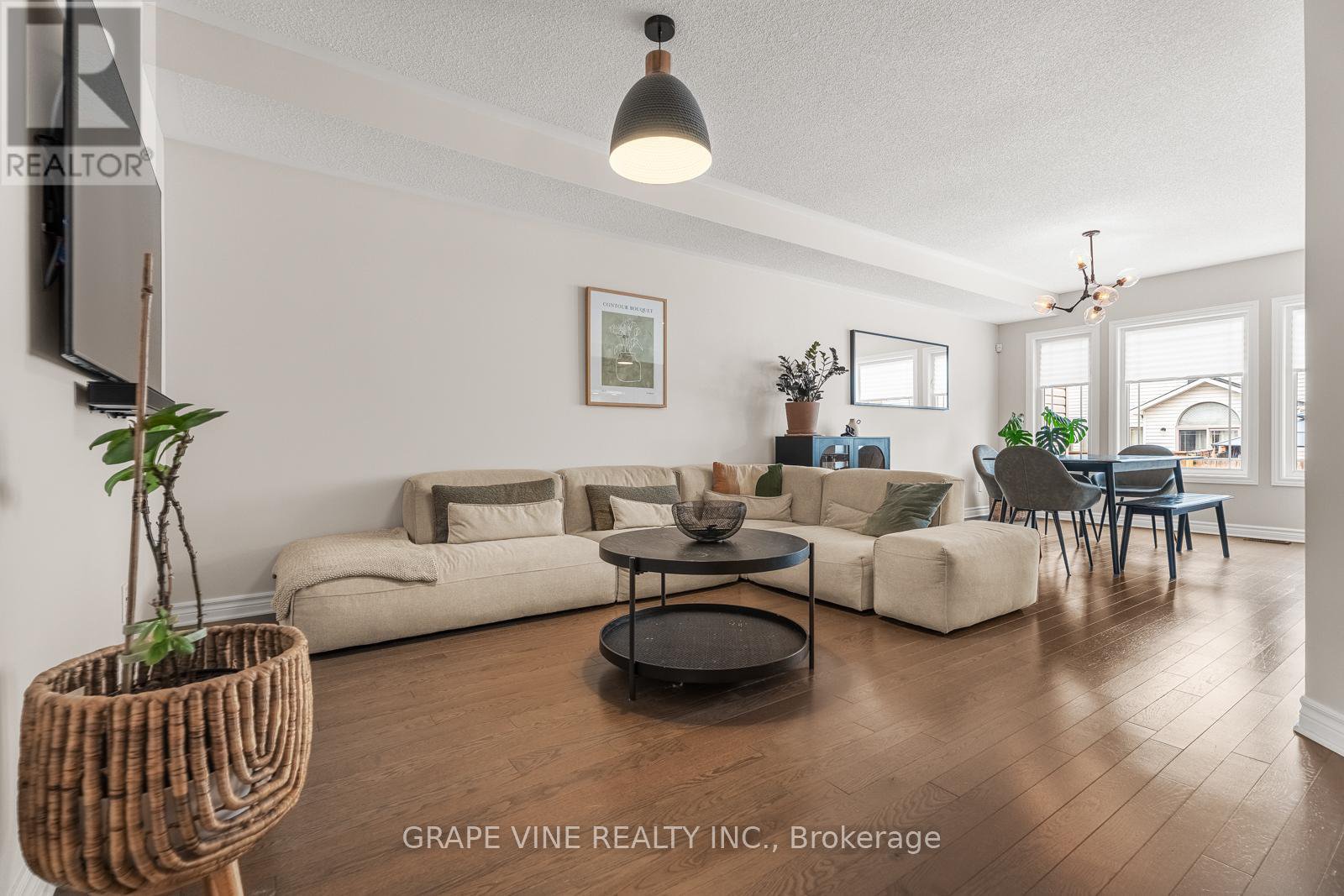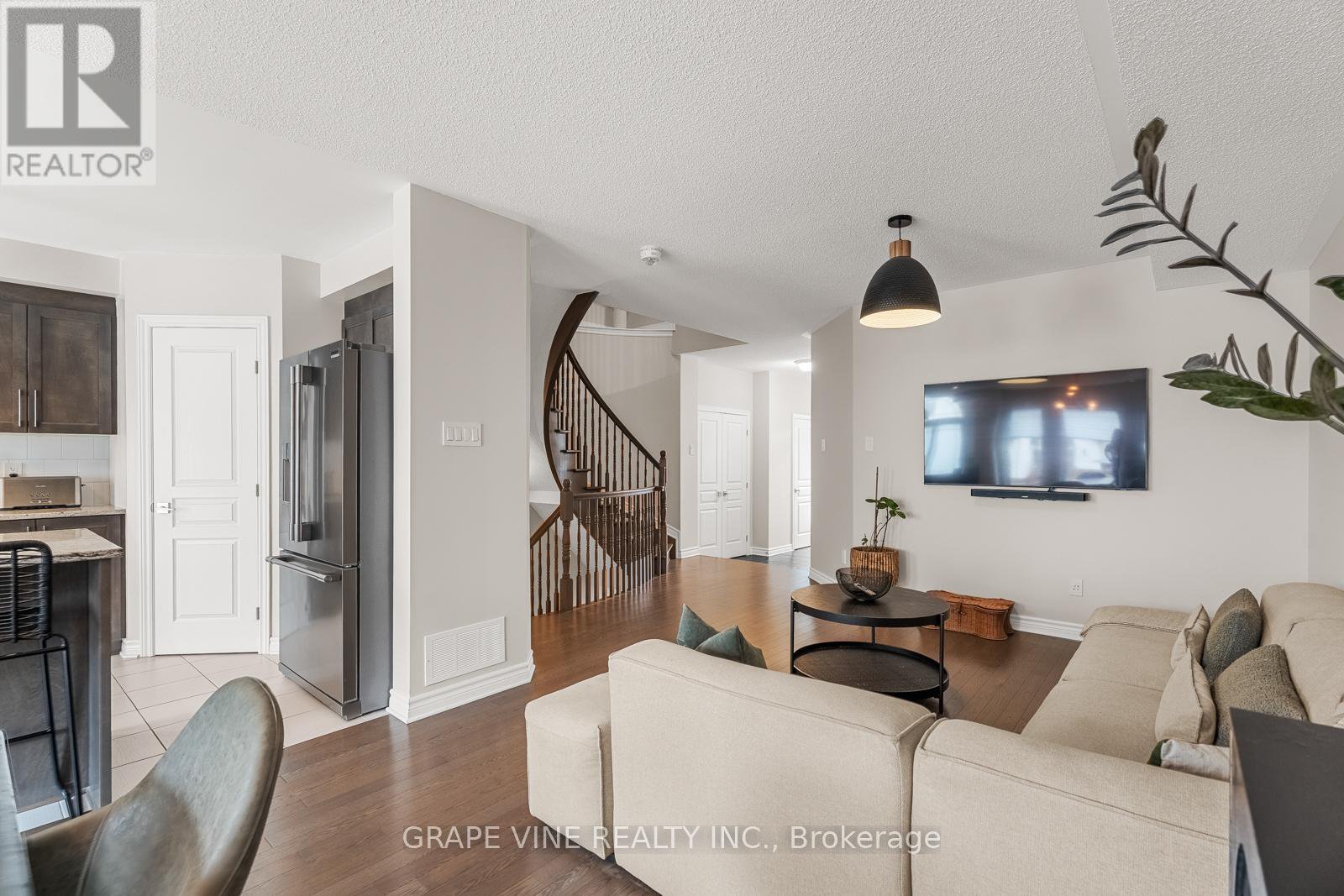 Immaculate 3 bedroom, 3 bathroom middle unit townhome in the Trailsedge community. Before even stepping in the door, you are greeted with easy to care for rock garden landscaping and interlock walkway. Elegant black tile in the foyer leads you into the open concept main living area. Granite countertops, cathedral ceilings, eat-in area, and pantry in the kitchen with large island. Hardwood and tile throughout main floor and lush carpeting on second floor bring luxury and comfort together. Second floor has primary bedroom with 4 piece ensuite and walk-in closet with custom built-ins. Two additional bedrooms and full bathroom complete the second floor. Fully finished basement with family room with gas fireplace is perfect for gathering and enjoying time together. Basement is full of storage possibilities with closets, laundry room and rough in for future bathroom. Backyard is fully fenced with large deck. Located close to nature trails and scenic parks.