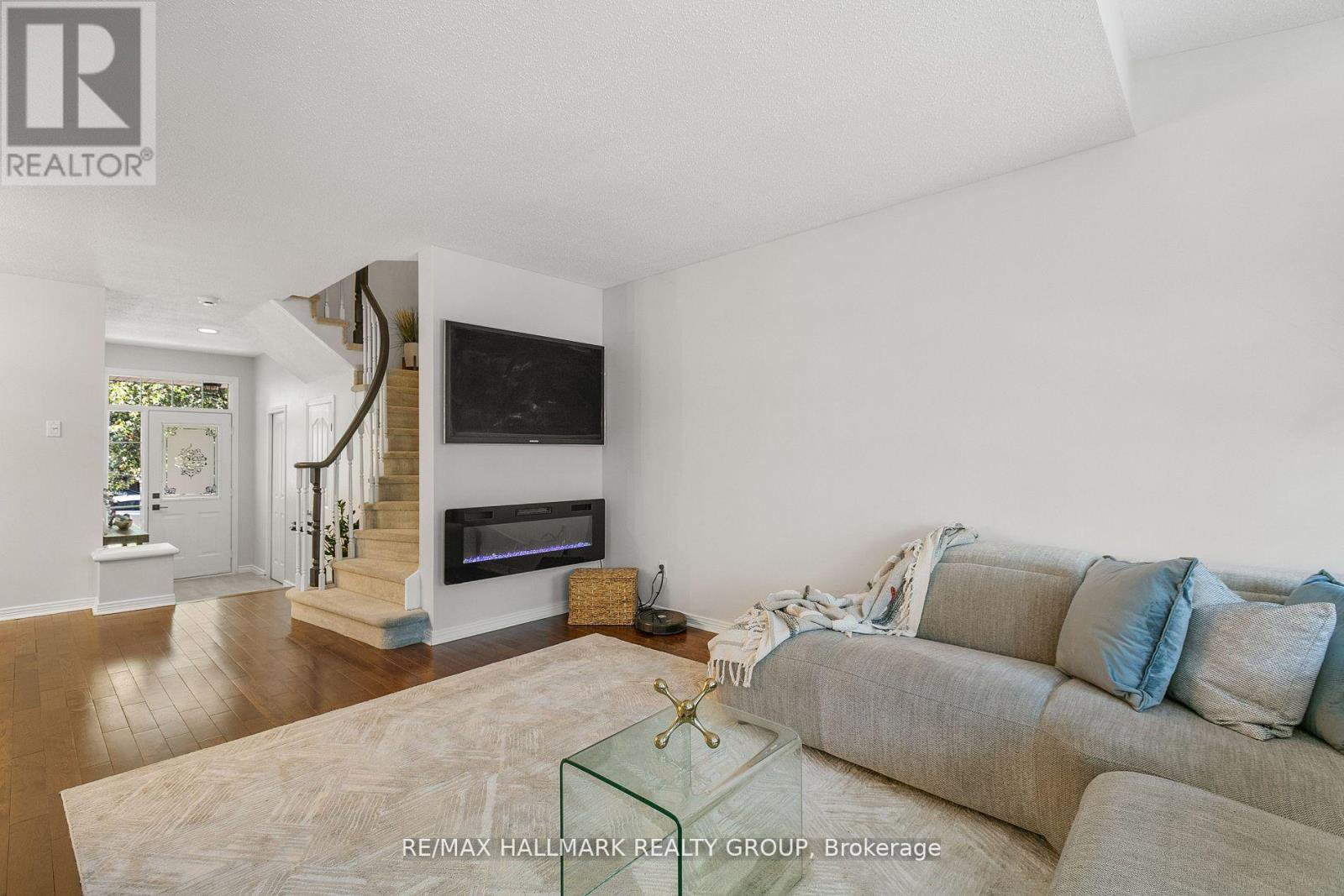 Beautifully updated 3-bedroom 3 bath townhome in the desirable Bridlewood community of Kanata! The main level offers hardwood and tile flooring, a spacious living room with vaulted ceiling, separate dining area, and a bright eat-in kitchen with quartz counters, breakfast bar, and recently updated SS appliances. Upstairs you'll find a generous primary suite with ensuite and walk-in closet, two additional bedrooms, and a full 3piece bath. The finished lower level features a cozy family room and plenty of storage. Enjoy outdoor living in the fenced backyard with oversized deck, perfect for relaxing or entertaining. Additional features include updated baths, central air, brick frontage with covered entrance, and parking for 2 cars. Located in a family-friendly neighborhood close to excellent schools, parks, trails, shopping, and public transit.