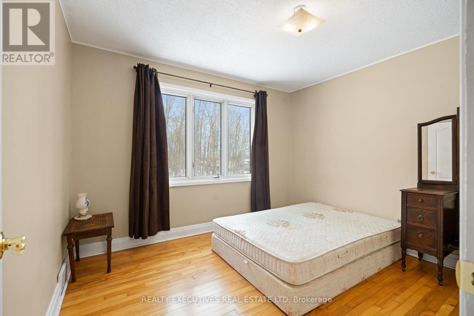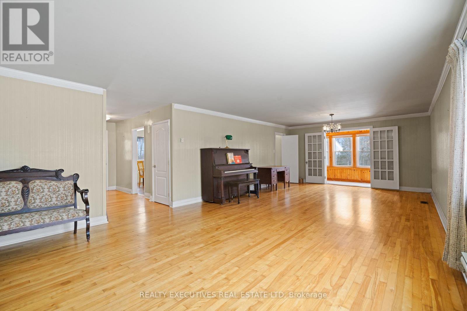 Set on over 11.5 acres in the peaceful village of Vernon, this spacious 3 bedroom, 2-bath bungalow offers privacy, versatility, and exciting future potential - including the possibility of land development or a small subdivision. See attached pre-approved site plan for 18 lots. The main level is designed for easy, carpet-free living and features a large primary bedroom with double-door closet, 2-piece ensuite, and a picture window overlooking the surrounding trees. The bright eat-in kitchen provides ample cabinetry and a large window with views of the private backyard and no rear neighbours. Two additional bedrooms, main-floor laundry, and a functional layout make everyday living comfortable and convenient.A sun-filled dining area flows into a generous living room, perfect for gatherings, while the charming enclosed sunroom with warm wood finishes offers a peaceful space to relax and enjoy the natural setting year-round.The lower level expands your options with a fourth bedroom, potential home office, and a large unfinished area ideal for storage or future living space. Additional features include a durable metal roof, attached garage, and a wide gravel driveway with plenty of parking.Whether you're seeking multi-generational living, room to grow, or a private retreat with long-term development potential, this property delivers space, serenity, and opportunity in a truly tranquil setting.