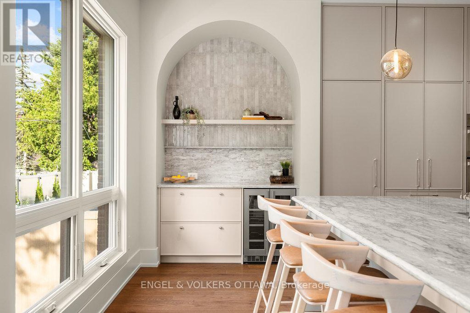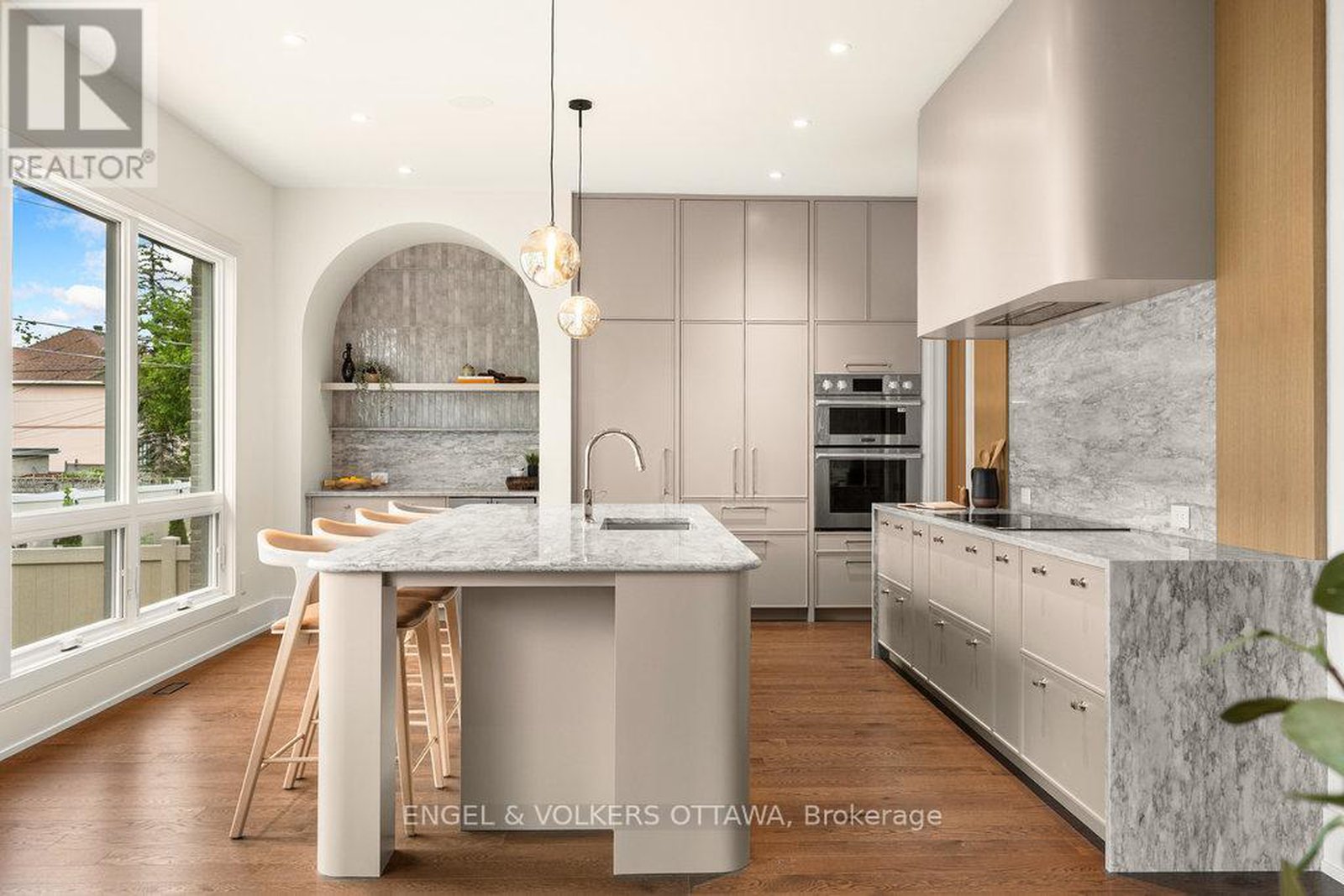 Custom-built by Cartesian Homes, this rare architectural residence blends modern design with timeless sophistication and craftsmanship that must be experienced in person. A dramatic 16-foot foyer sets the tone, leading into a breathtaking open-concept living space defined by 14-foot ceilings, striking clerestory windows, and natural light that transforms the home throughout the day-details and scale photos simply cannot capture.Designed with intention and finished to an exceptional standard, this true custom build showcases curated materials, refined architectural curves, and elevated millwork throughout. At the heart of the home, the statement kitchen pairs rich custom cabinetry with panel-ready appliances for a seamless, built-in aesthetic, while a fully outfitted prep kitchen and pantry keep entertaining effortless and discreet.Indoor living extends outdoors to a large covered porch functioning as an extension of the main living space, complete with exterior speakers and a gas BBQ line-ideal for private evenings and relaxed mornings. The main floor offers two generous bedroom suites with private ensuites, including a serene primary retreat featuring a spa-inspired bath with glass shower, dual vanities, and a walk-in closet, plus a spacious office and beautifully finished powder room.The fully finished lower level delivers exceptional versatility with a second laundry, home gym, two additional bedrooms, multiple full bathrooms (including an ensuite), and a sprawling recreation space designed for a home theatre and games area. A double garage connects through a custom mudroom with built-in storage. The exterior blends maintenance-free composite fluted cladding with brick, stone accents, and durable steel siding-chosen for lasting style and minimal upkeep.Turnkey. Distinct. Unmatched in quality. A complete architectural experience.