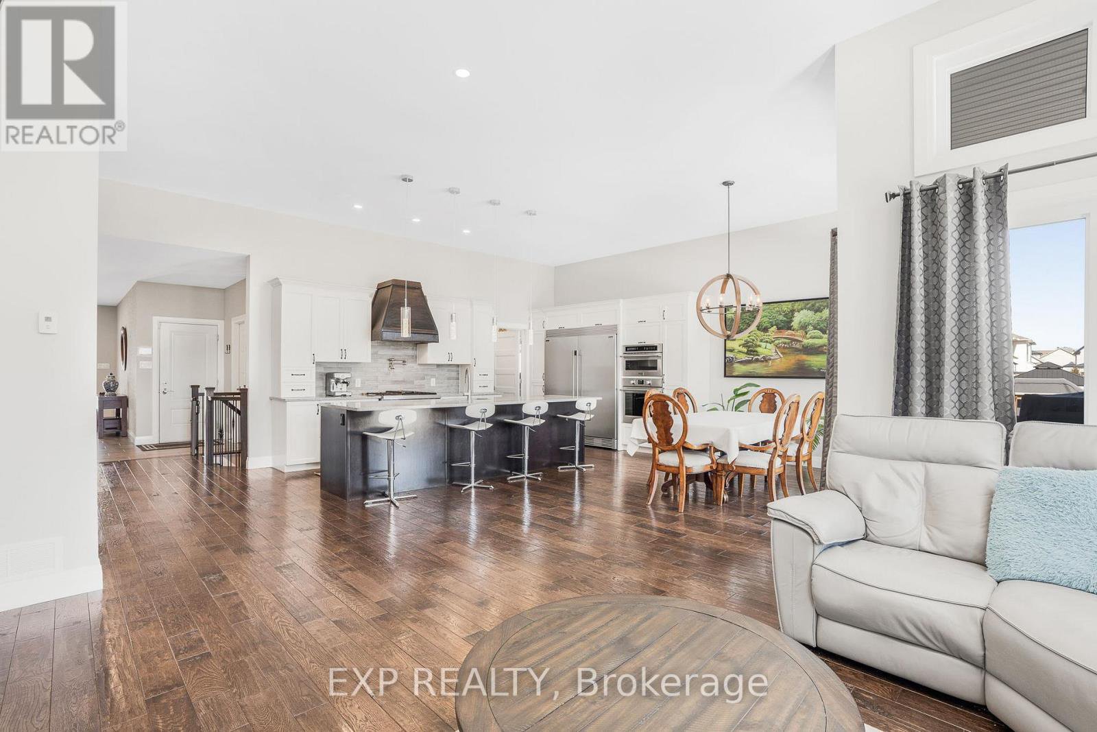 Welcome to this immaculate and luxurious 4-bedroom bungalow, perfectly situated on an oversized, fully fenced lot in the heart of Morris Village. From the moment you step inside, you'll be captivated by the rich dark hardwood floors and the abundance of natural light streaming through the large windows and patio door in front of you. The heart of the home is the stunning chef's kitchen, featuring an oversized refrigerator, gas stove with pot filler, wall-mounted ovens, and an oversized quartz island - perfect for cooking and entertaining. The dining room comfortably accommodates a table for eight, while the spacious living room offers a cozy yet elegant space to relax and unwind. The primary bedroom is a true retreat, complete with hardwood floors, a luxurious ensuite bathroom, and a generous walk-in closet. Two additional main floor bedrooms, both with large closets, share a second full bathroom, making this home ideal for families or guests. Downstairs, the beautifully finished basement is designed for entertaining and relaxation. Enjoy the sleek wet bar with live edge countertop and with a second dishwasher and wine refrigerator, unwind by the gas fireplace in the living area, or host guests in the fourth large bedroom and third full bathroom. There is also plenty of storage space to keep everything organized. Outside, the backyard is fully fenced with built-in irrigation system, providing both privacy, comfort and convenience. Taxes are 2024 as client does not have 2025 figures.
