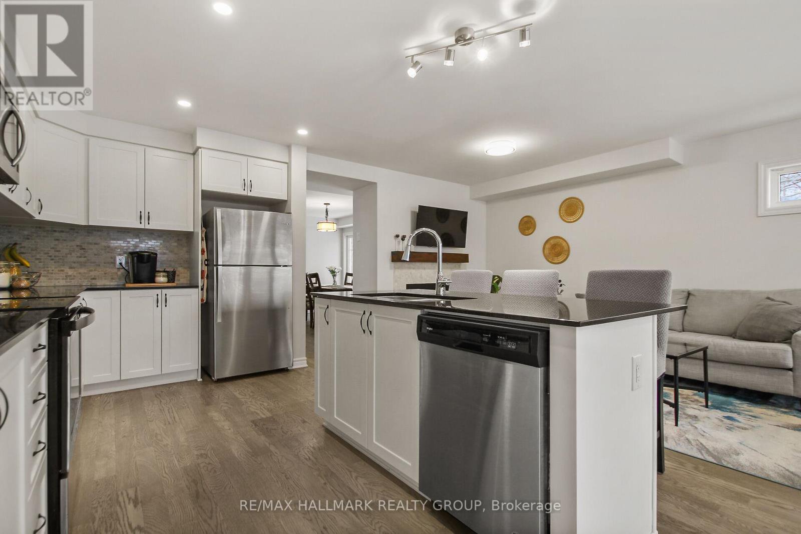 Open House Sat Jan 17, 1-3 & Sun Jan 18, 2-4. Welcome to this stunning 3-bedroom, 4-bath end-unit townhome that truly feels like a semi-detached, offering extra space, privacy, and abundant natural light. With no rear neighbours, this home provides a rare sense of openness and tranquility. Thoughtfully designed with hardwood flooring throughout, including the stairs, it blends timeless style with everyday functionality.The spacious main floor features a large dining room ideal for entertaining and a beautiful kitchen complete with a quartz counter tops and large island, ample cabinetry, and generous counter space. Step outside to enjoy the beautifully finished exterior, featuring interlock in the front and a private backyard retreat with a deck and gazebo.This home offers a unique and highly practical layout with stair access to the basement from both the front and back, allowing easy movement from the garage to storage areas and convenient access to the furnace and utilities. The basement provides extensive storage, making it an incredibly versatile space.Upstairs, enjoy the convenience of second-floor laundry and three generously sized bedrooms. The primary suite is a true retreat, featuring two large walk-in closets and a spa-inspired ensuite with double sinks, a separate shower, and a soaker tub. Bedrooms two and three also include their own walk-in closets. Bright, spacious, and meticulously maintained, this home delivers comfort, privacy, and thoughtful design in every detail.