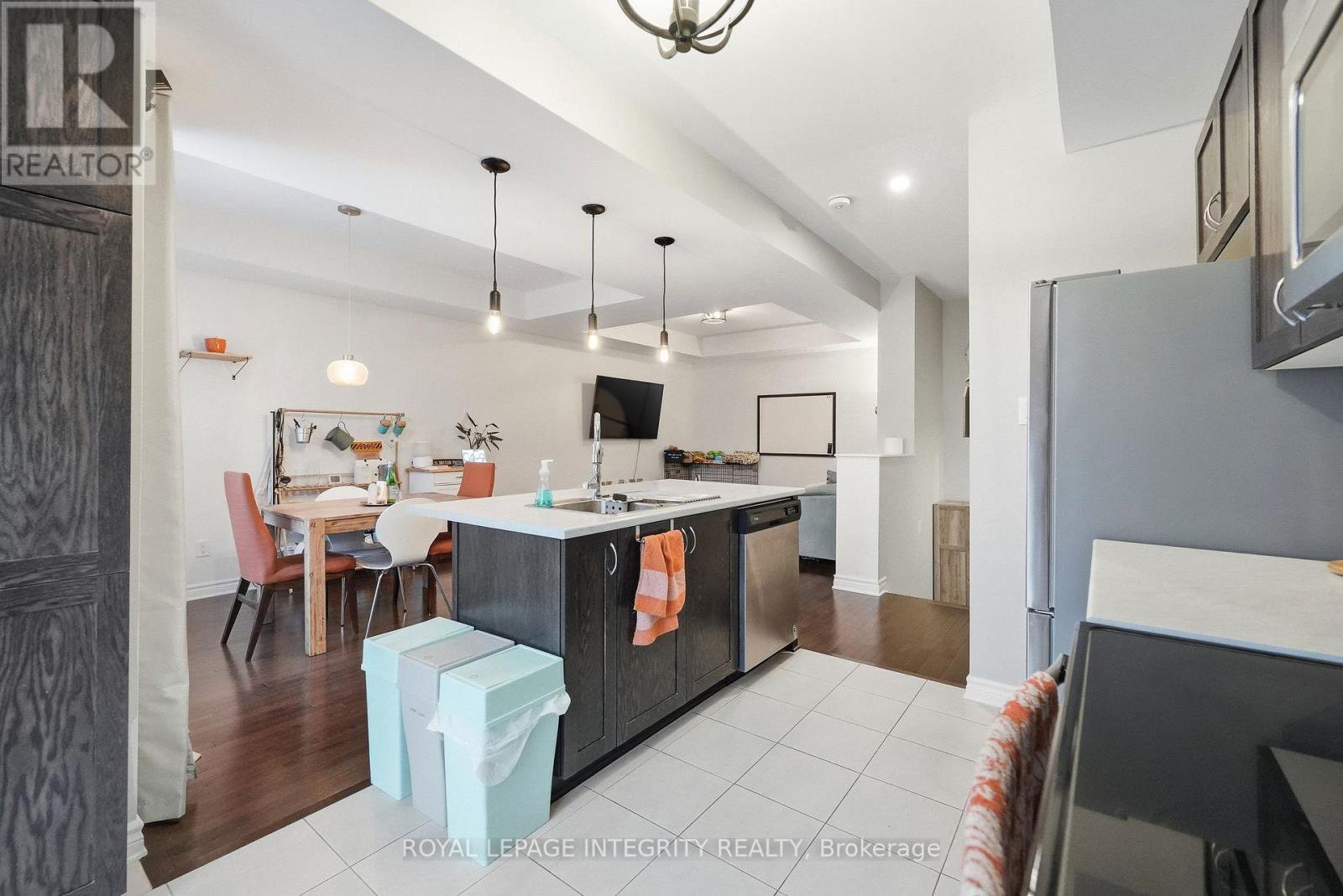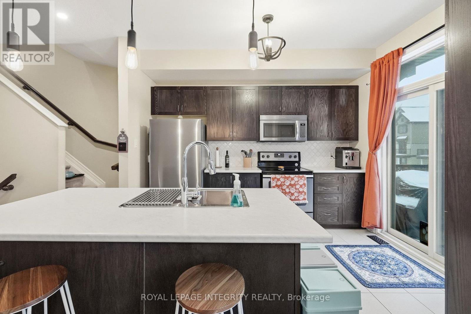 Welcome 322 Citrine Street - a 3-storey END UNIT freehold townhome in Avalon West! Set within one of Orléans' most desirable and thoughtfully planned communities, this stylish townhome offers a comfortable, convenient and low-maintenance lifestyle. Pull up the driveway with parking for two cars and direct access to the attached garage before stepping into the welcoming foyer featuring a large closet, a dedicated laundry room, inside entry to the garage and additional storage space. Heading up to the second level, you'll pass the partial bathroom before arriving at the bright open-concept layout with hardwood flooring throughout the living and dining areas, both filled with natural light from large south-facing windows. The kitchen is sure to impress with its functional design, stainless steel appliances, modern backsplash, ample counter space, and a centre island with seating for casual meals, plus patio doors leading to your private 10'6" x 8'0" balcony. Upstairs, you'll find a generously sized primary bedroom with a walk-in closet, a spacious secondary bedroom and a full bathroom with an upgraded vanity and stylish tiled wall. The location truly shines, offering the perfect balance of nature and neighbourhood living - just steps to parks, schools and walking trails, while remaining minutes from shopping, grocery stores, restaurants, and transit!