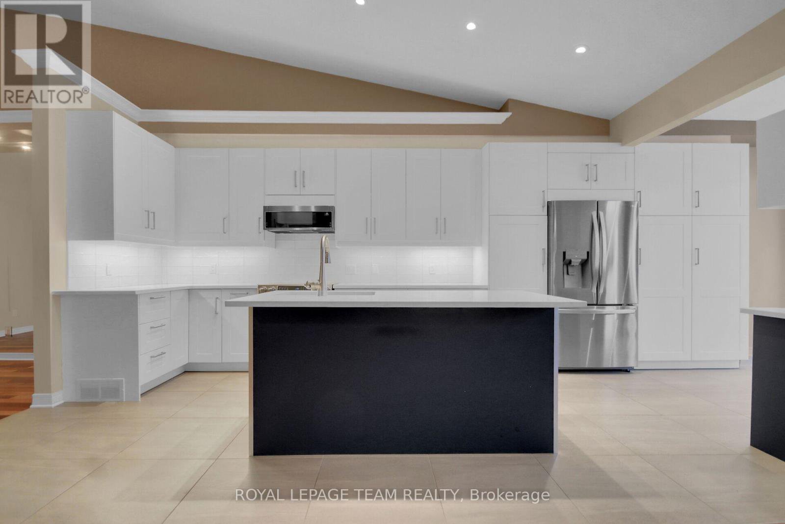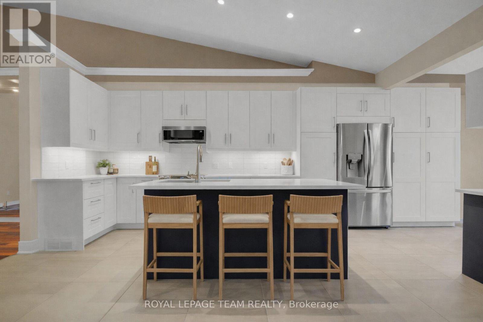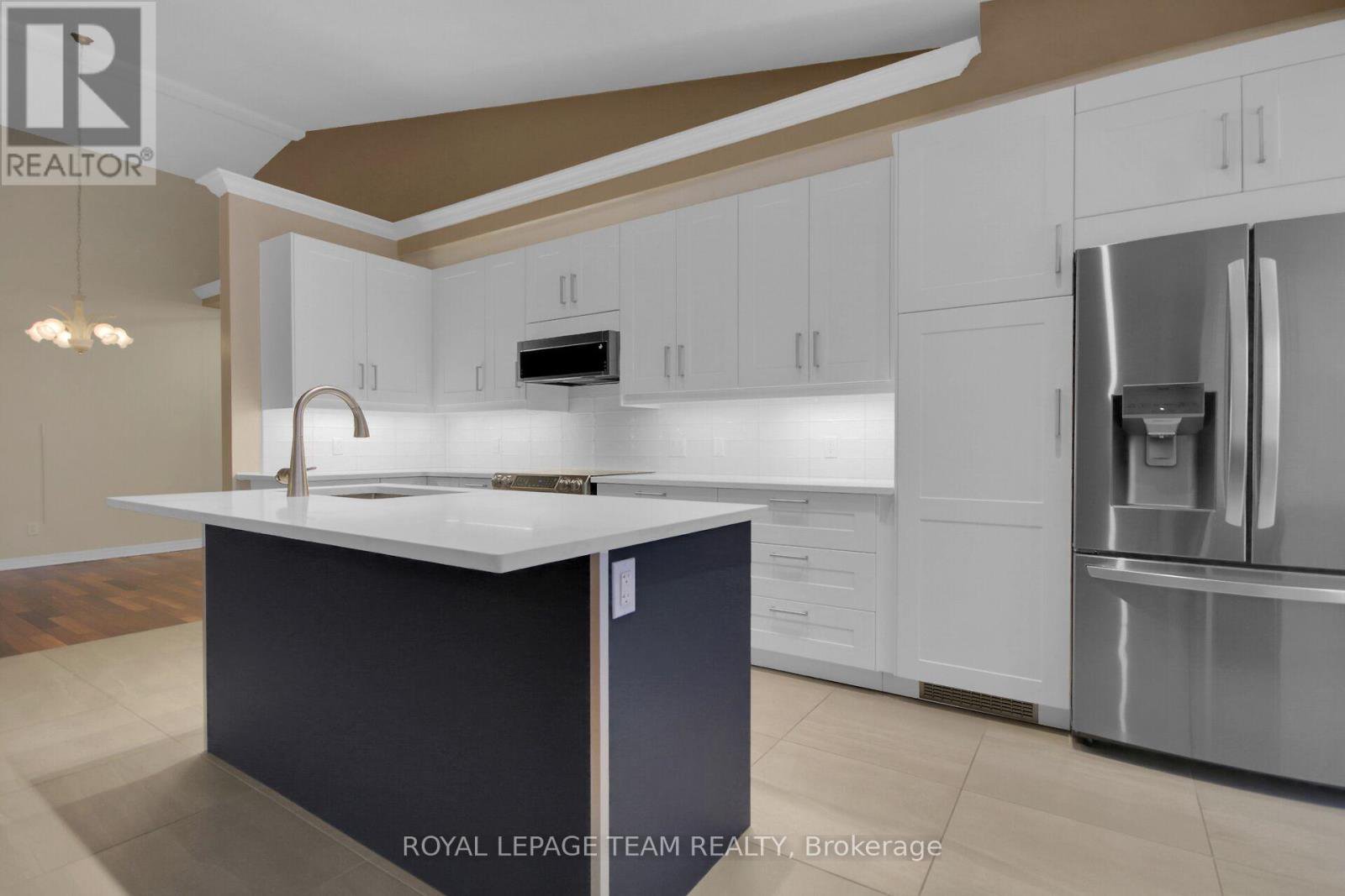 Welcome to easy, adult-lifestyle living in this beautifully maintained end-unit Bungalow Townhome located in a desirable west-end Ottawa community of Deer Run in Stittsville. Offering 3 Bedrooms and 3 full Baths, this home combines comfort, style, and low-maintenance living in a quiet, friendly setting. The bright main level features an open-concept layout with vaulted ceilings and large windows that flood the space with natural light. The inviting Living and Dining areas flow seamlessly into the well-appointed brand new Kitchen, complete with ample cabinetry, stainless steel appliances, generous counter space, and a large island ideal for casual meals or entertaining. A cozy fireplace adds warmth and character to the Living Room. The spacious Primary Bedroom retreat includes a full Ensuite and excellent walk-in closet space. A second Bedroom and additional full Bathroom on the main floor offer flexibility for guests or a home office. Convenient main-level Laundry adds to the ease of everyday living. The fully finished Lower Level expands your living space with a large Family Room featuring custom built-ins, a third Bedroom, and a full Bathroom; perfect for guests, hobbies, or relaxed evenings. Enjoy outdoor living on the elevated deck overlooking a private, low-maintenance yard. Additional highlights include neutral décor throughout, an attached double garage, and the added privacy and light that come with being an end unit. Ideally situated close to shopping, parks, recreation, and all west-end amenities, this turnkey Bungalow end-unit Townhome offers comfort, convenience, carefree, and fee free living. Some pics virtually staged to show options.