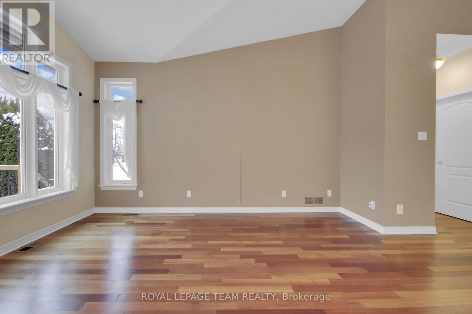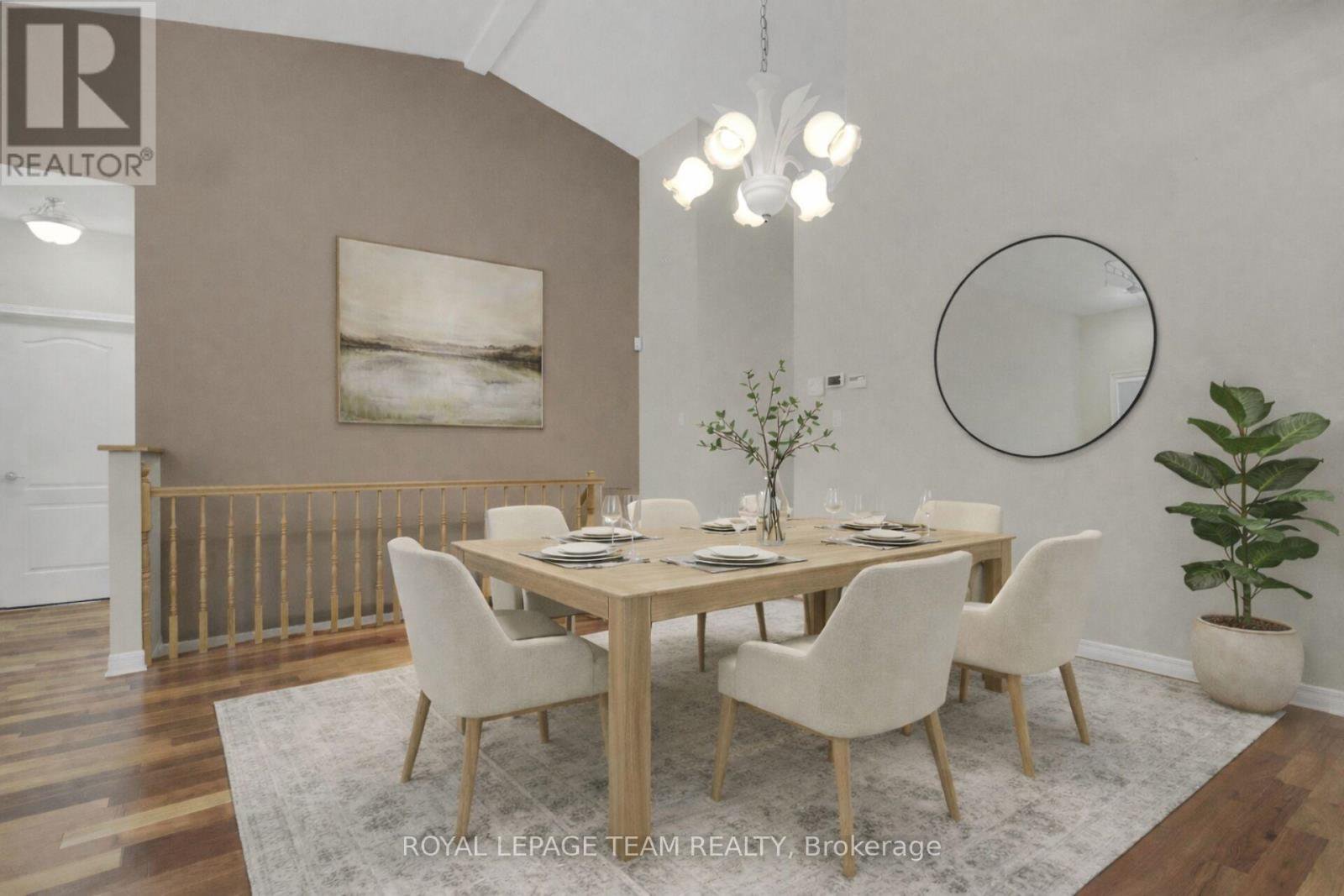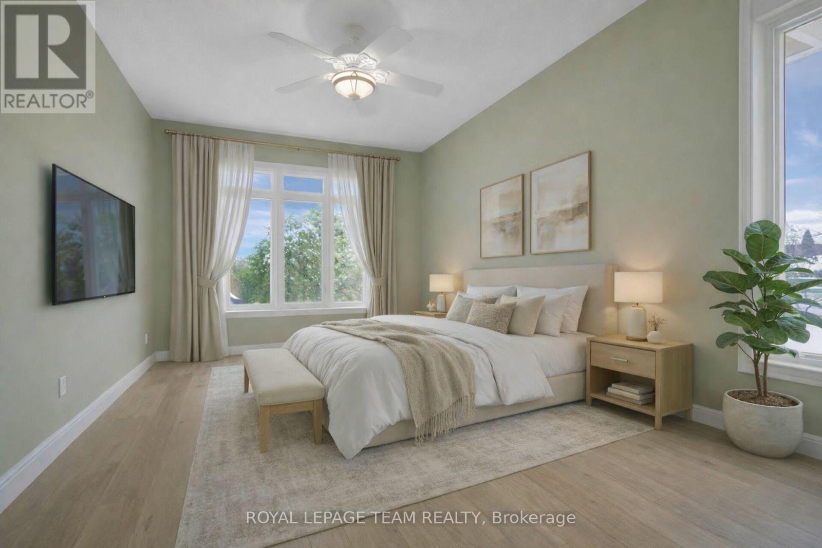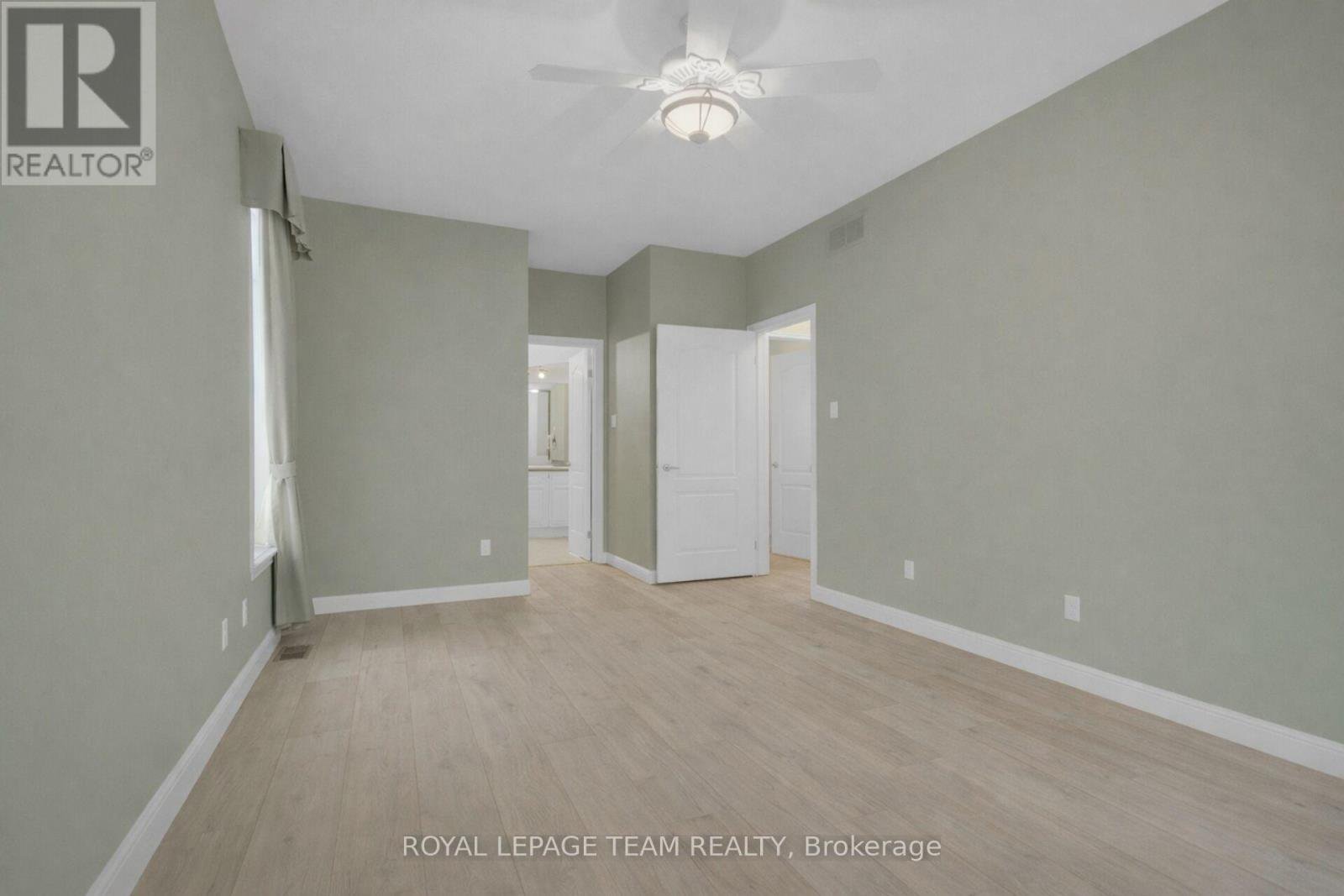 Welcome to easy, adult-lifestyle living in this beautifully maintained end-unit Bungalow Townhome located in a desirable west-end Ottawa community of Deer Run in Stittsville. Offering 3 Bedrooms and 3 full Baths, this home combines comfort, style, and low-maintenance living in a quiet, friendly setting. The bright main level features an open-concept layout with vaulted ceilings and large windows that flood the space with natural light. The inviting Living and Dining areas flow seamlessly into the well-appointed brand new Kitchen, complete with ample cabinetry, stainless steel appliances, generous counter space, and a large island ideal for casual meals or entertaining. A cozy fireplace adds warmth and character to the Living Room. The spacious Primary Bedroom retreat includes a full Ensuite and excellent walk-in closet space. A second Bedroom and additional full Bathroom on the main floor offer flexibility for guests or a home office. Convenient main-level Laundry adds to the ease of everyday living. The fully finished Lower Level expands your living space with a large Family Room featuring custom built-ins, a third Bedroom, and a full Bathroom; perfect for guests, hobbies, or relaxed evenings. Enjoy outdoor living on the elevated deck overlooking a private, low-maintenance yard. Additional highlights include neutral décor throughout, an attached double garage, and the added privacy and light that come with being an end unit. Ideally situated close to shopping, parks, recreation, and all west-end amenities, this turnkey Bungalow end-unit Townhome offers comfort, convenience, carefree, and fee free living. Some pics virtually staged to show options.
