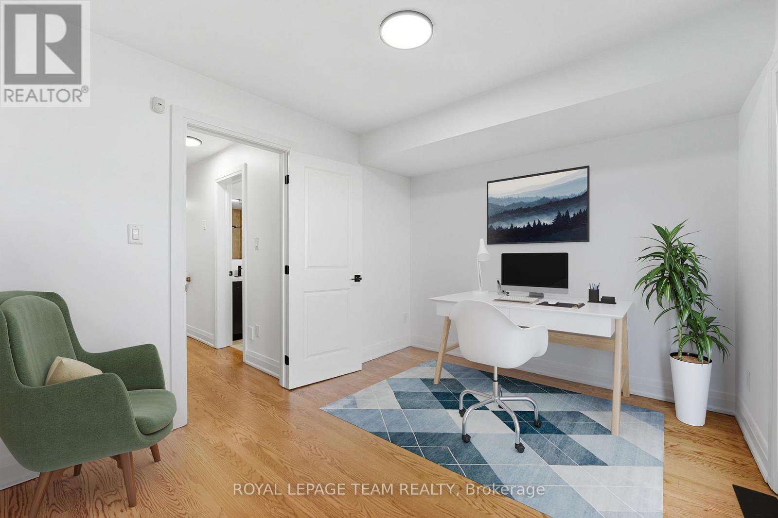 Urban living at its best in the heart of Ottawa. This freshly renovated move in ready freehold end unit townhome with no condo fees offers the ideal blend of lifestyle, space, and convenience just steps to Billings Bridge, Carleton University, the Rideau River, Lansdowne Park, Bank Street shops, the O Train, and within walking distance to The Glebe. Thoughtfully designed and built with newer construction, this rare offering features 3 bedrooms, 3 full bathrooms, generous above grade living space, and a fully finished lower level. The ground level welcomes you with a foyer and a bright, versatile den that works perfectly as a third bedroom, home office, or guest suite, complete with a 3 piece bathroom, in suite laundry, and walkout to the rear yard. The main living level is designed for entertaining with a sun filled open concept living, kitchen, and dining areas, 9 foot ceilings, and large windows, alongside a sleek, well appointed kitchen featuring stainless steel appliances, ample cabinetry, and a centre island. Step out to the private balcony, ideal for morning coffee or evening unwinding. The upper level offers two spacious bedrooms with walk in closets and two full bathrooms, including a primary bedroom with ensuite, and it's own balcony. The finished basement adds additional living space, perfect for a rec-room, office, or games room, along with ample storage. Meticulously maintained, impeccably clean, and completely move in ready, this is an exceptional opportunity offering easy, stylish living in one of Ottawa's most connected locations. 48 hours irrevocable on all offers as per form 244.
