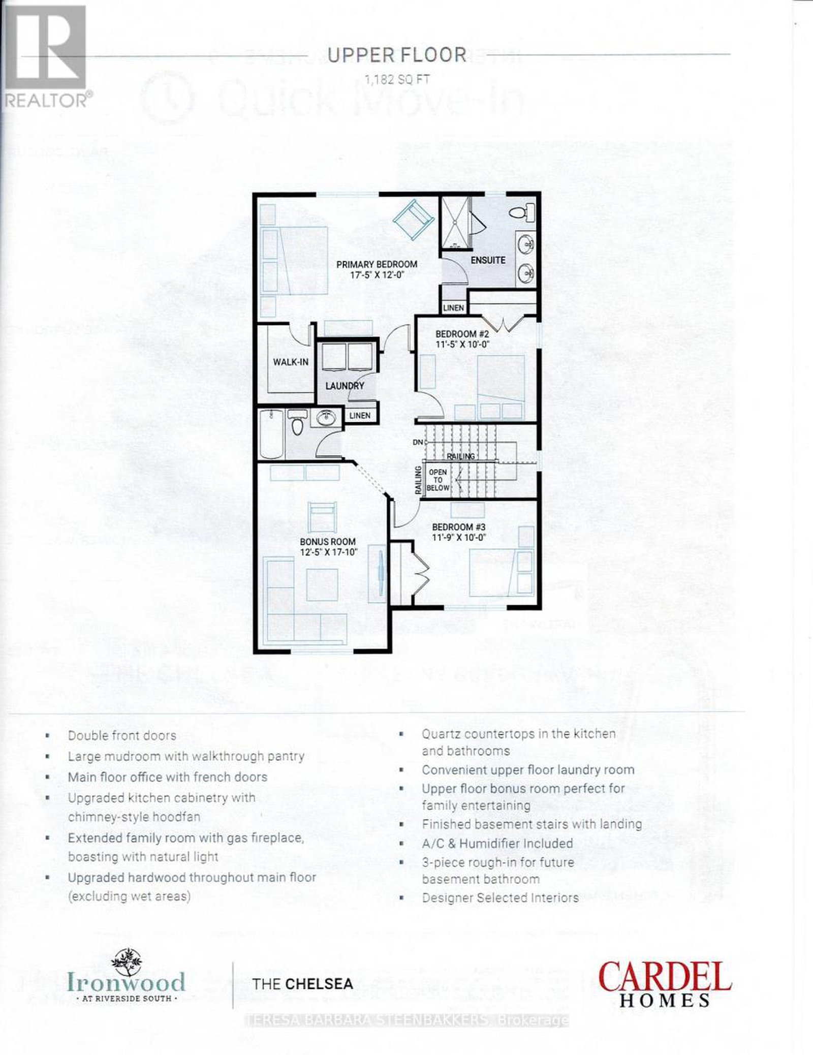 This home is gorgeous inside, with designer finishes in unusual, warm and light colours, so lovely!! Excellent pricing for a brand new home with a full Tarion Warranty and pre-delivery inspection. This newly developed area is close to Barrhaven's most popular major shopping/box stores and offers recently built schools within walking distance as well as light rail/public transit nearby. This one-of-a-kind home features popular builder upgrades incl attractive double front entry doors, beautiful kitchen cabinetry, quartz c/tops, upgraded main floor hardwood flrs and visually open/ finished bsmt stairs to the lower level with a 3pc bath rough-in. Add in a dedicated main floor office in addition to the modern, open concept floor layout. Upstairs, there are 3 bedrooms plus a bonus room to fit an active social family requiring the extra space to invite/entertain friends as needed. Floor Plan showing the convenient second floor laundry room is in photos and other builder information is available by realtor request. Current taxes are for land and property to be reassessed on closing, Pin number to be confirmed. Offers are to be communicated during regular business hours, if possible, with a minimum 24 hr irrevocable Deposit to be held by Seller's lawyer., Seller is Cardel Homes Inc.