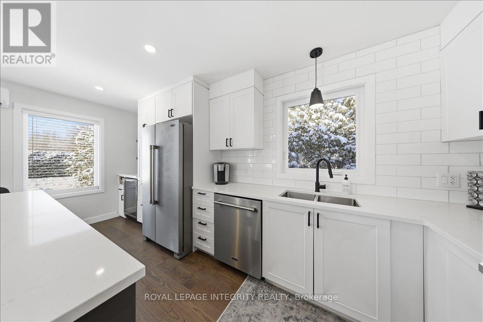 Move-in ready and beautifully renovated, this 4 bedroom, 2 bathroom home sits on an impressive 87' x 262' lot with no rear neighbours, right in the heart of Clarence Creek! The fully renovated main floor is sure to impress with its inviting open concept layout and tasteful finishes throughout, highlighted by beautiful 6" oak hardwood floors. Be prepared to be wowed by the stunning renovated kitchen (2024) featuring crisp white cabinetry, quartz countertops, striking black hardware, classic white subway tile backsplash and stainless steel appliances, including a gas range. A stylish bar area with mini refrigerator and a massive centre island with seating anchor the space, all overlooking the sun-filled living room - Perfect for everyday living and entertaining! The bedroom area offers a generous primary bedroom, a spacious secondary bedroom and a beautifully designed bathroom (2024) complete with bold black finishes, hexagon tile and a sleek glass shower. A convenient side entrance leads directly to the basement stairs, making this an ideal setup for a potential in-law suite. The basement boasts high ceilings and oversized windows throughout, creating a bright and welcoming lower level that includes a versatile family room, two additional bedrooms, a full bathroom and a laundry room with plenty of storage. Outside, enjoy the paved driveway leading to the detached garage, offering ample space for a vehicle and additional storage, and extending to the fully fenced backyard-perfect for kids and pets. Great convenient location, minutes to Rockland with all possible amenities and easy commute to Ottawa! Many major updates done in the recent years - windows & exterior doors 2025, gas stove 2024, heat pumps 2024, roof 2018, paint 2024-25 & more. Simply move in and enjoy!