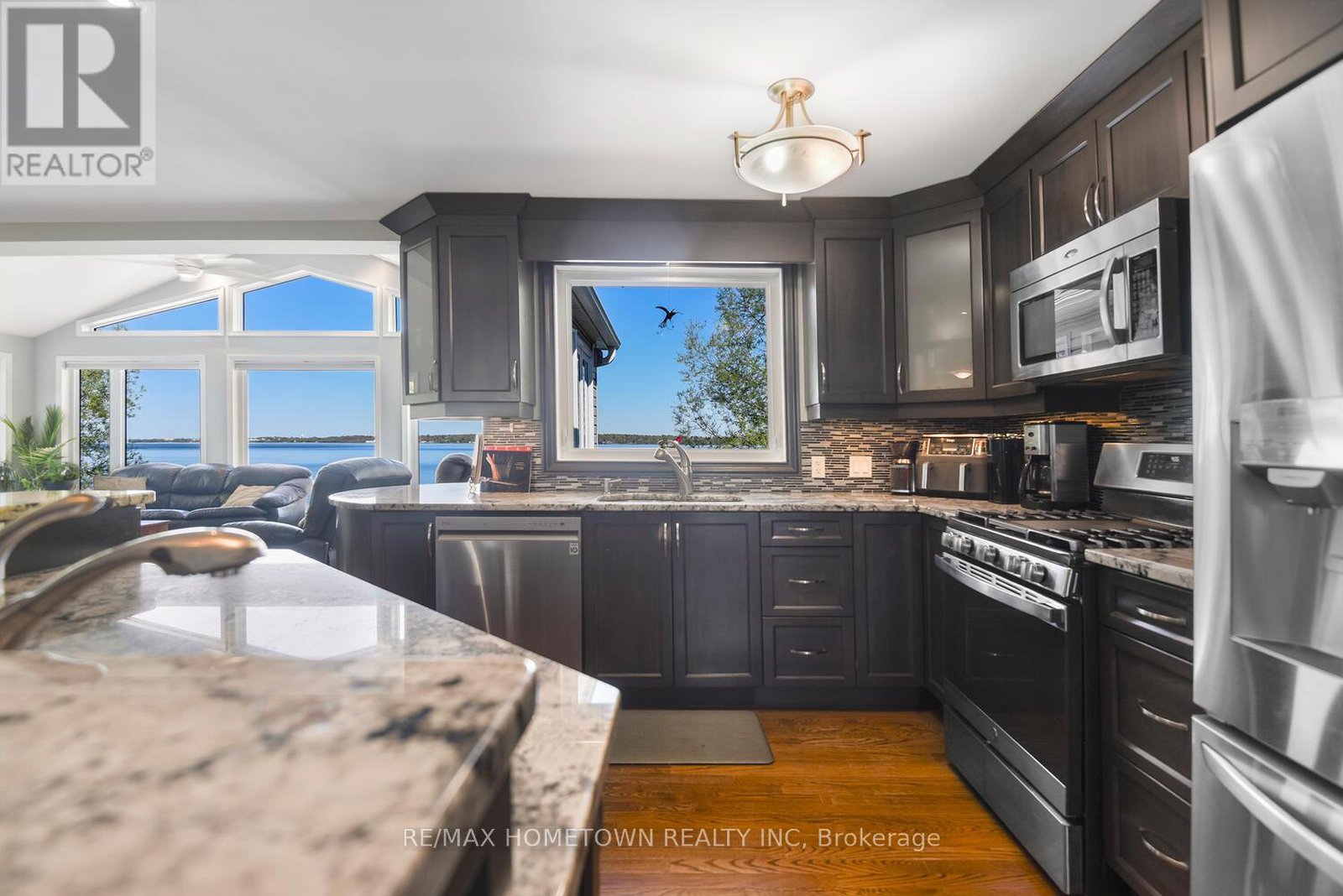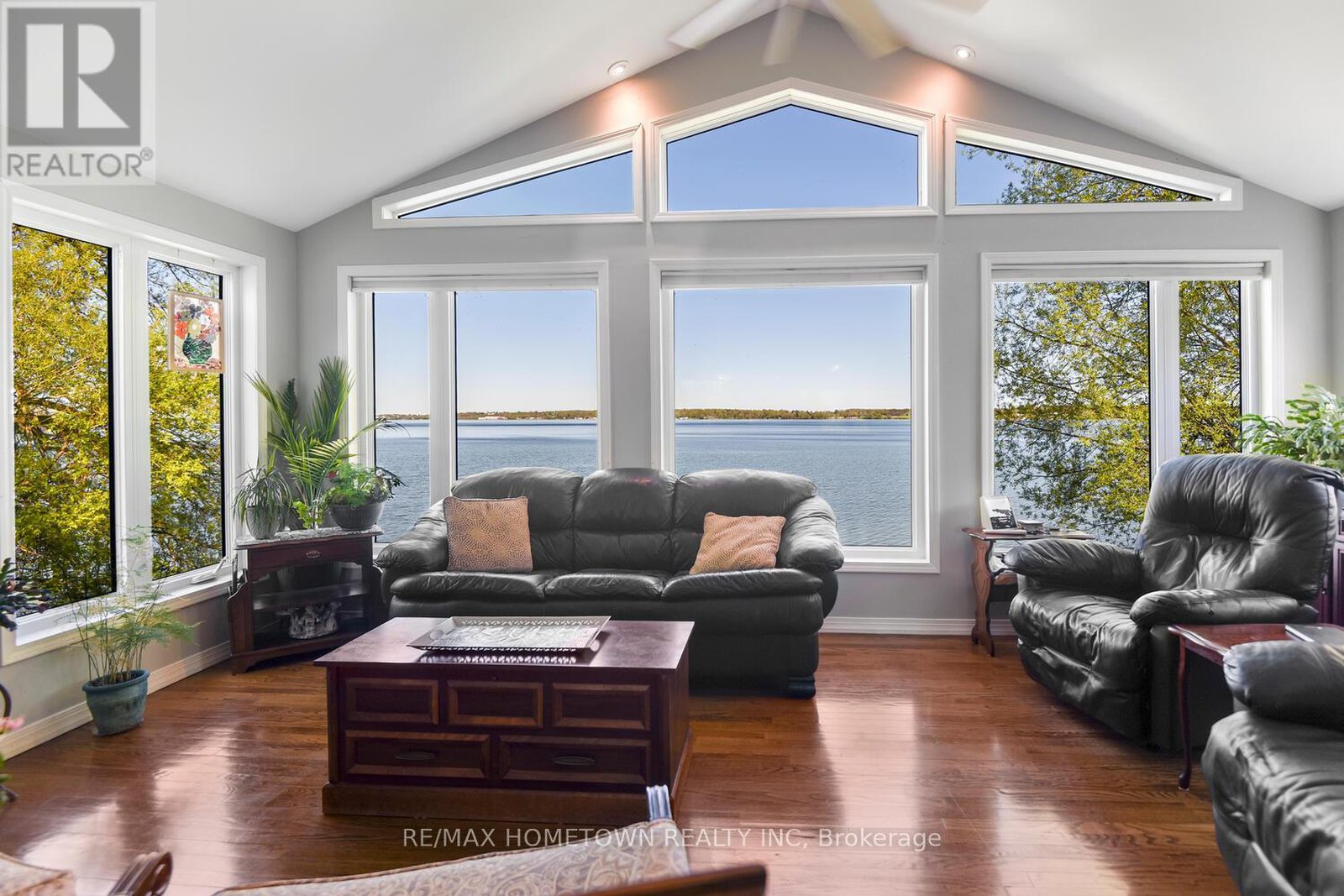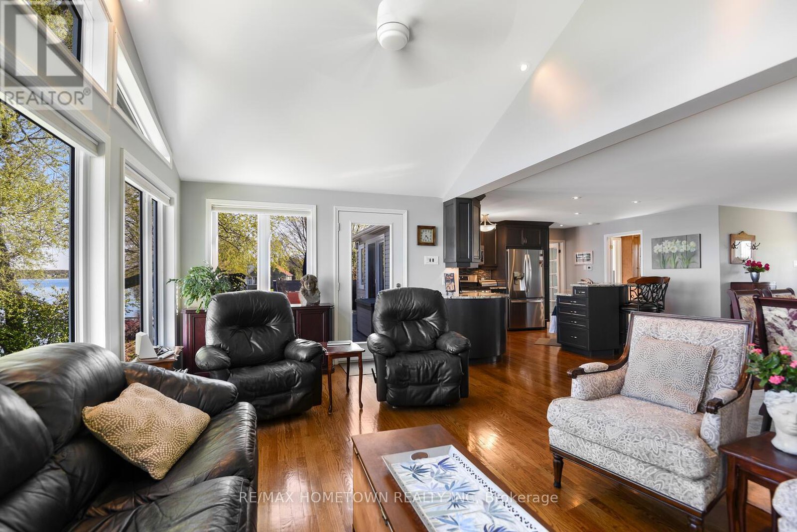 Welcome to 1435 County Road 2, a rare find on the beautiful St. Lawrence River! If you're looking for peaceful waterfront living, step inside and be instantly greeted with a full view of the river through a wall of large windows. Open-concept living and dining areas. The built-in wall unit includes a buffet, china cabinets, lighting, and lots of storage. Custom walnut kitchen with a generous island, including a prep sink and seating, designed for creating great meals and gathering with friends. Just off the kitchen is a 3-piece bath with a walk-in shower and a separate laundry room with a built-in ironing board. 2-car oversized garage with workshop area.The primary bedroom offers built-in drawers and cupboards and a spacious walk-in closet. Access the large deck from the living room or bedroom. Enjoy quiet mornings with coffee and an expansive river view, and watch the ships go by. Soak in the river views sitting on the deck, with a railing of glass panels and a dining area with built-in seating and storage cupboards, ideal for year-round BBQs. The lower level offers the same large windows as the main-level living room and includes two additional bedrooms, a 4-piece bath with a large soaker tub, a large walk-through storage room, and a big flexible room that can be used as a family room or office.The view may be too distracting to get much work done! Walk out to a covered patio and follow the stairs to the river to a 100 ft wide lawn, a cabin for sleeping,storing kayaks,swimming and fishing supplies. Attached is another deck for dining or lounging. Beyond the cabin is a beach area. Wildlife abounds; every day when you see the resident bald eagle sitting on its perch in the trees, ready to dive for a fish. Sometimes you'll be greeted by a heron standing on the seawall or at the beach. Watch ships and sailboats float by on the mighty St. Lawrence. Surrounding the home are vibrant, low-maintenance perennial gardens and fruit trees (apple, pear, plum,cherry, saskatoon).