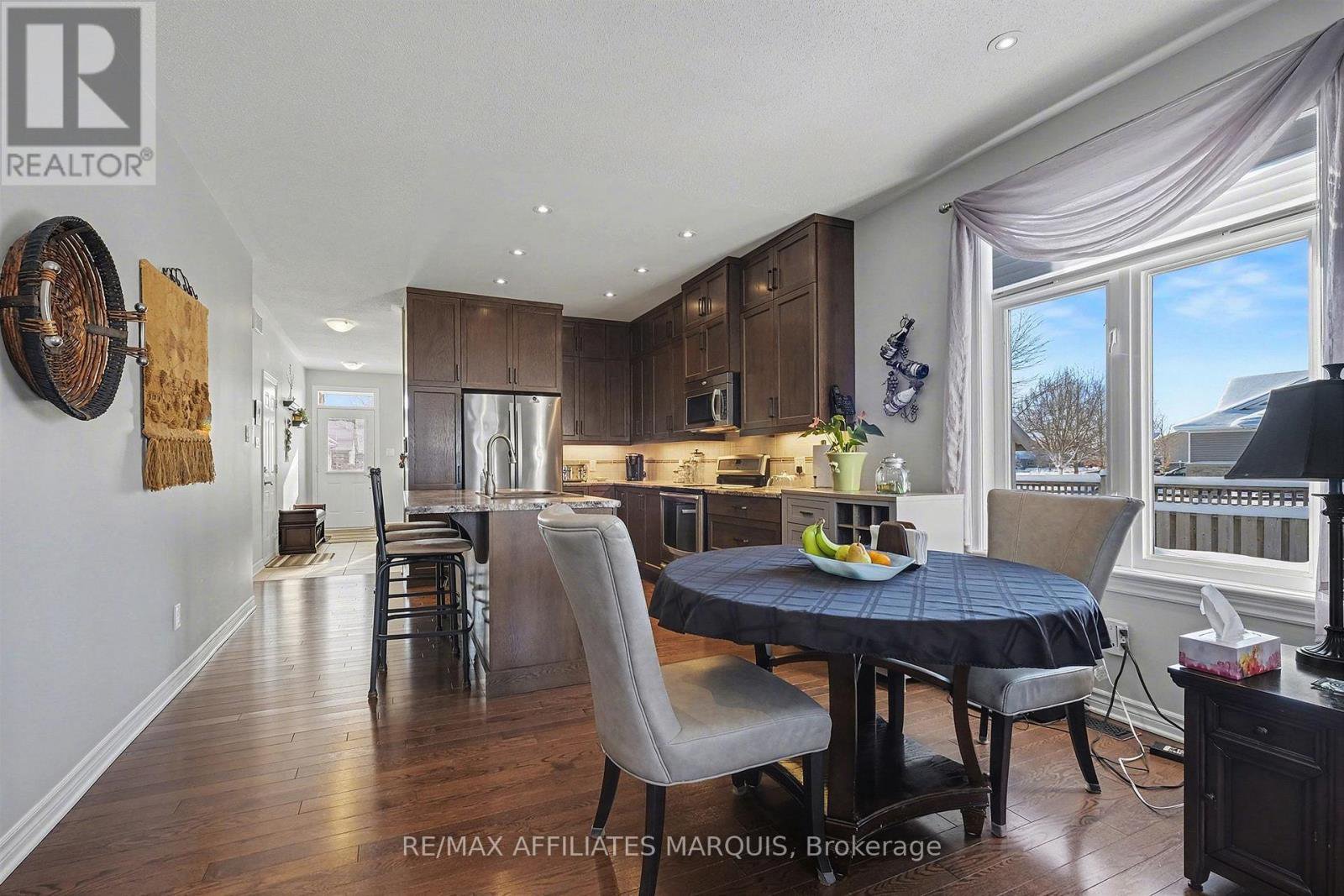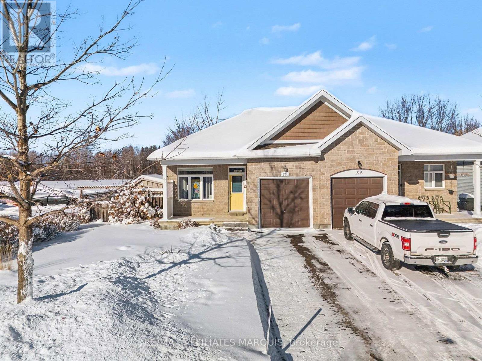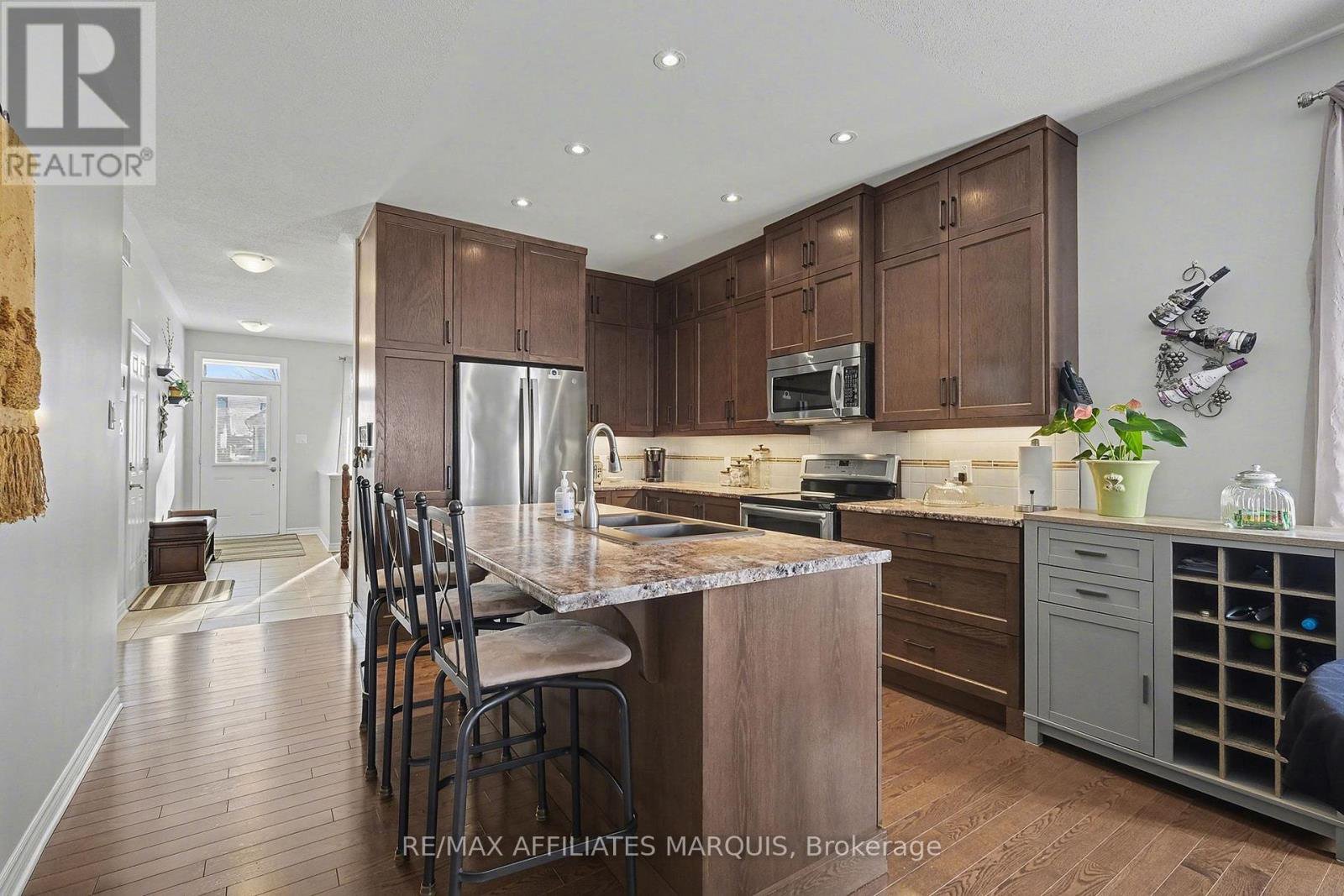 Spotless and comfortable semi-detached bungalow in the prestigious Equinelle Golf Club area of Kemptville. Built in 2012, this home offers lovely hardwood, laminate & tile on the main level, carpeting and tile on the lower level. Upon entry you are greeted by a spacious foyer next to the front den area. Move through to the lovely modern kitchen with its large island and quality stainless appliances, including fridge, convection stove, microwave/hood fan and dish washer. The kitchen has upgraded cabinetry and pantry space. Next are the open dining and living room areas with a patio door to the backyard escape. The main primary bedroom offers space for a king size bed and complimenting furniture. It also has a walk-in closet and a lovely 3-piece ensuite. Near the one car attached garage mudroom entrance is the laundry and beside that a 2-piece powder room too. The lower level adds an office area, a large family room, a good sized second bedroom, a 4-piece bathroom, furnace room and utility storage room too. Heated by a forced air gas furnace with central air and hot water via on-demand boiler. The hot water boiler is rented ($56.41/m which includes maintenance for furnace and central air too). There is also a water softener. The outside front yard has a lovely rock garden area with stone walkway and a paved drive. The fenced back yard adds a patio with a screened gazebo plus a storage shed. Behind is a family park area with a splash pad and play structures. A very nice location to call home, close to the amenities of Kemptville and easy access to Ottawa and the 416 highway.