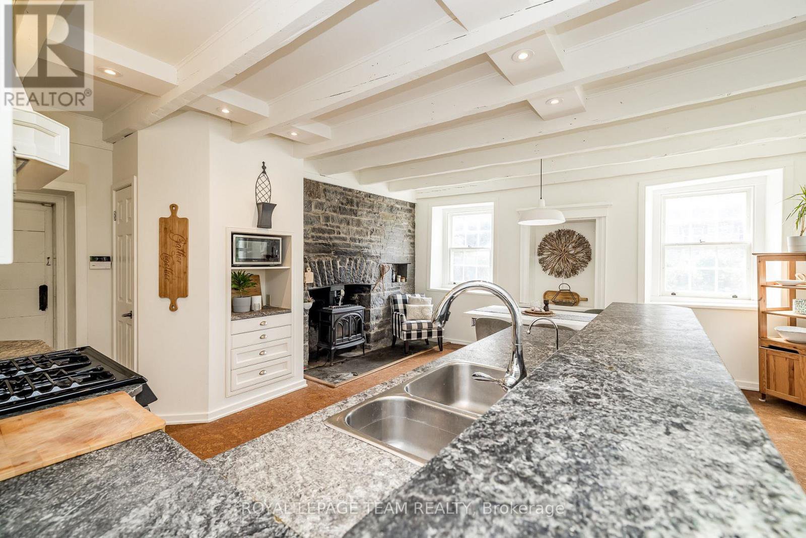 OPEN HOUSE SUNDAY JAN 25th 2-4PM. Nestled in the picturesque town of Appleton, this breathtaking stone home sits on 1.4 acres of gorgeous grounds directly across from the Mississippi River. Steeped in history and charm, it showcases original hardwood floors, soaring ceilings, deep window sills, and intricate period details that create a timeless sense of elegance. The primary suite above the kitchen, complete with an ensuite, makes this home ideal for large families. The main residence offers three additional bedrooms, a spa-inspired bathroom, a formal dining room, living room, office, and cozy sitting room, all complemented by generous storage throughout. The heart of the home is the eat-in kitchen, featuring stainless steel appliances, soapstone counters, and a gas fireplace that once served as the original cooking hearth and bake oven. From here, a breezeway connects seamlessly to the main living areas. Modern updates include 200-amp electrical service, offering peace of mind and flexibility for today's lifestyle. Enjoy peaceful mornings listening to the river rapids from the wrap around covered verandah, or unwind with a book in the enchanting English cottage garden. A newly added loft space above the garage offers even more versatility; perfect for extra storage, a studio, or a creative retreat. Lovingly maintained and thoughtfully updated, this rare gem combines old-world charm with modern comfort. Ideally located just minutes from Carleton Place and Almonte, with easy highway access for a short commute to Kanata and downtown Ottawa.