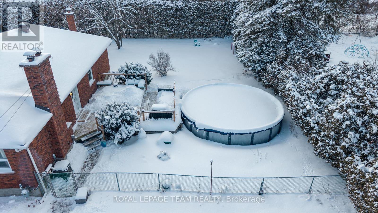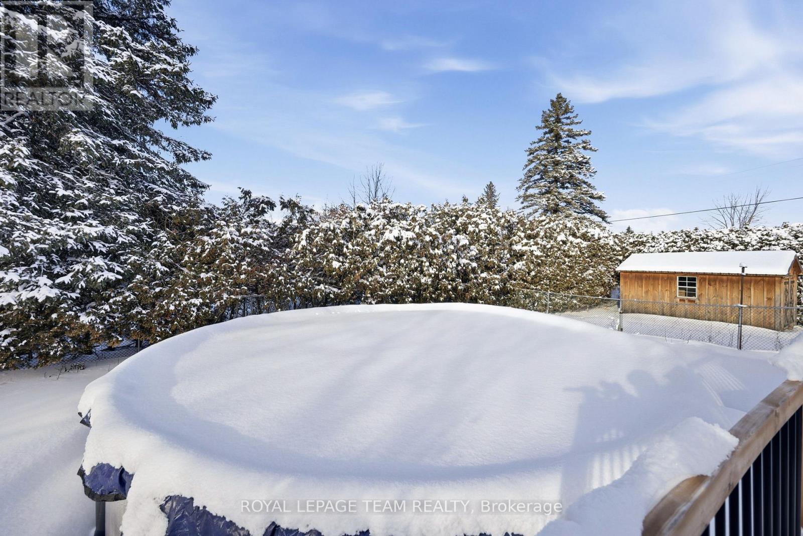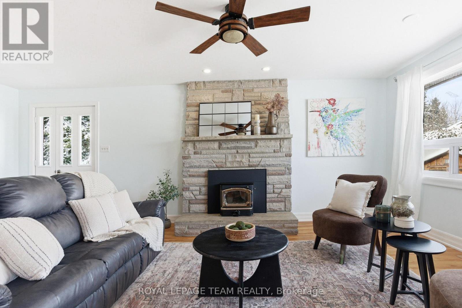 Located on a quiet street in the heart of Osgoode Village, this all-brick bungalow offers exceptional space, privacy, and thoughtful upgrades on a fully private and hedged 140' x 160' (0.525-acre) lot. A bright foyer connects to the backyard, garage while welcoming you into the open concept main floor, where the sun-filled living room sits just off of the chef's kitchen. Hardwood floors flow throughout the whole main level, featuring a cozy family room with a fireplace and a dining area ideal for everyday living and entertaining. The updated kitchen is the heart of the home, showcasing granite countertops, a large island, high-end stainless steel appliances w/ gas stove, extended cabinetry, recessed lighting, and ample storage and prep space. The main floor offers a spacious primary bedroom, two additional family bedrooms, a 4-piece main bath. The finished lower level expands the living space with a large recreation room featuring an extra family room and bonus space, a fourth bedroom, a full 3-pce bathroom, laundry area, updated egress windows, and plenty of storage-ideal for guests, teens, or a home office. Step outside to enjoy the massive, private backyard, designed for entertaining with a raised deck, a separately fenced 24' heated salt-water pool (2022), and expansive hedged lawn offering complete privacy. Additional highlights include a paved driveway, 10' x 16' Crawford shed, 2nd shed and an oversized (22'2" x 24'5") two-car garage with backyard access and inside entry. Extensively updated for peace of mind, the home features natural gas heating, new Lennox A/C (2022), hot water tank (2025), electrical with 200-amp service plus 125-amps auxiliary panel, roof (2023), 24' Salt Water Pool with Thermowalls & Heater from Poolerama (2022), Paved driveway & landscaping and fresh paint (2025-2026). This move-in-ready home offers comfort, functionality, walkability to all your local amenities and long-term value in a sought-after village setting.