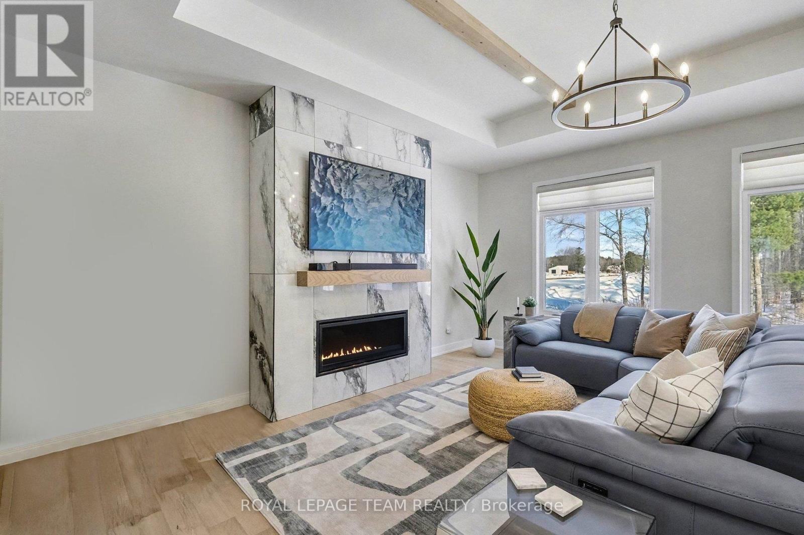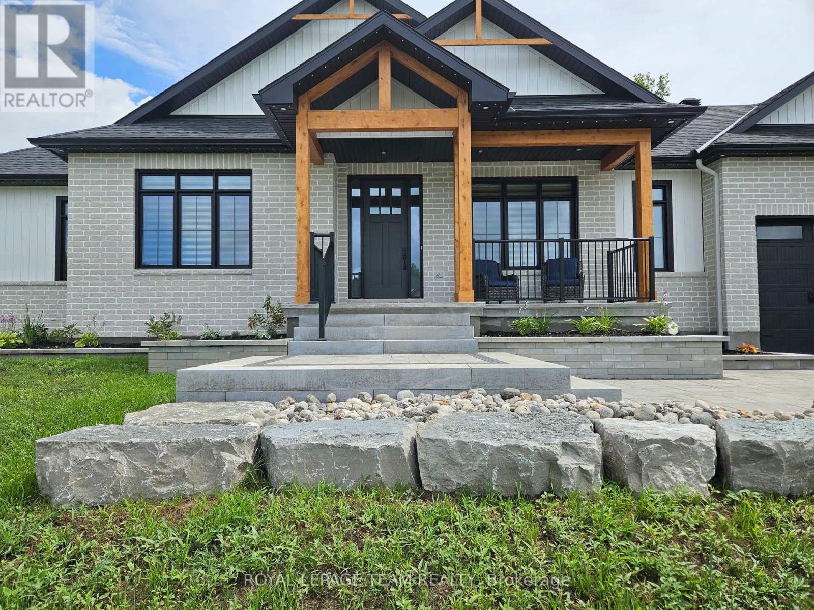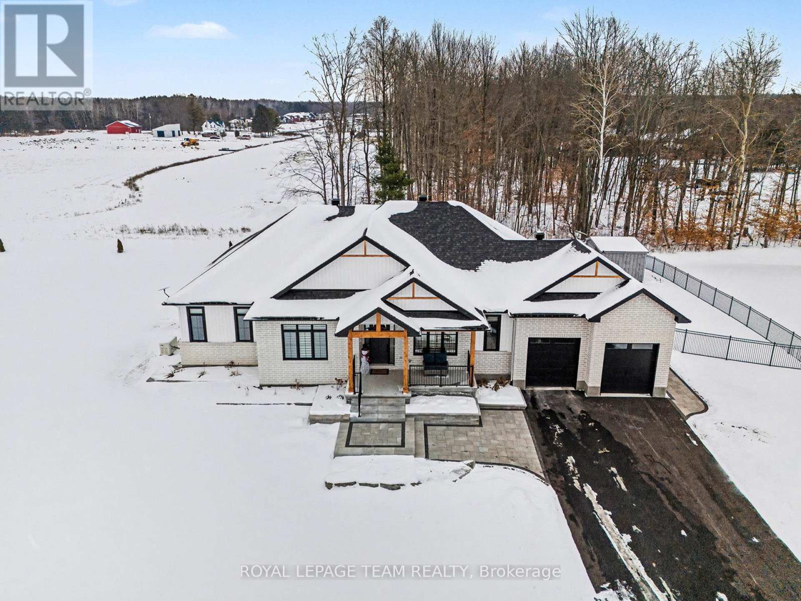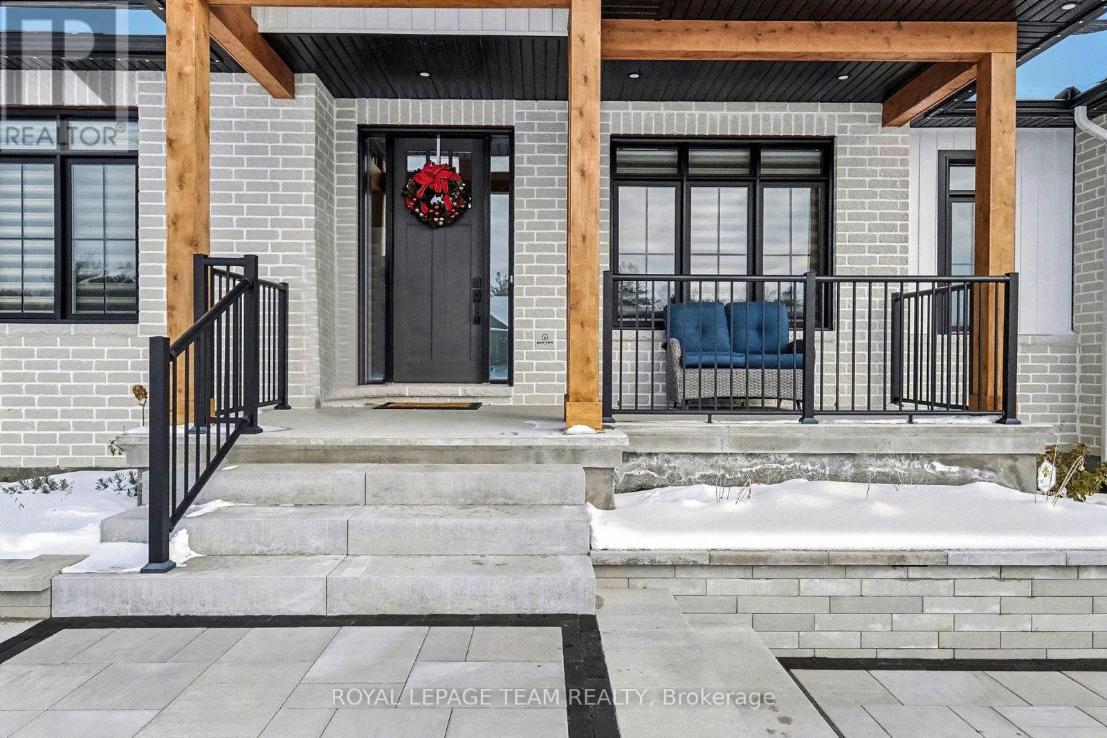 The Sussex in Silver Creek offers a private retreat on 3/4 acre in the peaceful community of Hallville. This turnkey, EnergyStar-certified home by ParkView Homes blends timeless style with modern function in a serene everyday setting. A paved laneway leads to a landscaped front yard with raised gardens and in-ground accent lighting. Inside, the open-concept design features tray ceilings, wide-plank engineered hardwood, and a striking gas fireplace anchoring the living room. The chef-inspired kitchen includes quartz counters, stylish backsplash, stainless steel appliances, large sink, ample storage, and an oversized island perfect for entertaining. A covered porch off the dining area extends living out doors. A mudroom with garage access and adjacent laundry adds efficiency, while a dedicated office or flex space suits work, study, or hobbies. The primary suite is a true retreat with a spa-like five-piece ensuite featuring a freestanding soaker tub, glass-enclosed shower, and a spacious walk-in closet. Two additional generous bedrooms share a nearby three-piece bath. The lower level offers hardwood flooring and a professionally installed 20' x 12' gym flooring area. Automatic Hunter Douglas blinds, a Generac backup system, and a water treatment system enhance comfort and peace of mind. Outside, the private backyard is designed for relaxation, featuring a large hot tub with lounger, lush greenery, apple, pear, and evergreen trees, perennial gardens, and rose bushes. Elegant wrought-iron fencing on three sides with chain-link along the tree line adds privacy. A professionally designed Amish-style shed with lean-to provides ample storage, complementing the attached two-car garage. Custom Gemstone permanent decorative lighting highlights the exterior, offering beauty and year-round curb appeal. This exceptional property delivers refined living, thoughtful design, and a tranquil country setting - truly a place to call home.