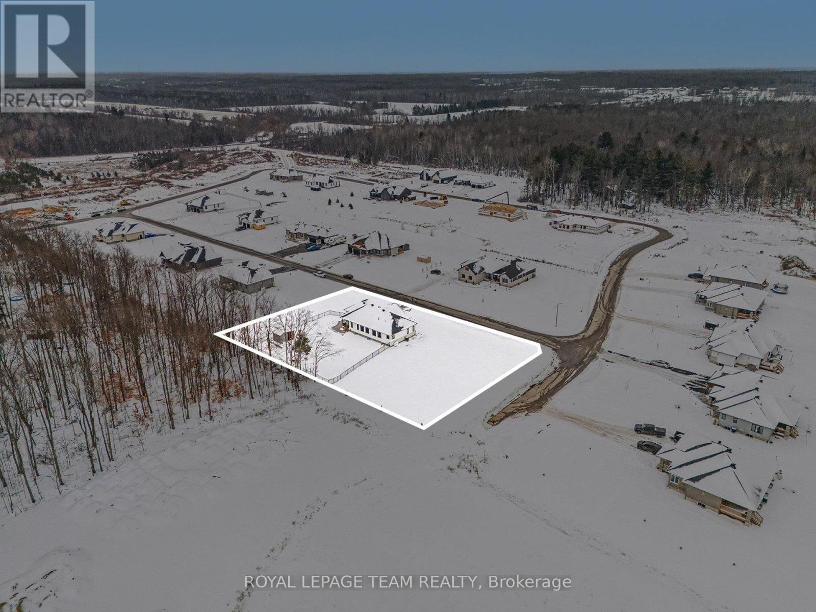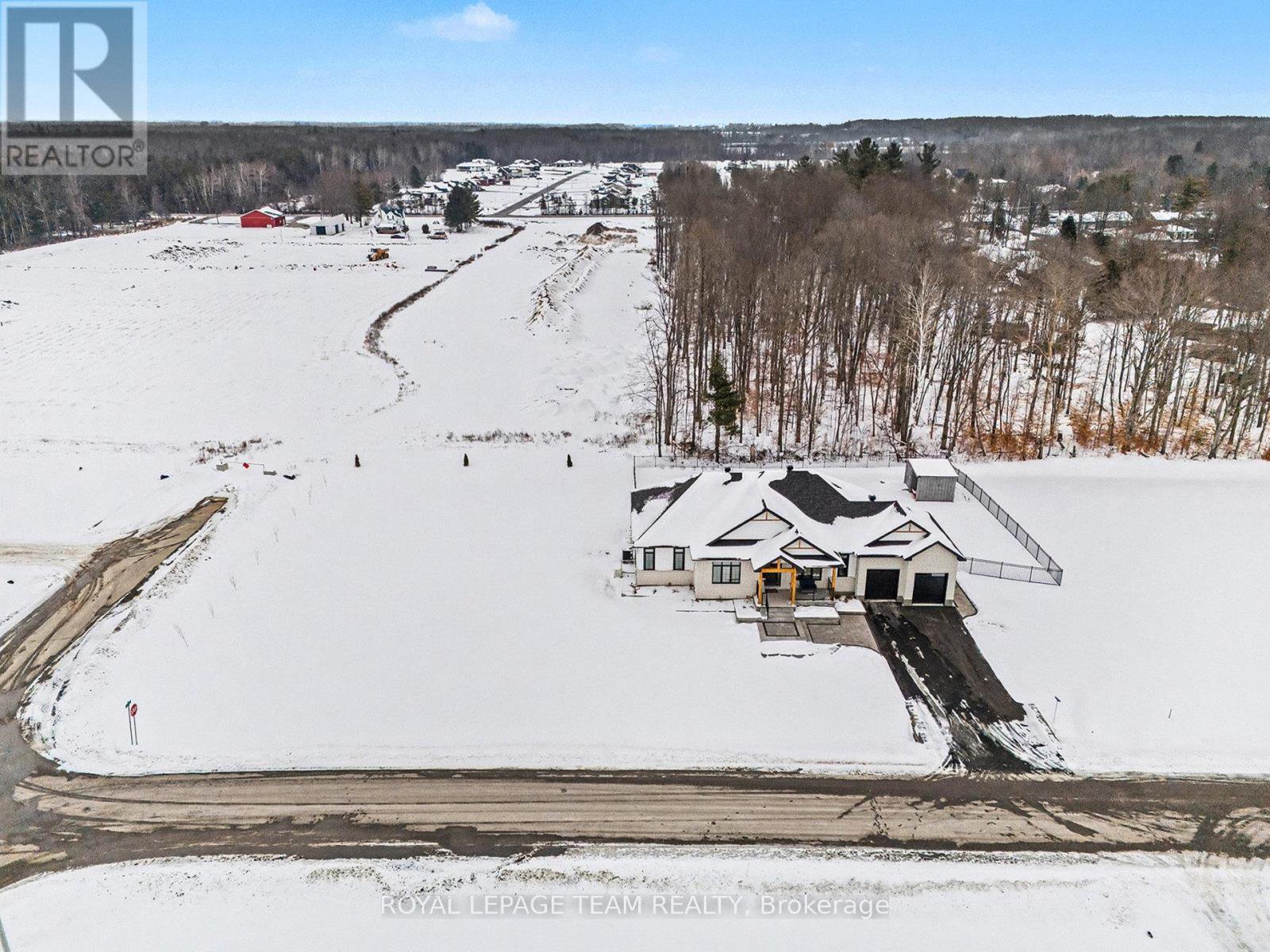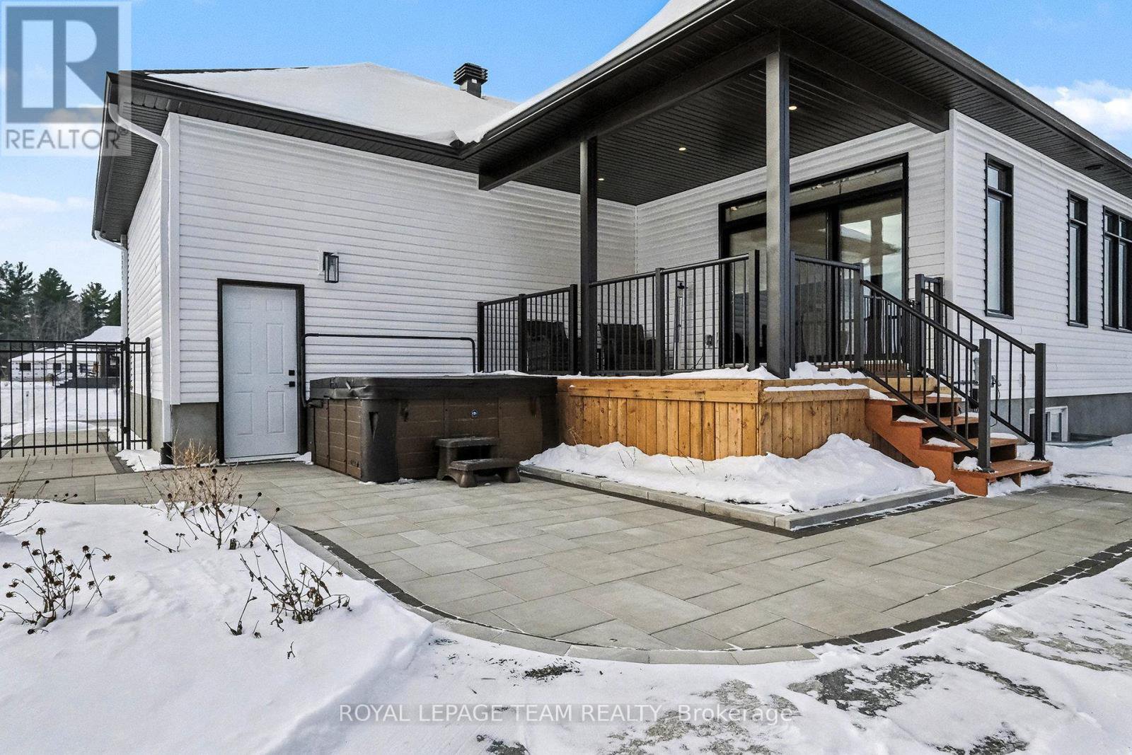 The Sussex in Silver Creek offers a private retreat on 3/4 acre in the peaceful community of Hallville. This turnkey, EnergyStar-certified home by ParkView Homes blends timeless style with modern function in a serene everyday setting. A paved laneway leads to a landscaped front yard with raised gardens and in-ground accent lighting. Inside, the open-concept design features tray ceilings, wide-plank engineered hardwood, and a striking gas fireplace anchoring the living room. The chef-inspired kitchen includes quartz counters, stylish backsplash, stainless steel appliances, large sink, ample storage, and an oversized island perfect for entertaining. A covered porch off the dining area extends living out doors. A mudroom with garage access and adjacent laundry adds efficiency, while a dedicated office or flex space suits work, study, or hobbies. The primary suite is a true retreat with a spa-like five-piece ensuite featuring a freestanding soaker tub, glass-enclosed shower, and a spacious walk-in closet. Two additional generous bedrooms share a nearby three-piece bath. The lower level offers hardwood flooring and a professionally installed 20' x 12' gym flooring area. Automatic Hunter Douglas blinds, a Generac backup system, and a water treatment system enhance comfort and peace of mind. Outside, the private backyard is designed for relaxation, featuring a large hot tub with lounger, lush greenery, apple, pear, and evergreen trees, perennial gardens, and rose bushes. Elegant wrought-iron fencing on three sides with chain-link along the tree line adds privacy. A professionally designed Amish-style shed with lean-to provides ample storage, complementing the attached two-car garage. Custom Gemstone permanent decorative lighting highlights the exterior, offering beauty and year-round curb appeal. This exceptional property delivers refined living, thoughtful design, and a tranquil country setting - truly a place to call home.