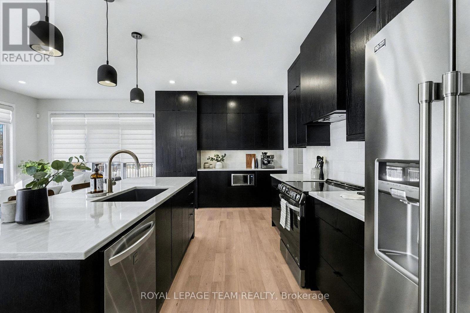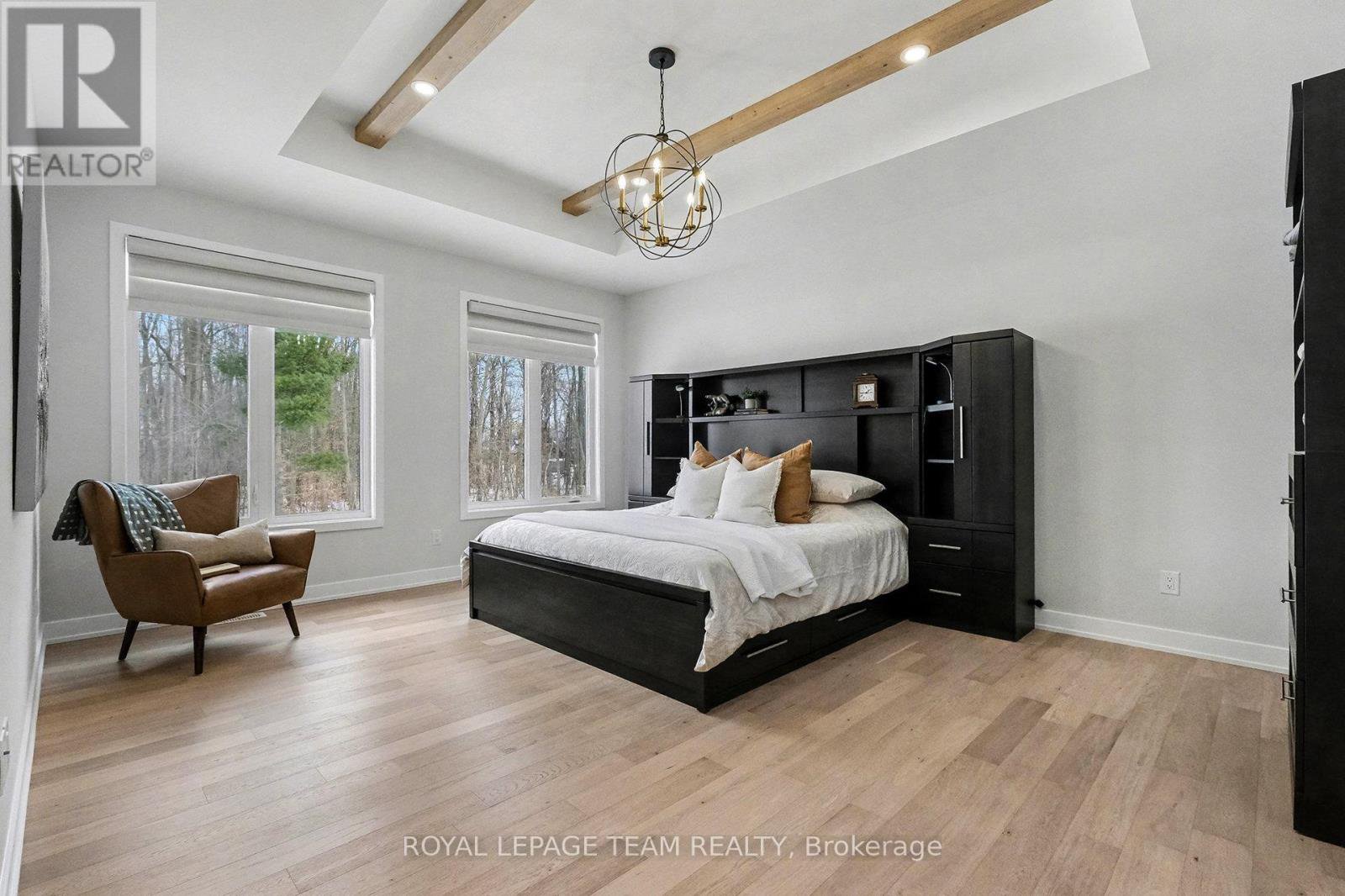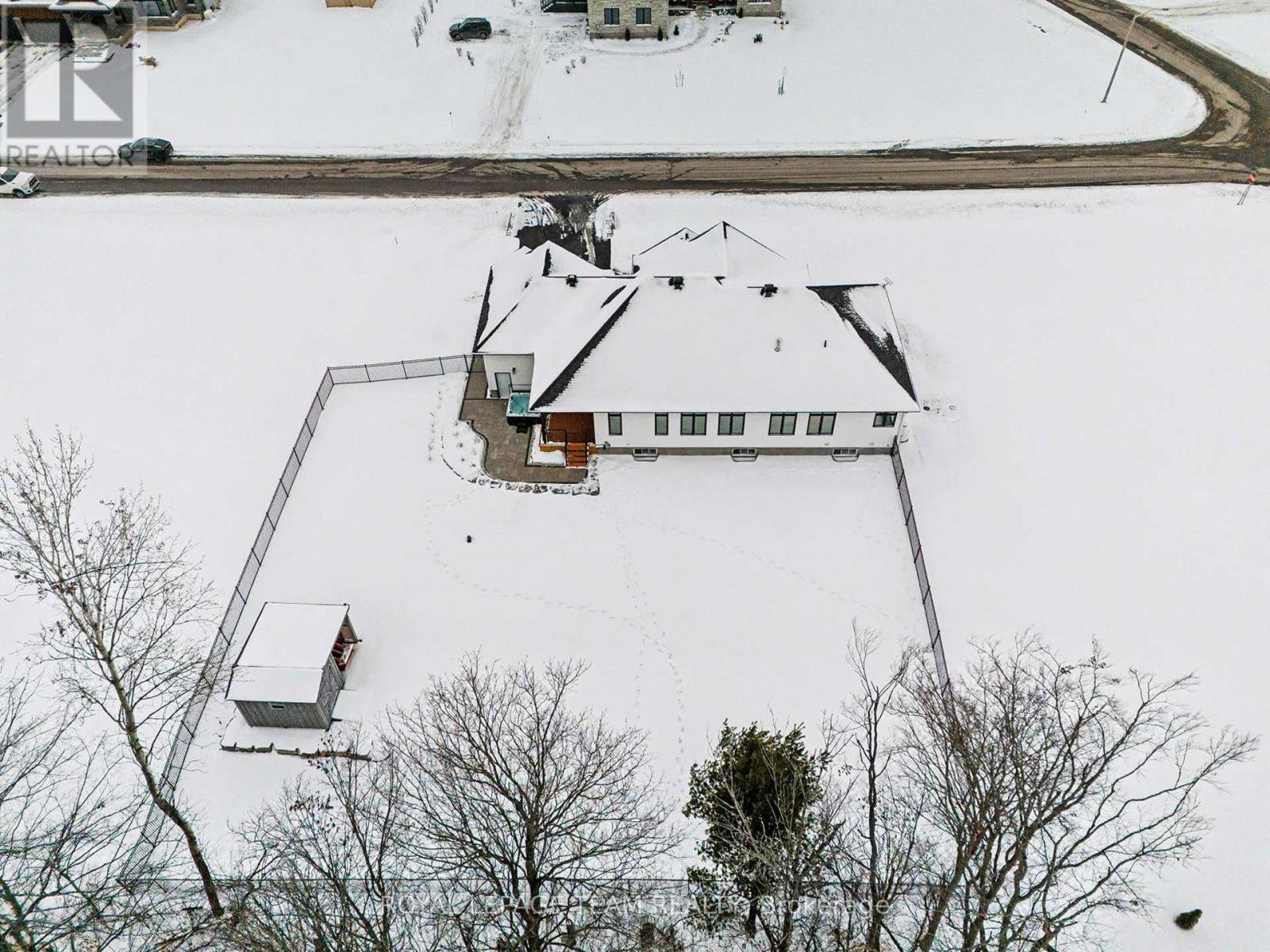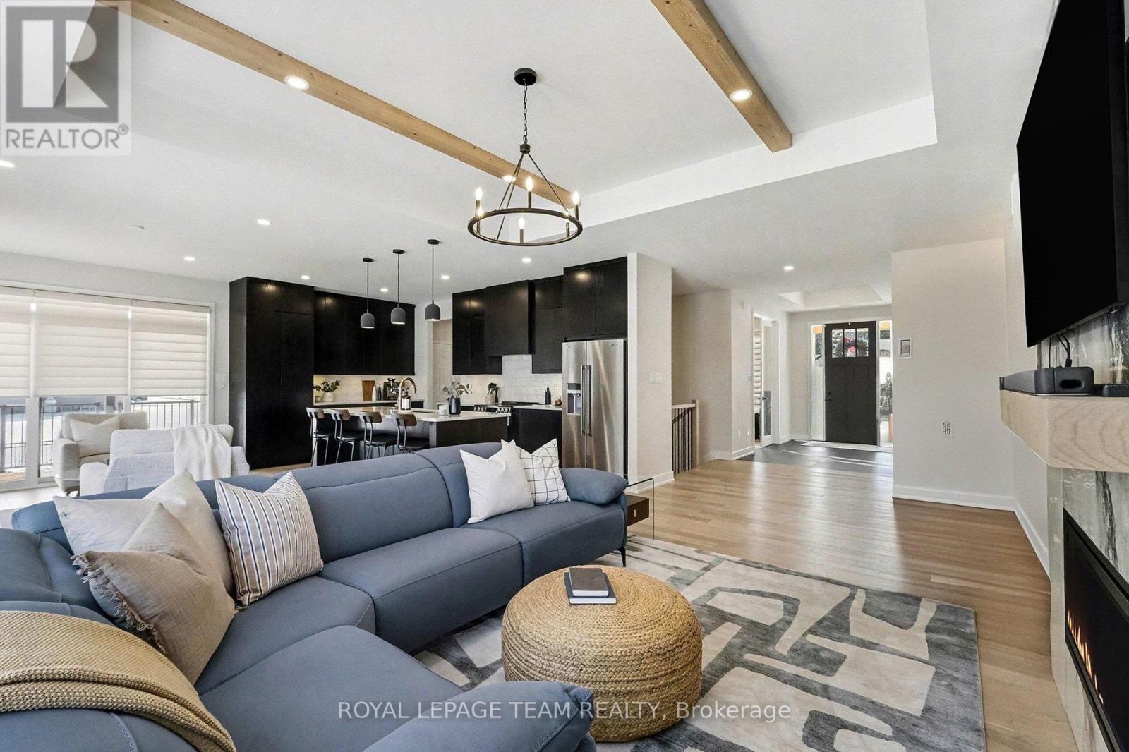 The Sussex in Silver Creek offers a private retreat on 3/4 acre in the peaceful community of Hallville. This turnkey, EnergyStar-certified home by ParkView Homes blends timeless style with modern function in a serene everyday setting. A paved laneway leads to a landscaped front yard with raised gardens and in-ground accent lighting. Inside, the open-concept design features tray ceilings, wide-plank engineered hardwood, and a striking gas fireplace anchoring the living room. The chef-inspired kitchen includes quartz counters, stylish backsplash, stainless steel appliances, large sink, ample storage, and an oversized island perfect for entertaining. A covered porch off the dining area extends living out doors. A mudroom with garage access and adjacent laundry adds efficiency, while a dedicated office or flex space suits work, study, or hobbies. The primary suite is a true retreat with a spa-like five-piece ensuite featuring a freestanding soaker tub, glass-enclosed shower, and a spacious walk-in closet. Two additional generous bedrooms share a nearby three-piece bath. The lower level offers hardwood flooring and a professionally installed 20' x 12' gym flooring area. Automatic Hunter Douglas blinds, a Generac backup system, and a water treatment system enhance comfort and peace of mind. Outside, the private backyard is designed for relaxation, featuring a large hot tub with lounger, lush greenery, apple, pear, and evergreen trees, perennial gardens, and rose bushes. Elegant wrought-iron fencing on three sides with chain-link along the tree line adds privacy. A professionally designed Amish-style shed with lean-to provides ample storage, complementing the attached two-car garage. Custom Gemstone permanent decorative lighting highlights the exterior, offering beauty and year-round curb appeal. This exceptional property delivers refined living, thoughtful design, and a tranquil country setting - truly a place to call home.