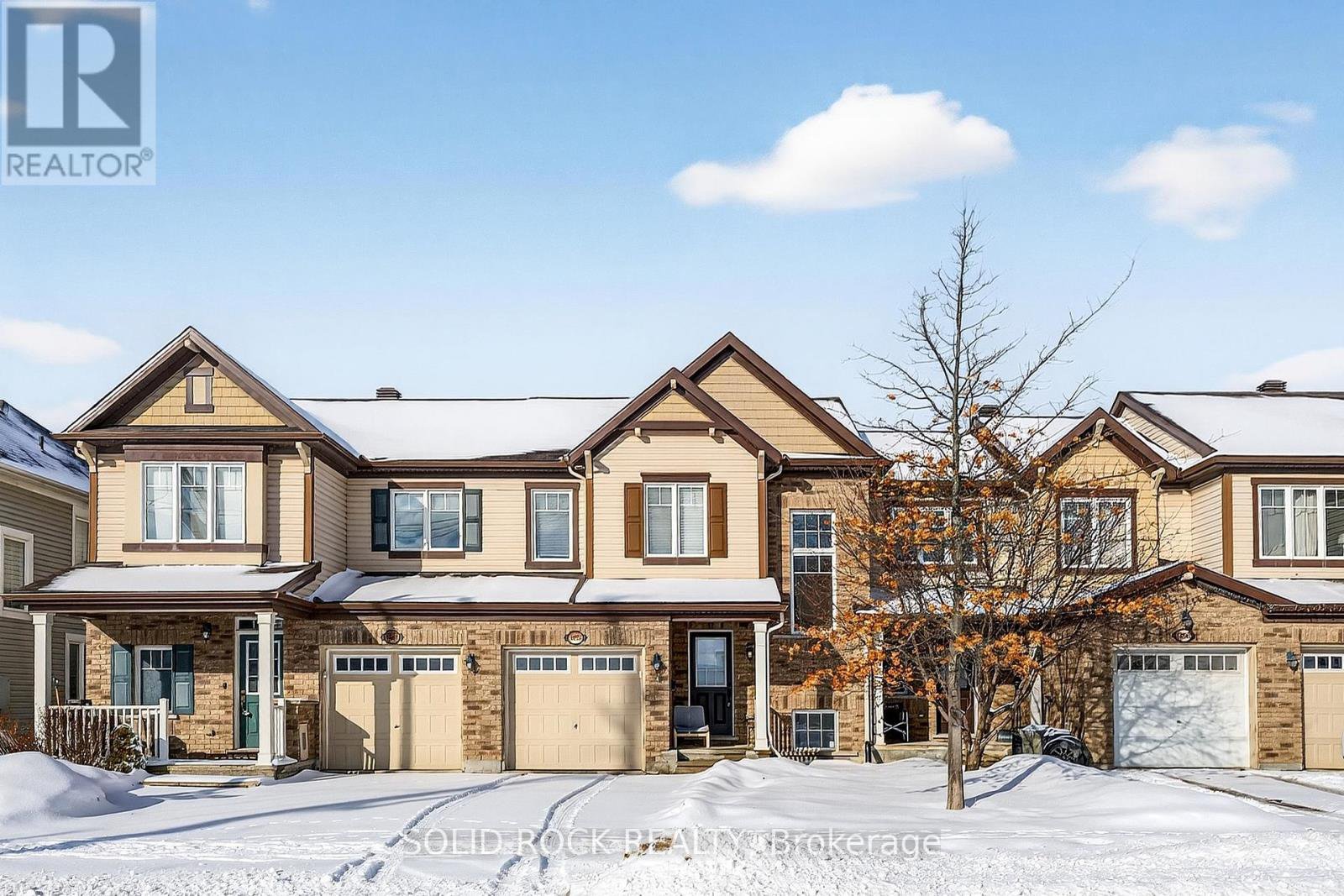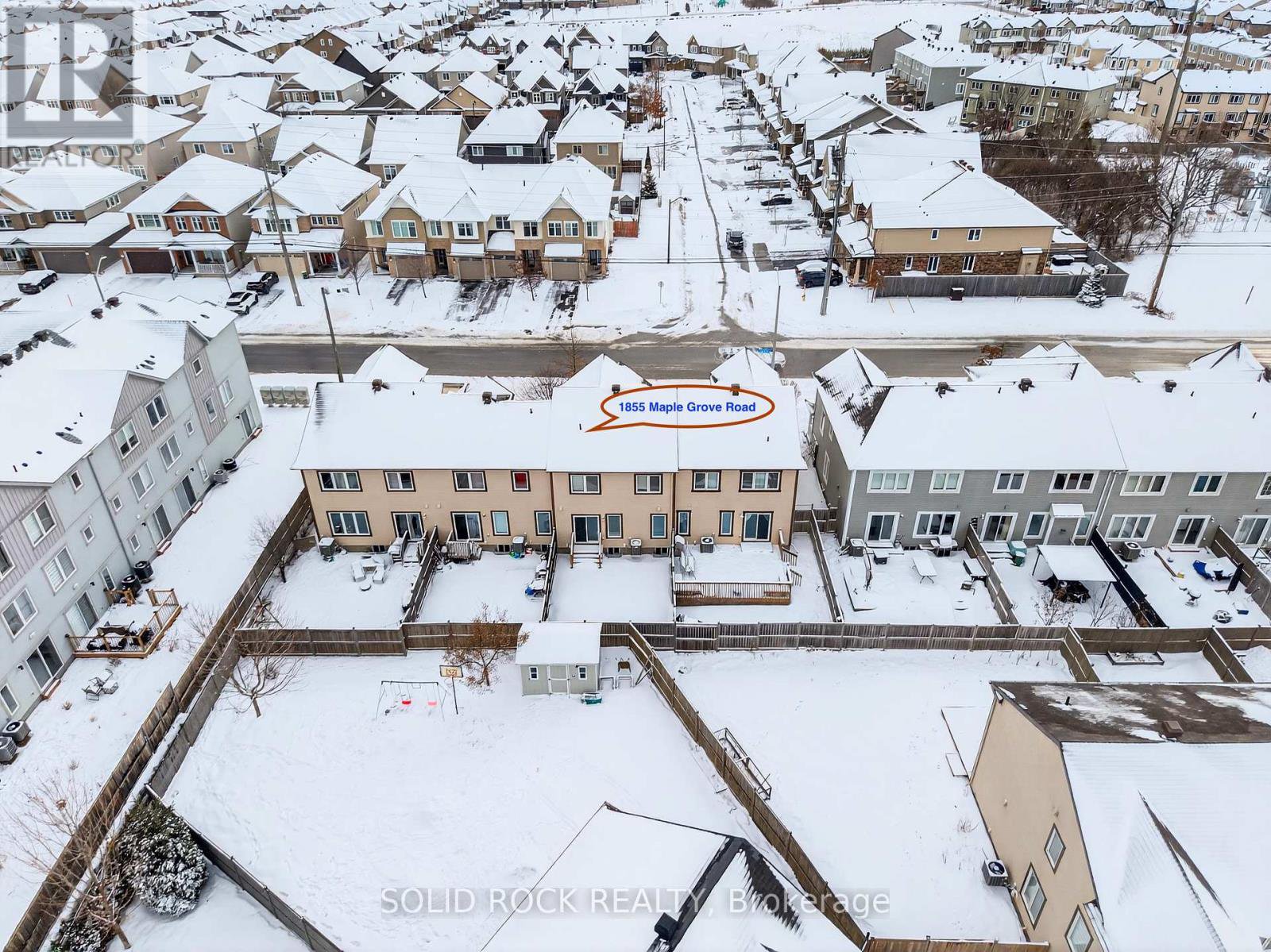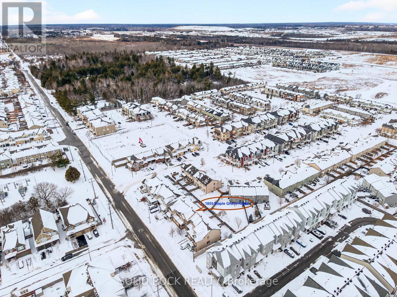 Welcome to this meticulously maintained and immaculate townhome, perfectly positioned at the quiet end of Maple Grove Road. A WIDENED driveway accommodates an ADDITIONAL vehicle, and a bright and airy open-concept layout is filled with NATURAL LIGHT. The main floor features modern, durable flooring (2021), while carpet upstairs adds warmth and comfort. The spacious main bathroom boasts a big window, a great-sized 2 bedrooms, and a master bedroom with walk-in closet & an ensuite with glass shower. Fully finished lower level with 2 large windows, carpeted flooring 2021, square-shaped family Room, rough in for a 4th bathroom, laundry area & lots of storage space. The backyard is fully fenced and maintenance-free with patio stones, deck, and artificial grass. Enjoy a private oasis: the yard backs onto a pie-shaped lot, so no direct rear neighbor overlooks you. You'll appreciate the wild views and rare sense of privacy. Located just steps to Maple Grove Trails, a huge park with splash pad, and minutes from Costco, Canadian Tire Centre, Tanger Outlets, Bell Sensplex, future LRT, and highway access. Families will love the top-ranked Holy Trinity Catholic High School. This home offers the ideal balance between space, privacy, and convenience.