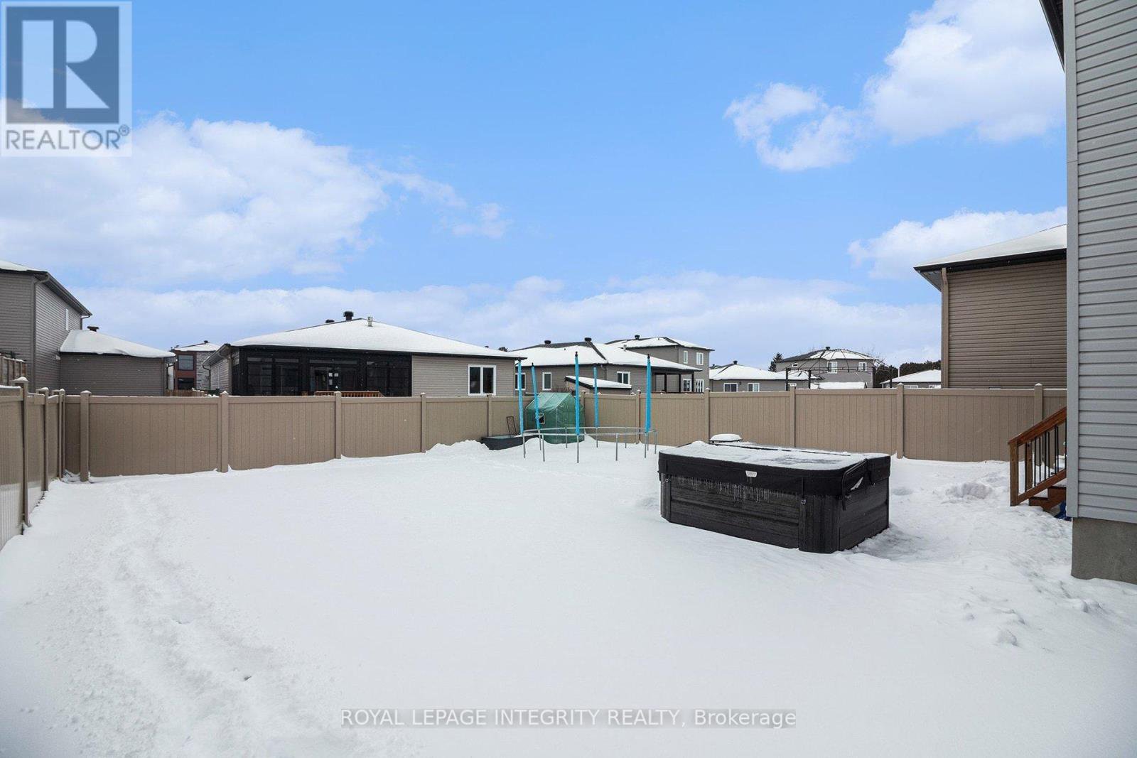 Welcome to this bright and welcoming 2020-built 3+1 bedroom 2.5 bathroom 2-storey detached home located in Crysler, a quiet child-friendly neighborhood just 40 minutes from downtown Ottawa. Filled with natural light, this home with great curb appeal offers a warm, comfortable space where a family can truly settle in. The heart of the home is an open concept spacious kitchen with a large quartz island and breakfast bar, perfect for busy mornings, family meals, and homework time while dinner is being prepared. The main floor also boasts 9 foot ceilings, a large living room with pot lights, a dining room with patio doors leading to the backyard deck, a sizable laundry room and a powder room. Durable laminate flooring runs throughout all three levels, with ceramic tile in the kitchen, bathrooms, entryway, laundry room, and mudroom-designed for easy cleanup and everyday family life, with no carpet anywhere. The second level offers a spacious primary bedroom with a walk-in closet and a 4-piece ensuite bathroom. The other 2 bedrooms are also generous in size, with another 4-piece full bathroom. The basement adds valuable extra living space, including a bedroom, a large rec room, storage room and a rough-in for an extra bathroom. Step outside and enjoy a huge fenced-in backyard featuring a hot tub, perfect for relaxing after long work days. This home is perfectly situated for families, only a 5-minute walk to the local park and French elementary school, with walking trails nearby for outdoor adventures. Set in a safe, growing community offering year-round family activities such as festivals, sports leagues, and community events, all while being only 10-15 minutes from Embrun and Casselman for everyday amenities.