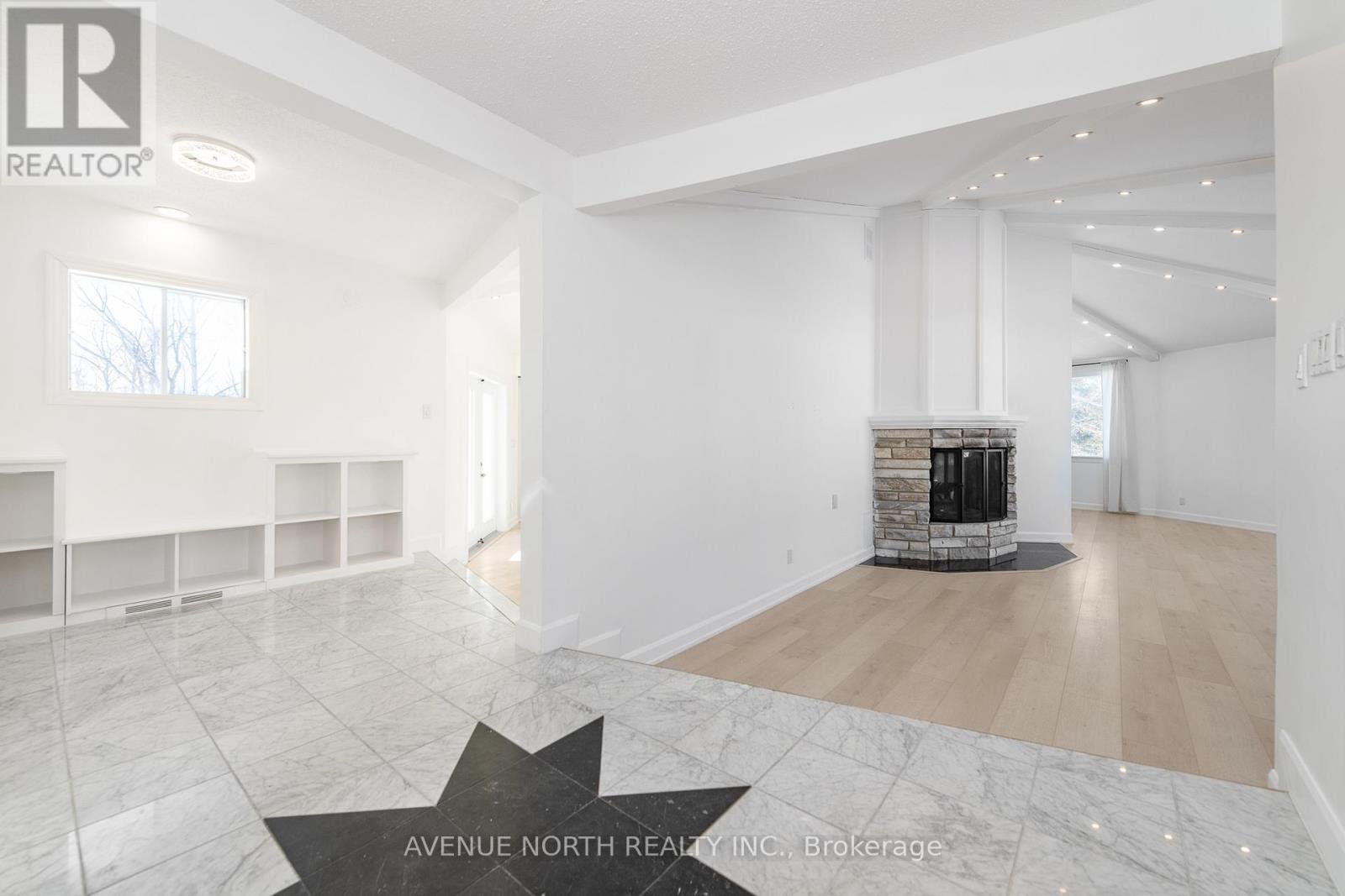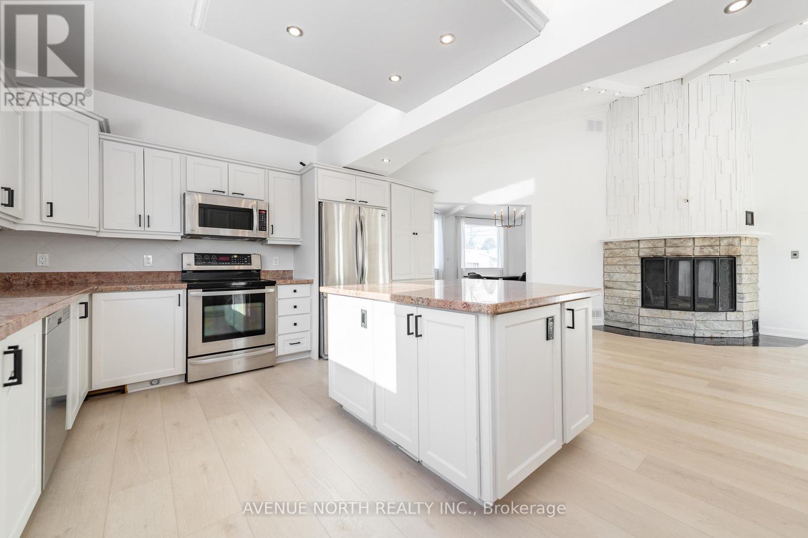 Exceptional custom-designed bungalow on Bank Street showcasing luxury, functionality, and privacy on a beautifully landscaped 1.07-acre lot. This 3 bed, 4 bath home features a unique circular layout filled with natural light, connecting the living, dining, and kitchen areas around a striking granite-accented fireplace. The chef's kitchen offers stainless steel appliances, granite countertops, and solid wood cabinetry. The primary suite includes a custom walk-in closet and a spa-like ensuite with a soaker tub, glass shower, and double vanity. Heated bathroom floors, main-floor laundry, and large secondary bedrooms add comfort. The basement with separate entrance and plumbing rough-ins offers potential for a secondary suite. Landscaped grounds, composite deck, and ample parking complete the package. Updates: Water Pump, Tankless Water Heater (2025), Kitchen, Painting, LVF Flooring, Eavestroughs, Trim, Landscaping, Grading, Security, Furnace Blower Fan, Dryer (2024), Roof (2015), Bathrooms (2018), Primary Suite and Custom Closet (2019), Deck, Windows, Furnace (2022). Septic original.