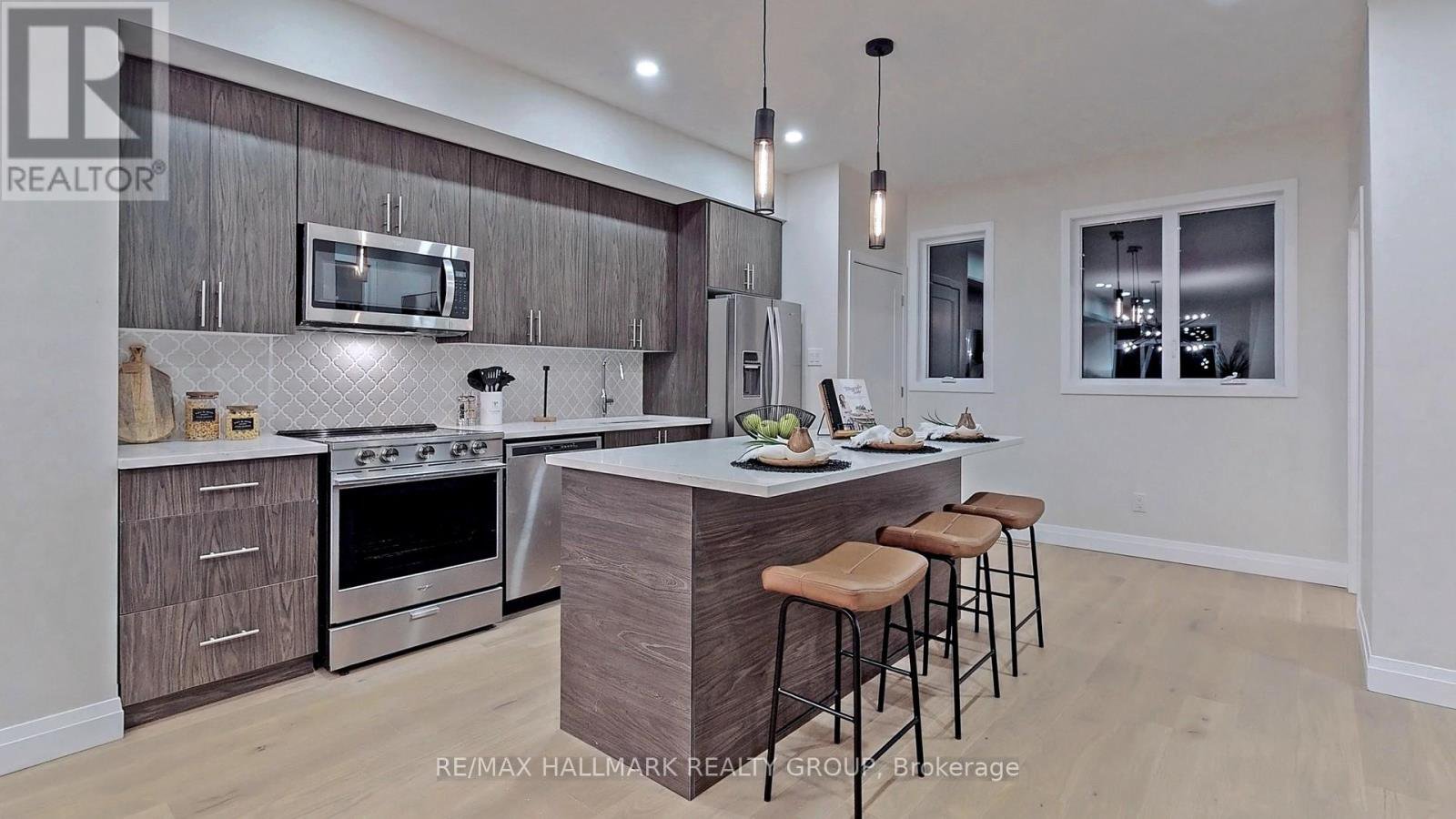 Experience the perfect blend of modern sophistication & urban convenience at 809 Star Private, an executive freehold end-unit townhome that offers the privacy of a semi-detached & the sleek finishes of a contemporary build. Tucked away on a quiet dead-end street in a mature Ottawa community, this 1,804 sq. ft. residence is flooded with natural light thanks to the additional windows exclusive to its premium end-unit position. The interior is defined by a carpet-free, open-concept layout featuring smooth ceilings & a chef-inspired kitchen anchored by a massive island-ideal for hosting & daily life. The living/dining area flows seamlessly to a private balcony, while the grassed backyard provides a peaceful outdoor retreat. The layout is exceptionally versatile, highlighted by a ground-floor bedroom with its own ensuite bath & walk-out access, making it the ultimate flex space for a home office, gym, or private guest suite. Upstairs, the spacious primary sanctuary is complemented by two additional bright bedrooms, ensuring plenty of room for a growing family or professional lifestyle. Beyond the home, you are steps from Farm Boy, Starbucks, T&T Supermarket & local pubs, placing every convenience at your doorstep. This provides unmatched flexibility to adjust to market conditions in the future. If you are looking for a stylish, low-maintenance primary residence 809 Star Private delivers on every level. End units with this combination of floor plan flexibility, premium location, and investment potential are a rare find in today's market. Book your private showing today. Floor Plans are attached. Association Fee covers maintenance of Star Private and the perimeter fence.