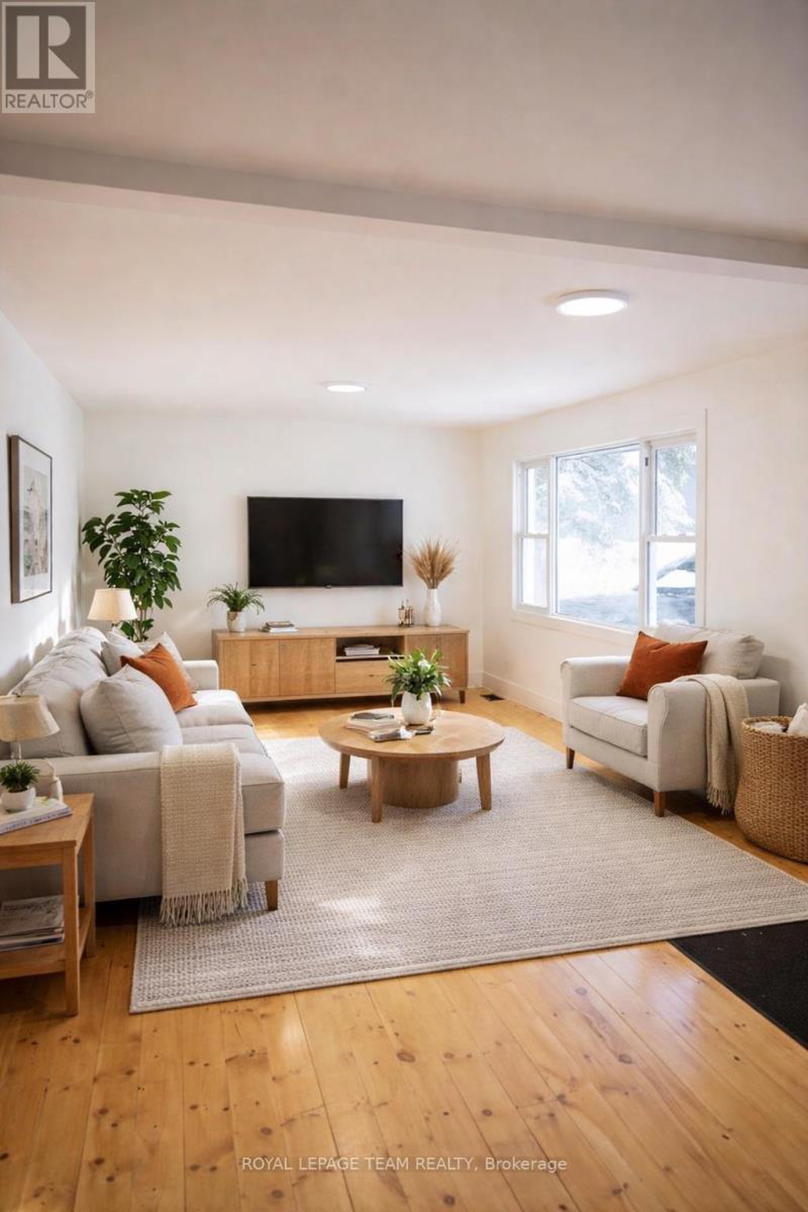 Welcome to this charming split-level bungalow in the heart of Kemptville an ideal starter home, downsize opportunity, or investment property with low-maintenance living throughout.Thoughtfully updated and move-in ready, the home features a bright open-concept living and kitchen area perfect for entertaining, two spacious ground-floor bedrooms, and a raised primary bedroom offering a private retreat with a walkout to the backyard. The basement provides a small storage area along with a crawl space recently relined with a vapor barrier, while outside a long private driveway leads to a quiet courtyard-style patio ideal for a gazebo and relaxed outdoor living. Extensive upgrades offer peace of mind, including new shingles (2022), spray-foamed attic topped with blown-in insulation (2022), updated bathroom (2022), furnace, A/C and water heater (all 2022), siding with 1.5" Isofoil insulation (2024), new eavestroughs and downspouts (2025), refinished floors (2025), and smoothed ceilings with updated drywall, doors, and baseboards (2025).