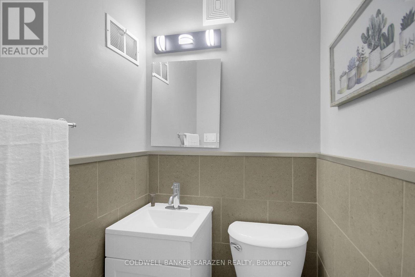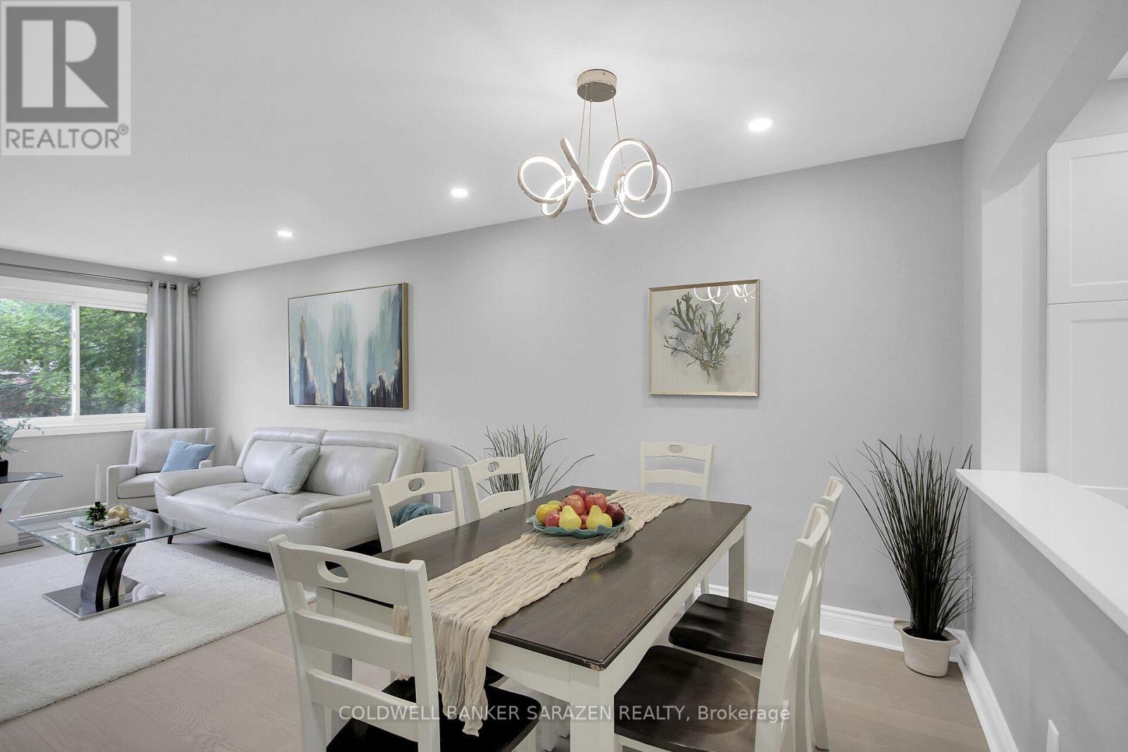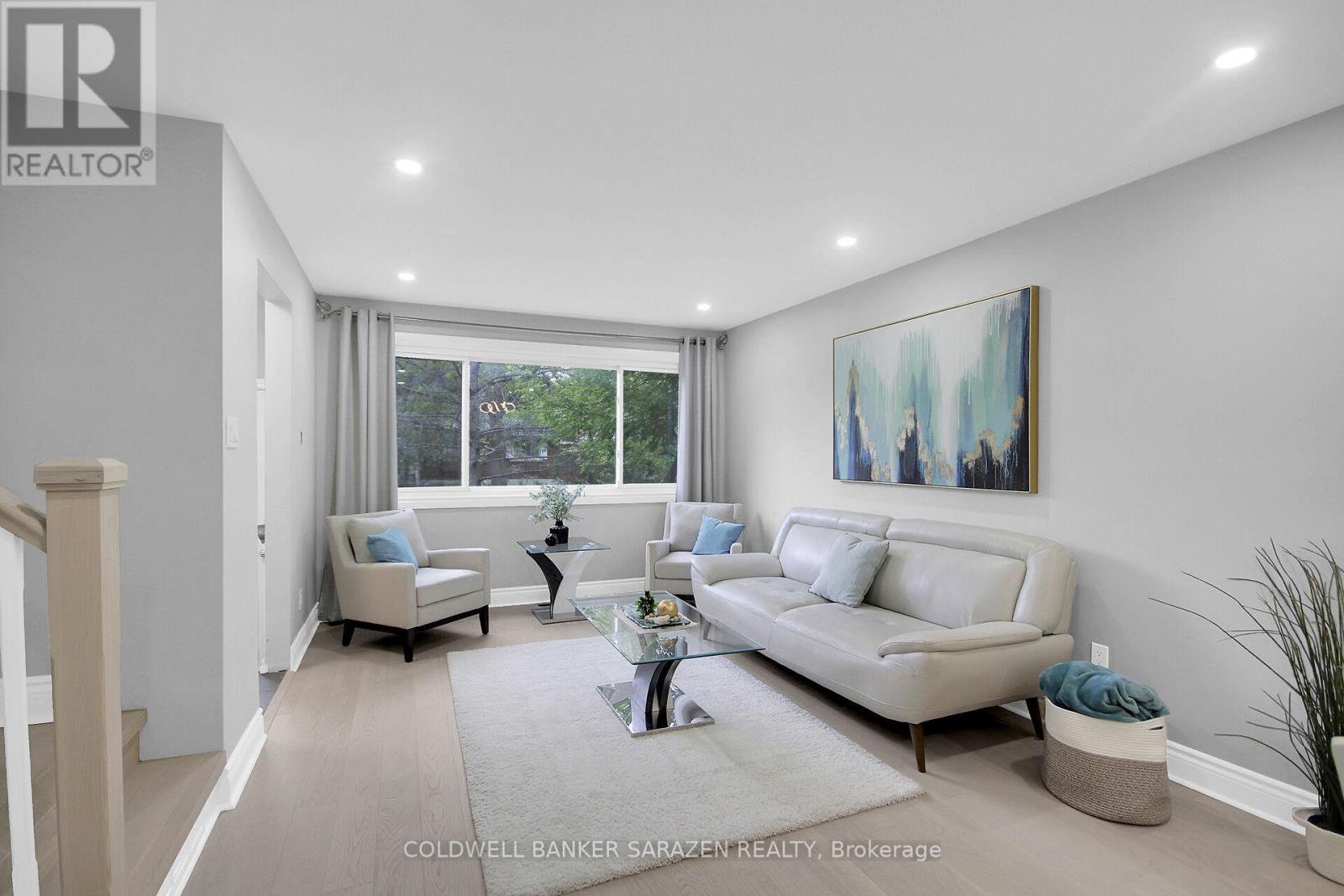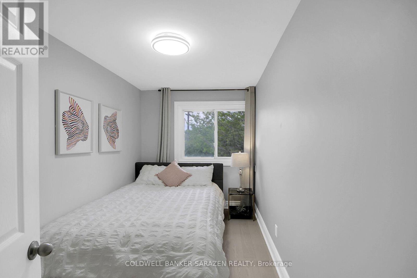 This completely renovated townhome offers modern comfort and style across all levels including a fully finished basement. From top to bottom, no detail has been overlooked. The main floor features a bright, open-concept living and dining area with gleaming new hardwood floors. The stylish kitchen is a chefs delight, boasting refinished cabinetry, brand new quartz countertops, a new backsplash, new ceramic tile flooring, and brand new appliances. Elegant hardwood stairs lead to both the second floor and the basement. Upstairs, you'll find three generously sized bedrooms and a fully updated bathroom with new ceramic tile and a sleek, modern vanity. The lower level offers a spacious, newly finished recreation room with durable new laminate flooring -- ideal as a media room, home office, gym, or play area. Plenty of new recessed lighting throughout adds warmth and style, along with many other thoughtful upgrades. Step outside to enjoy a private back deck -- perfect for summer evenings and two convenient outdoor parking spaces. Located just minutes from downtown, with easy access to Hwy 417, and close to parks, shops, and cafes, this move-in ready home delivers the perfect blend of location, comfort, and lifestyle style.