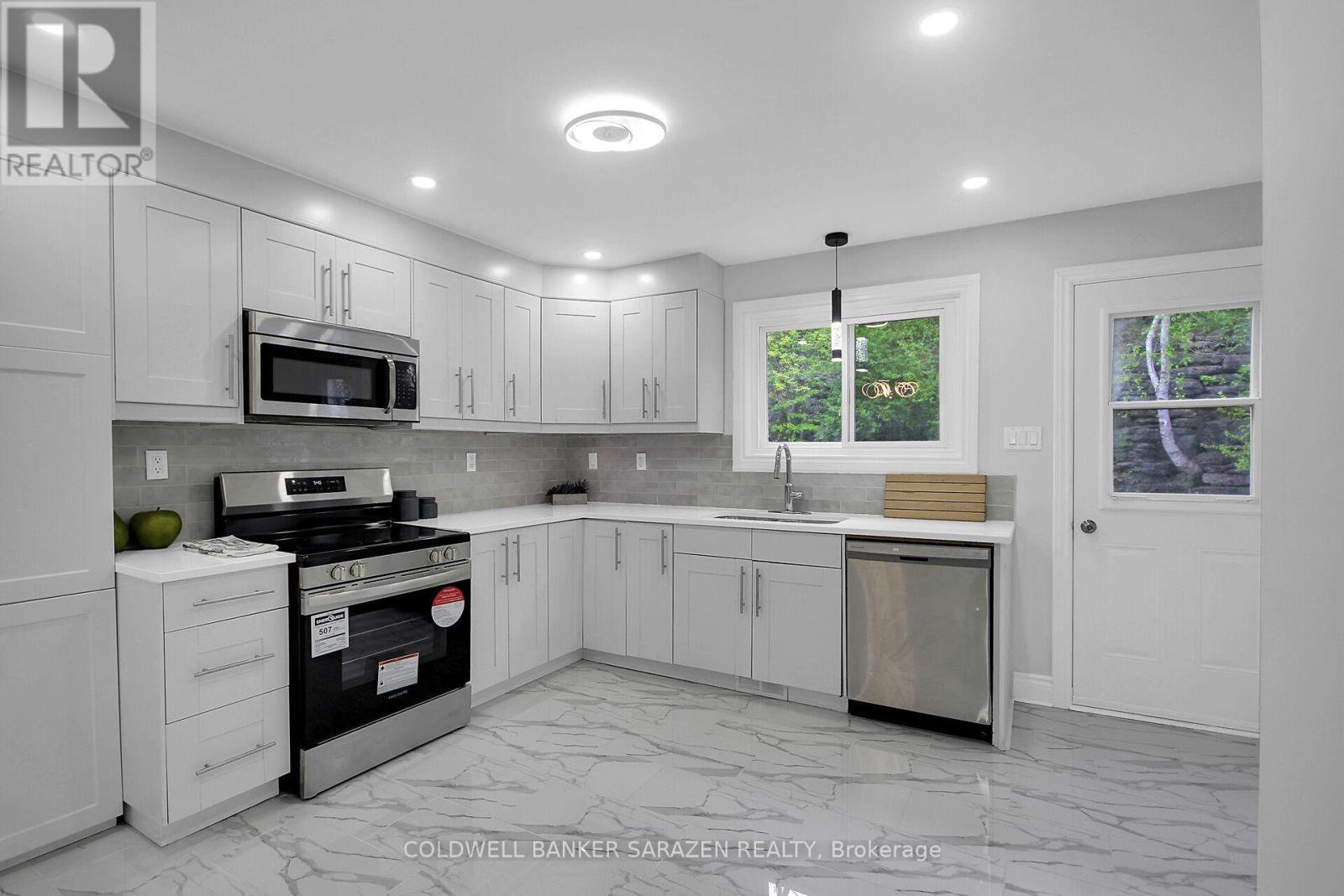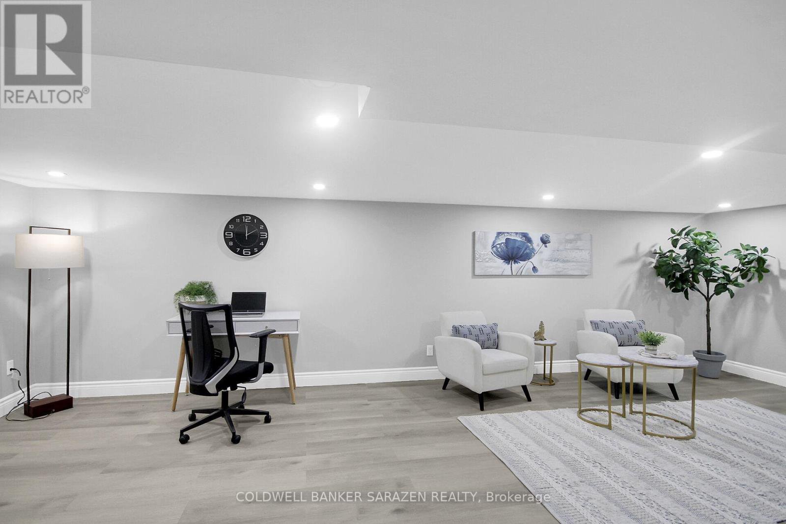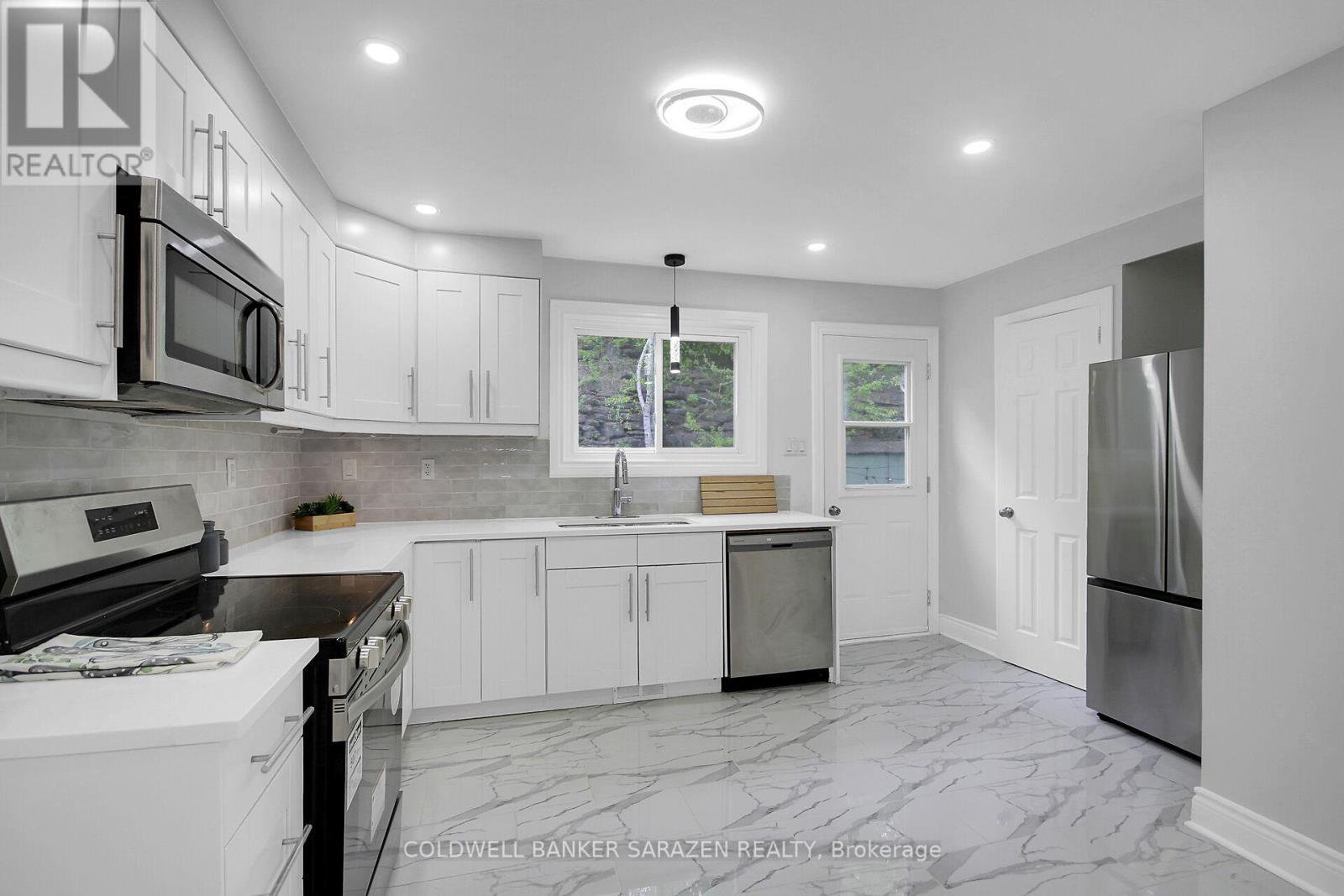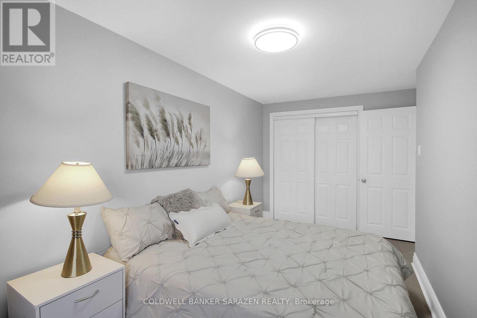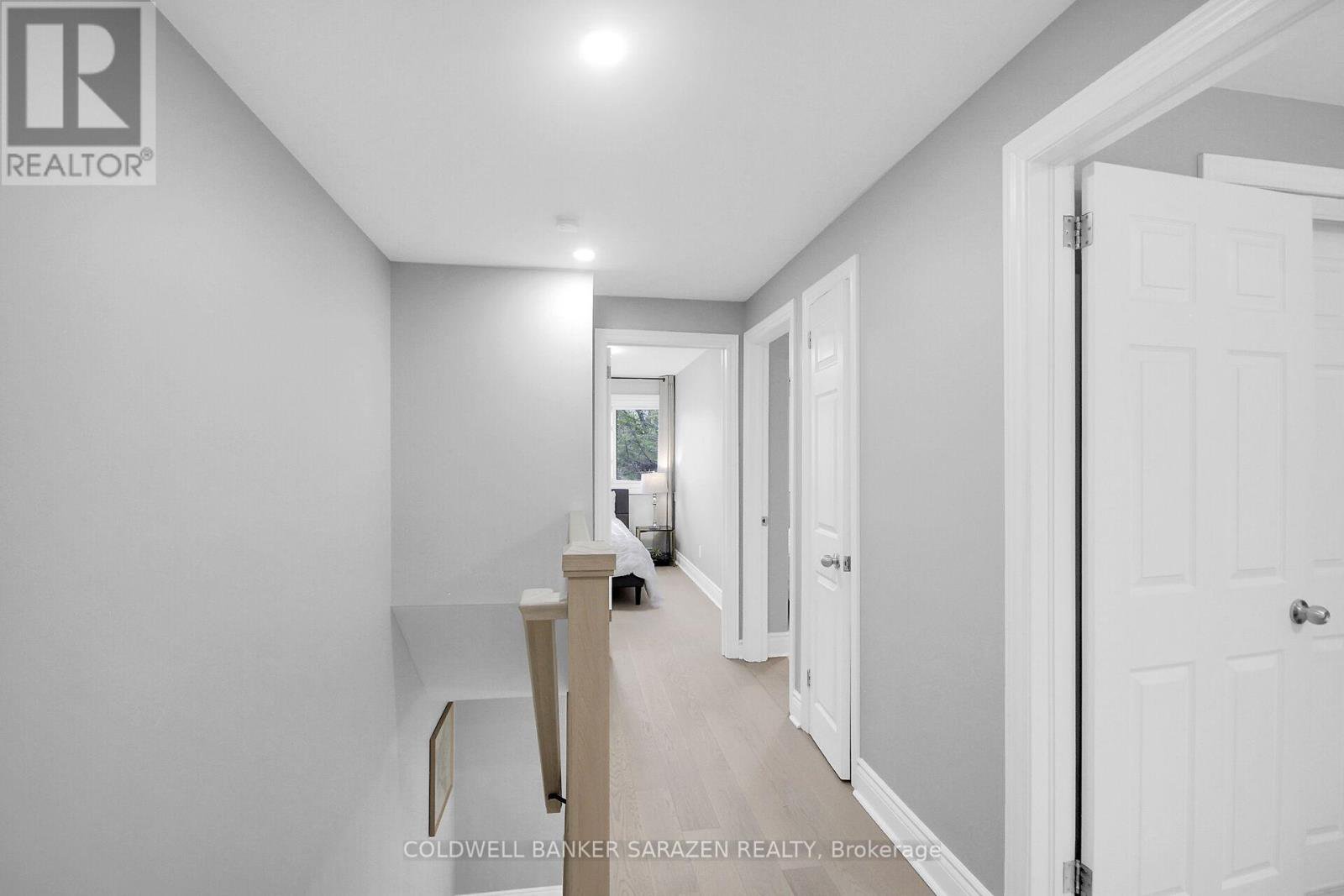 This completely renovated townhome offers modern comfort and style across all levels including a fully finished basement. From top to bottom, no detail has been overlooked. The main floor features a bright, open-concept living and dining area with gleaming new hardwood floors. The stylish kitchen is a chefs delight, boasting refinished cabinetry, brand new quartz countertops, a new backsplash, new ceramic tile flooring, and brand new appliances. Elegant hardwood stairs lead to both the second floor and the basement. Upstairs, you'll find three generously sized bedrooms and a fully updated bathroom with new ceramic tile and a sleek, modern vanity. The lower level offers a spacious, newly finished recreation room with durable new laminate flooring -- ideal as a media room, home office, gym, or play area. Plenty of new recessed lighting throughout adds warmth and style, along with many other thoughtful upgrades. Step outside to enjoy a private back deck -- perfect for summer evenings and two convenient outdoor parking spaces. Located just minutes from downtown, with easy access to Hwy 417, and close to parks, shops, and cafes, this move-in ready home delivers the perfect blend of location, comfort, and lifestyle style.
