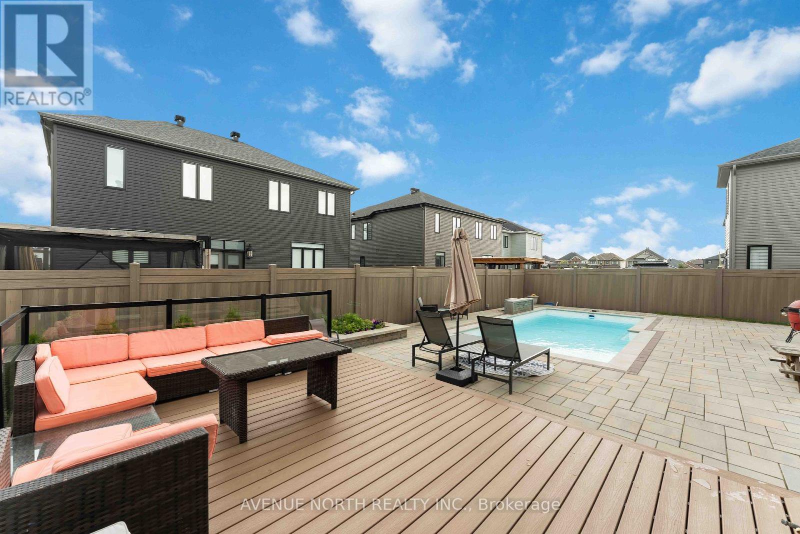 Exceptional Minto Elderberry II model in the prestigious Mahogany community of Manotick. Situated on a generous 62' x 95' lot, this beautifully upgraded home offers over 4,000 sq ft of finished living space, complete with 5+1 bedrooms, 5 bathrooms and a rare 3-car garage w/ an extended driveway. Inside, the main level impresses with 9-ft ceilings, hardwood flooring, pot lights and a reimagined staircase that sets the tone for modern elegance. A versatile home office, main-floor bedroom and a custom mudroom w/ built-in cabinetry enhance daily functionality. The kitchen features quartz countertops, a waterfall island, tiled backsplash, walk-in pantry, upgraded cabinetry, pots & pans drawers and smart stainless-steel appliances, perfect for both everyday living and entertaining. Upstairs, you'll find 4 spacious bedrooms, all with walk-in closets & 9-ft ceilings. The primary suite boasts dual walk-in closets and a luxurious 5-piece ensuite. A second bedroom enjoys its own private ensuite, while the remaining two share a stylish Jack & Jill bathroom. The convenient second-floor laundry room includes upgraded sound insulation for added peace and quiet. All bathrooms throughout the home have been completely renovated with floor-to-ceiling tile, premium fixtures, and contemporary finishes. The professionally finished lower level adds even more versatility, featuring Control4 smart home technology, built-in speakers, a wet bar, playroom, gym, a spa-inspired bathroom, and a guest bedroom, ideal for hosting or multigenerational living. Step outside to your own private backyard oasis, fully fenced & landscaped for low-maintenance enjoyment. Features a fiberglass pool w/ waterfall feature, composite decking w/ glass railings, and interlock stone throughout the driveway & grand front entryway. This is a rare opportunity to own a stunning home that blends elegant design, modern technology & vibrant outdoor living in one of Manotick's most desirable neighborhoods.