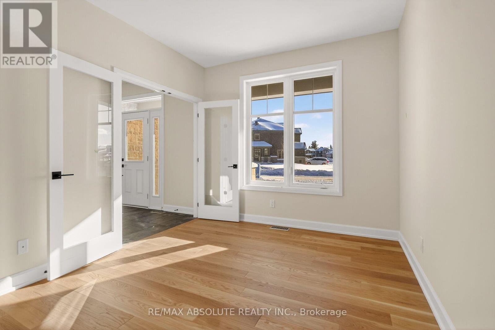 Welcome to the brand-new, never-lived-in Amelia model by EQ Homes, offering 2 bedrooms plus a versatile den, 2 full bathrooms, and a thoughtfully designed open-concept layout. A grand foyer with striking onyx tile welcomes you inside and leads to a front room ideal for a home office or den, with elegant French doors opening into the main living space. Soaring 11-foot ceilings enhance the bright living and dining areas, where the dining room overlooks the backyard and the show-stopping living room features a wall of windows and a stunning stone fireplace as the centrepiece mantle. The chef-inspired kitchen is anchored by a large island, perfect for everyday living and entertaining. The private primary bedroom is tucked away and offers a luxurious 5-piece ensuite with a separate soaker tub, glass shower, water closet, his-and-hers vanities, and a walk-in closet with built-in shelving. Hardwood flooring flows throughout the main level, complemented by a conveniently located laundry room with utility sink and direct access to the large double-car garage. The basement features a finished and spacious rec room and includes a bathroom rough-in, offering excellent future potential. All of this is set within a growing, family-friendly community of Equinelle's that features parks, trails, recreation facilities, scenic green space, and everyday amenities.