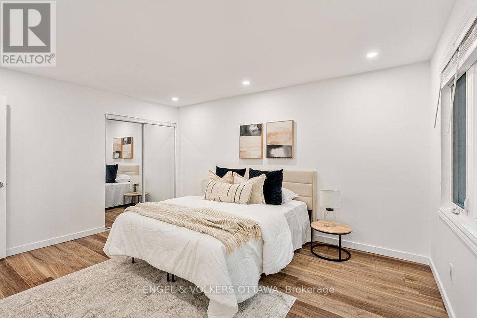 Renovated semi-detached tucked away on a private cul-de-sac. Located just 4 minutes to Mooney's Bay Beach and 19 minutes to downtown Ottawa! Offering 4 bedrooms upstairs, 2.5 bathrooms and a finished basement with garage access into the house. As you step inside you are greeted with high ceilings in the foyer with large windows and upgraded lighting. The 22' living room offers tons of space for hosting friends and family this holiday season. The kitchen has been tastefully renovated with all white cabinets, custom built ins, white quartz countertops and Brand New LG stainless steel appliances (2025). There is also a large breakfast bar and a separate built in for a coffee station or wine bar. Upstairs offers a spacious primary bedroom with 3-piece en-suite bath, along with 3 additional bedrooms for guests, kids rooms or a home office set up. The second bathroom is central and offers an upgraded glass shower and upstairs laundry (LG Washer/Dryer 2025). The finished basement makes for a great bonus rec room. Tons of storage located in the basement and garage. Fenced in backyard with a large deck. Quiet community located on a cul-de-sac and Ernie Calcutt Park at the end of the street. Perfect for pet owners or those who want to live close to recreation while being in close proximity to downtown amenities. Full house renovation includes: All bathrooms, kitchen, flooring and lighting (2025). Brand New Roof with 50 Year Shingles (Dec 2025), Blinds on all Windows (2025), A/C (2018), Furnace (2022), HWT (2021). Operates like a freehold property on a private road, but registered as a condo. LOW MAINTENANCE FEES - $135/MONTH (Includes snow removal, garbage pick up and road maintenance). OPEN HOUSE SUNDAY, FEBRUARY 1ST FROM 2-4PM!