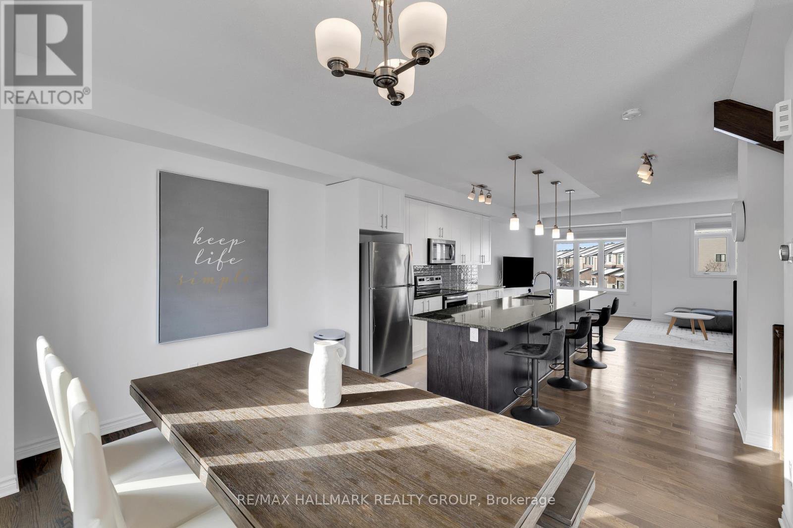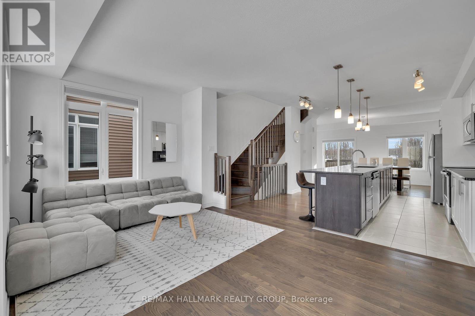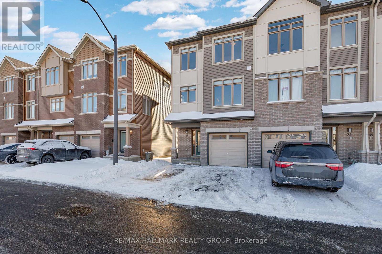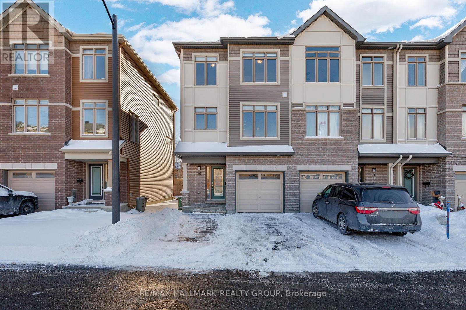 **OPEN HOUSE THURSDAY JANUARY 29th at 5-7PM** -- Welcome to 26 Barn Swallow Private, a meticulously maintained end-unit 3-storey townhome built in 2019 and presented in true model home condition. This bright and thoughtfully designed residence offers 3 bedrooms, 3 bathrooms, and a functional layout ideal for modern living.A tiled entry welcomes you into the main level, where upgraded hardwood flooring highlights a versatile living space at the rear of the home with direct access to a private, professionally landscaped backyard, perfect for relaxing or entertaining. The second level features a stunning open-concept kitchen, dining, and living area, anchored by an oversized stone island with seating for 6 to 8 guests. Side windows flood the space with natural light, showcasing dark hardwood floors, crisp white cabinetry, and stainless steel appliances. A dedicated dining area opens to a balcony overlooking a mature, tree-lined ravine, offering a peaceful backdrop rarely found in townhome living.The third floor hosts three well-proportioned bedrooms, including a spacious primary retreat large enough for a king-size bed, complete with two walk-in closets and a sleek ensuite featuring a full glass shower. The additional bedrooms are ideal for children, guests, or a home office.The unfinished basement provides excellent flexibility and is currently used as a gym, with potential for a family room, bedroom, or additional living space to suit your needs.Ideally located just off Earl Armstrong Road between Prince of Wales Drive and Limebank or Riverside Drive, this home offers convenient access throughout the city, nearby shopping, schools, and everyday amenities. The private road includes 11 additional visitor parking spaces, along with nearby street parking.