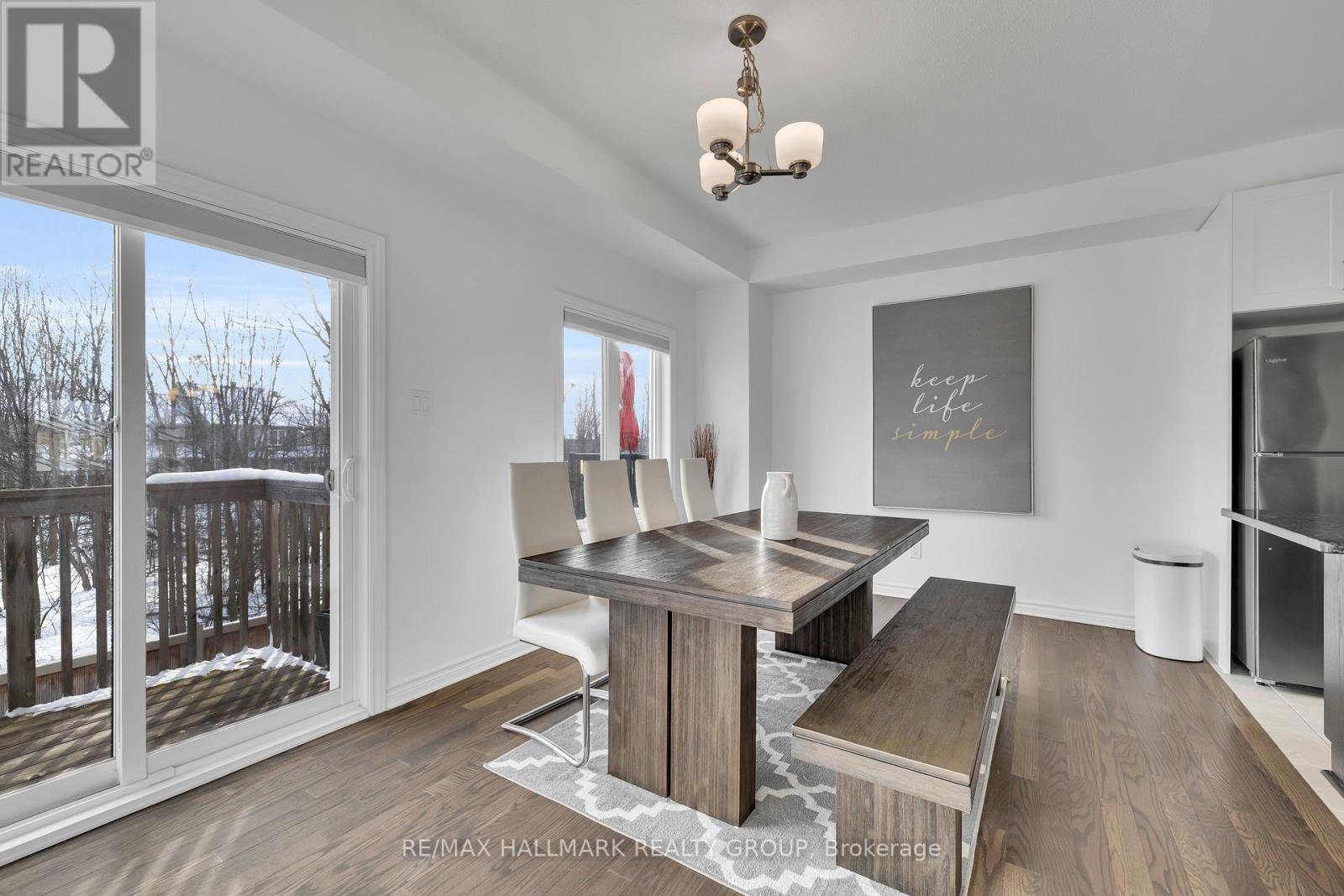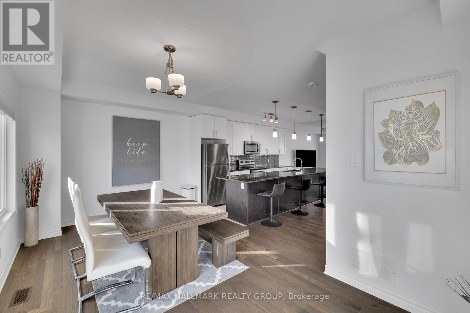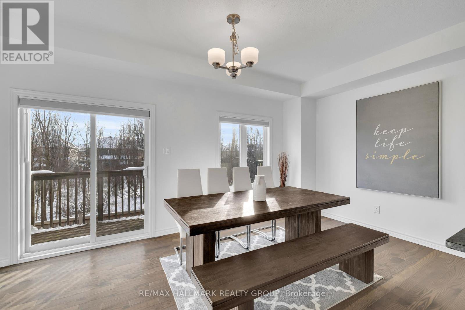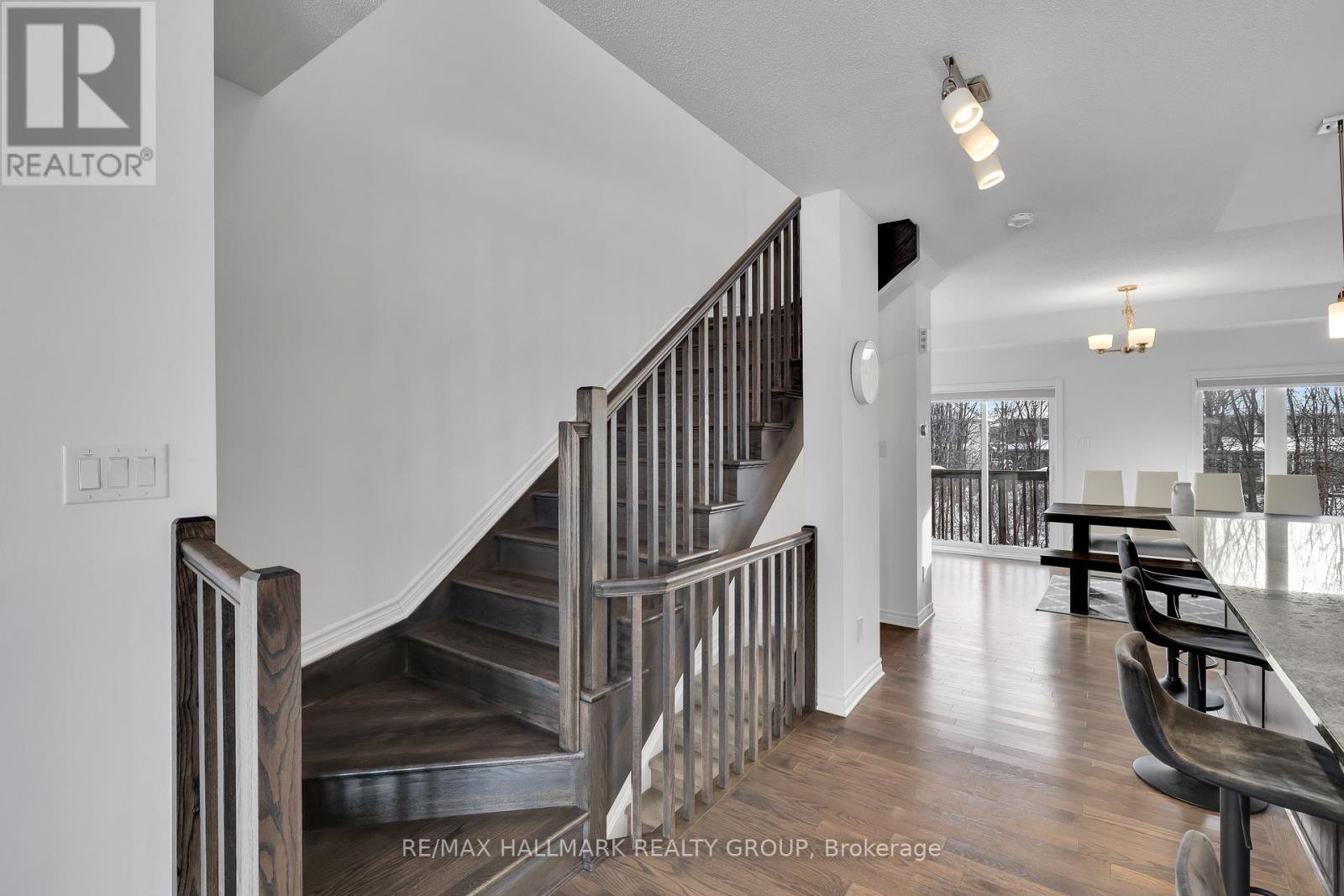 **OPEN HOUSE THURSDAY JANUARY 29th at 5-7PM** -- Welcome to 26 Barn Swallow Private, a meticulously maintained end-unit 3-storey townhome built in 2019 and presented in true model home condition. This bright and thoughtfully designed residence offers 3 bedrooms, 3 bathrooms, and a functional layout ideal for modern living.A tiled entry welcomes you into the main level, where upgraded hardwood flooring highlights a versatile living space at the rear of the home with direct access to a private, professionally landscaped backyard, perfect for relaxing or entertaining. The second level features a stunning open-concept kitchen, dining, and living area, anchored by an oversized stone island with seating for 6 to 8 guests. Side windows flood the space with natural light, showcasing dark hardwood floors, crisp white cabinetry, and stainless steel appliances. A dedicated dining area opens to a balcony overlooking a mature, tree-lined ravine, offering a peaceful backdrop rarely found in townhome living.The third floor hosts three well-proportioned bedrooms, including a spacious primary retreat large enough for a king-size bed, complete with two walk-in closets and a sleek ensuite featuring a full glass shower. The additional bedrooms are ideal for children, guests, or a home office.The unfinished basement provides excellent flexibility and is currently used as a gym, with potential for a family room, bedroom, or additional living space to suit your needs.Ideally located just off Earl Armstrong Road between Prince of Wales Drive and Limebank or Riverside Drive, this home offers convenient access throughout the city, nearby shopping, schools, and everyday amenities. The private road includes 11 additional visitor parking spaces, along with nearby street parking.