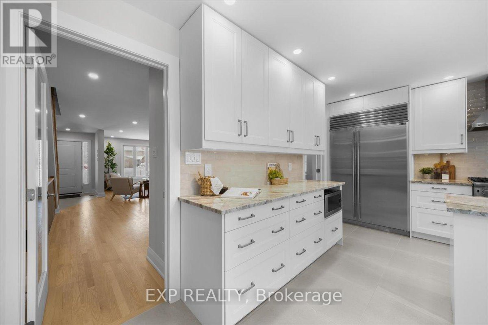 COACH HOUSE OPPORTUNITY FOR MULTI GENERATIONAL HOME OR INVESTORS! Stunning detached home with an income-producing two-bedroom coach house-where modern family luxury meets smart investment. With a total of eight bedrooms between the main home and coach house, this property is truly an investor's dream. The main home (6 bedrooms, 3.5 baths, ~3,000 sqft.) offers a bright, open-concept design centered around a showpiece new (2025) kitchen featuring granite counters, a large peninsula, breakfast area, ceramic backsplash, stainless steel appliances, and a professional-grade gas range. Elegant new ceramic flooring (2025) in the foyer, kitchen, and hall complements rich new hardwood throughout the main and second floors (2025), while fresh designer paint (2025) ties it all together in a timeless palette. Dining and living spaces flow effortlessly for entertaining, with a versatile family room off the kitchen. A sleek new powder room (2025), welcoming foyer, mudroom with laundry, and upgraded railings (2025) complete the main level. Upstairs, the serene primary suite impresses with a full-width closet and a luxurious new ensuite (2025) featuring a double vanity and glass shower. Three additional bedrooms plus a renovated main bath (2025) with dual sinks and granite counters provide total comfort. The finished lower level adds even more living space with a rec room, two bedrooms, a new full bath (2025), and plenty of storage.The luxury two-bedroom, two-bath coach house (~1,000 sq.ft.) is fully independent with a private entrance and separate hydro and gas meters. Complete with a full kitchen, living room, dining area, rec room, and primary suite with walk-in closet, it's currently rented for $2,850/month-ideal for multigenerational living or a steady income stream. A rare offering that combines design, functionality, and financial upside, this property delivers style and versatility at their best!