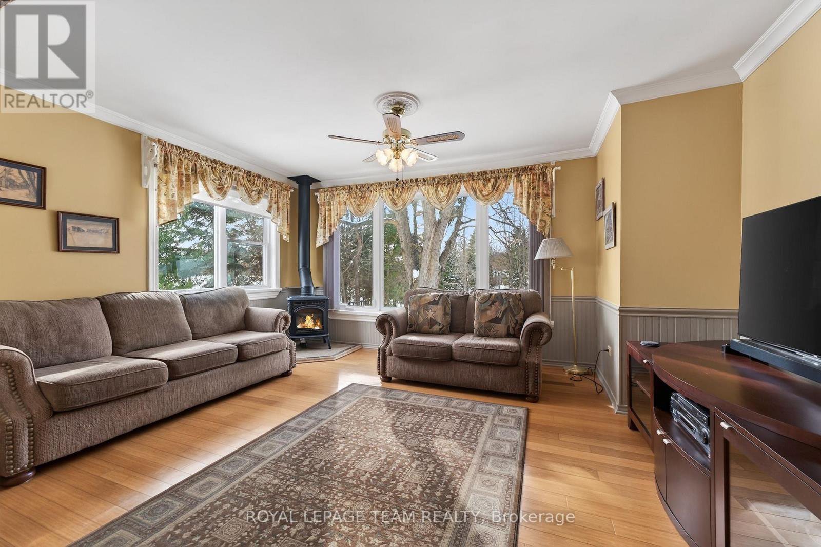 Welcome to your beautiful country retreat - only minutes to the charming town of Almonte ! This bright and sun filled large home is nestled on a gorgeous, fully treed and extensively landscaped 1.7 acres of peace and tranquility. With 3 bedrooms and a well designed and roomy floor plan, this home is ready for the new owners to sit back, relax and enjoy country living at its best. Entering the property, the home has presence and character amidst such a scenic backdrop. The main level features gleaming hardwood and a good sized living room with large feature stone fireplace to anchor the room. Adjoining dining room is ideally appointed with large corner windows and is ready for entertaining. Bright eat In kitchen has plenty of cupboard and counter space as the heart of the home. The spacious family room with feature fireplace can also serve as an office, library and retreat - with stunning views of the amazing backyard from the oversized windows. This level features the main bath, handy laundry room and good sized primary bedroom with ensuite. Second level had 2 good sized bedrooms and large attic storage area. The lower level is presently a large workshop area, cold storage room with a highly desirable walk out perhaps for a future In Law Suite - lot's of opportunity with the space. Outside, step into paradise - enjoy relaxing on one of your two deck areas for your morning coffee, later enjoy hosting a BBQ in your screened in porch surveying the beautiful grounds. The property boasts mature perennial landscaping and beautiful trees, even a creek running through it with its own bridge. Several outbuildings including an oversized barn and garage are perfect for all your storage and creative ideas. Homes like this one don't come on the market very often - the sellers have lived in the home for almost 50 years! This is a wonderful opportunity to embrace nature and enjoy peaceful lifestyle in an impressive country home.