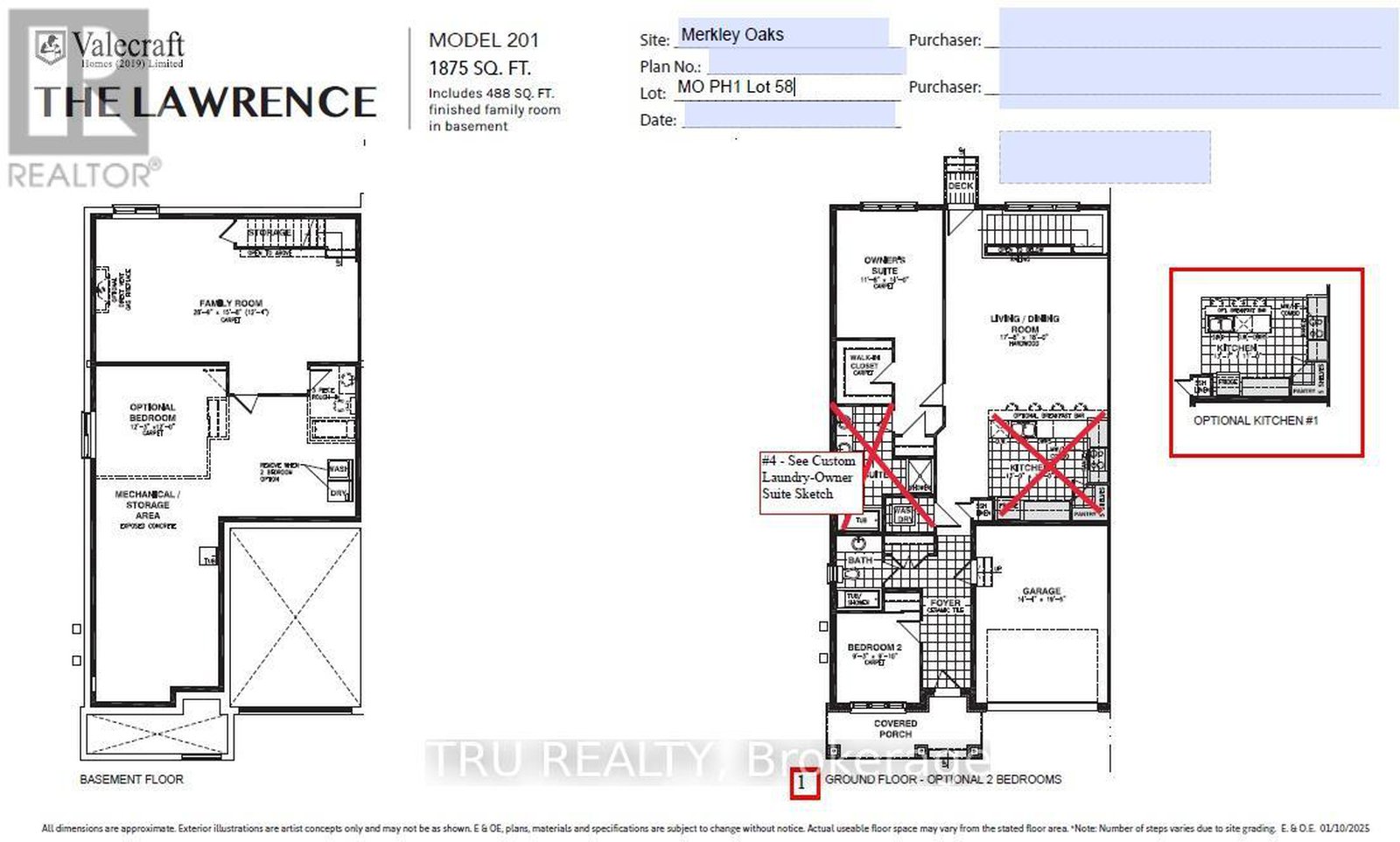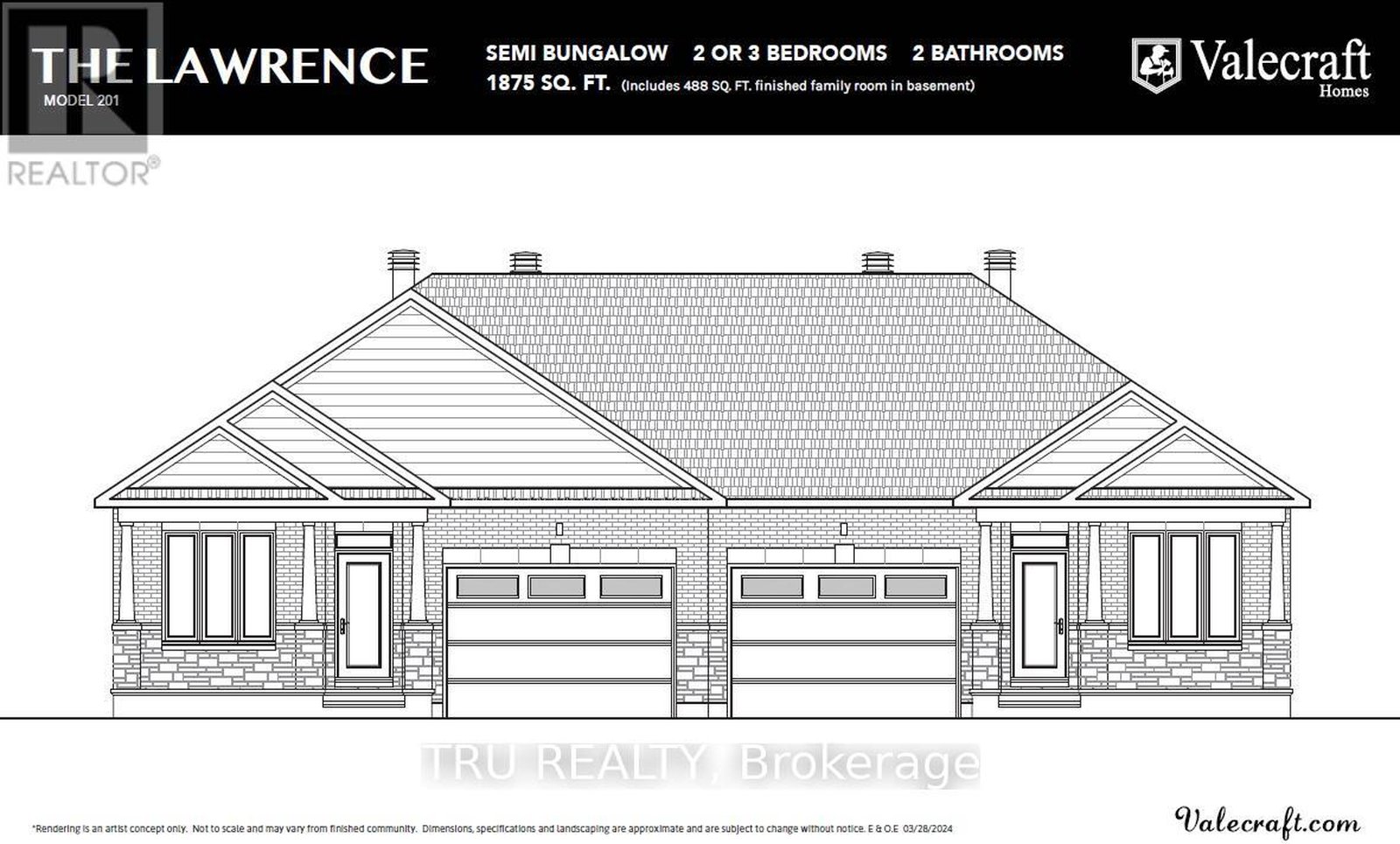 Welcome to The Lawrence, a beautifully designed semi-detached bungalow in the stunning new Merkley Oaks community of Iroquois. This home offers the perfect blend of comfort, functionality, and easy main-floor living. The open-concept layout is filled with natural light, highlighted by a rear wall of windows that creates a bright and inviting living space. The main level features 2, ideal for downsizers, retirees, or those seeking single-level living. The finished basement family room, bedroom and 3pc bathroom provides a fantastic additional living space-perfect for guests, hobbies, or extended family. A 1+ car garage and central air conditioning add everyday convenience and comfort. Thoughtfully designed with flexibility in mind, The Lawrence is well suited for a relaxed lifestyle in a welcoming small-town community close to the St. Lawrence River and local amenities. Total living space: 1,875 sq. ft.(Includes 488 sq. ft. finished family room in the basement) ** Note: Photos are from similar model - Please visit the Valecraft Homes sales center for more information **